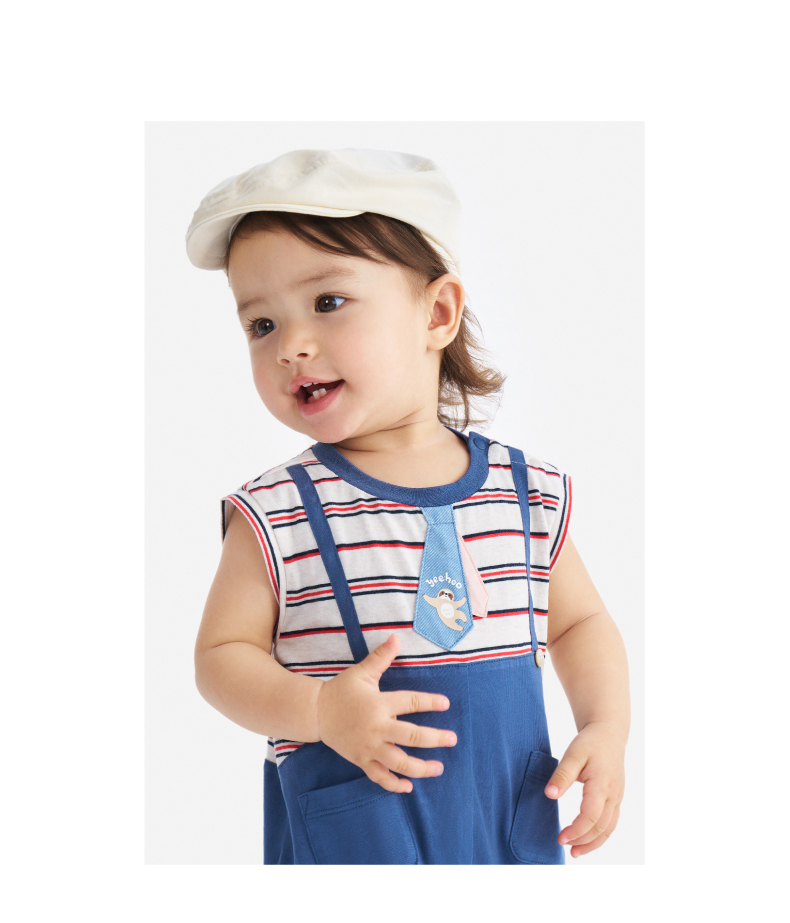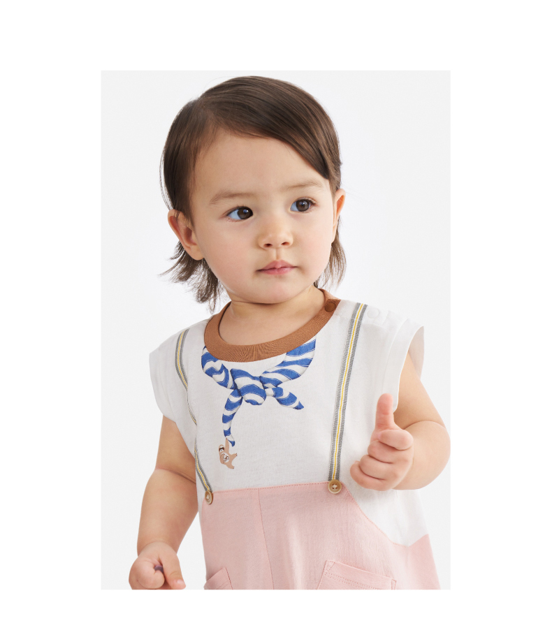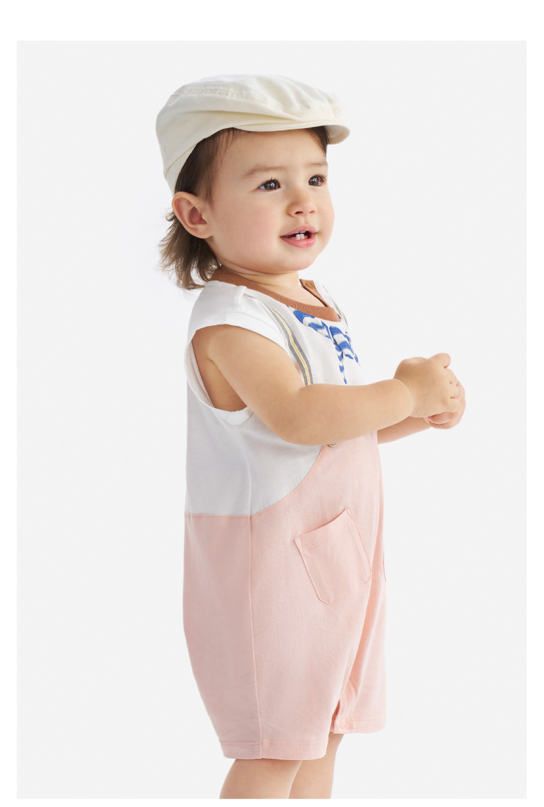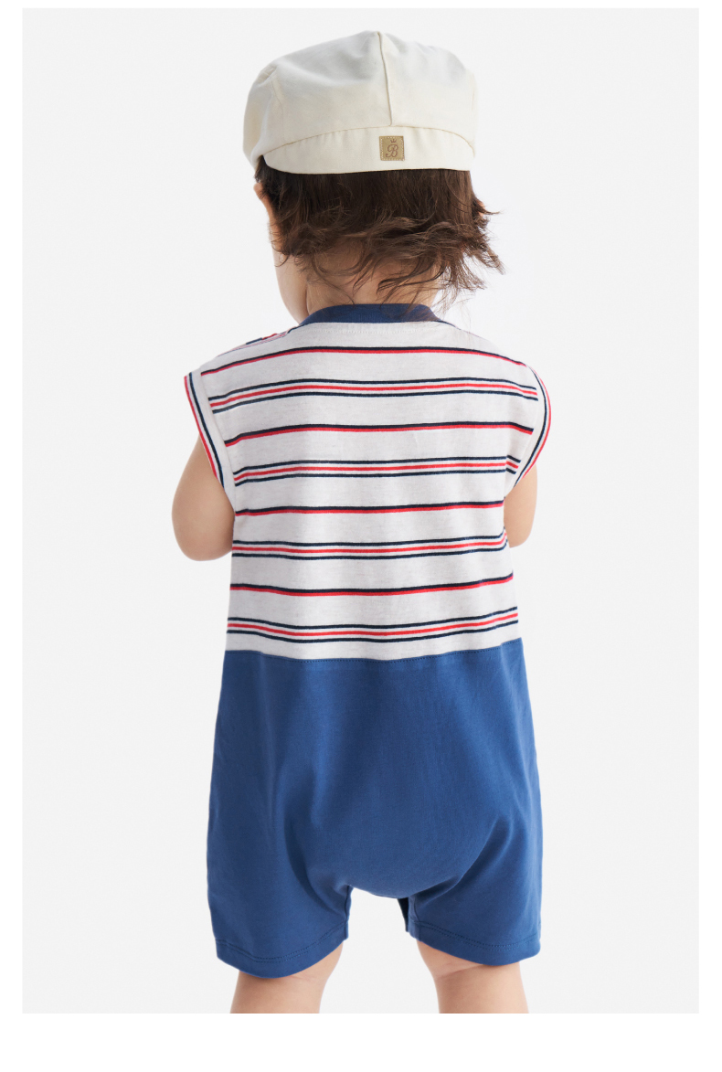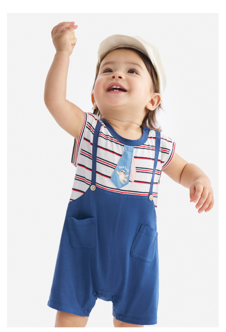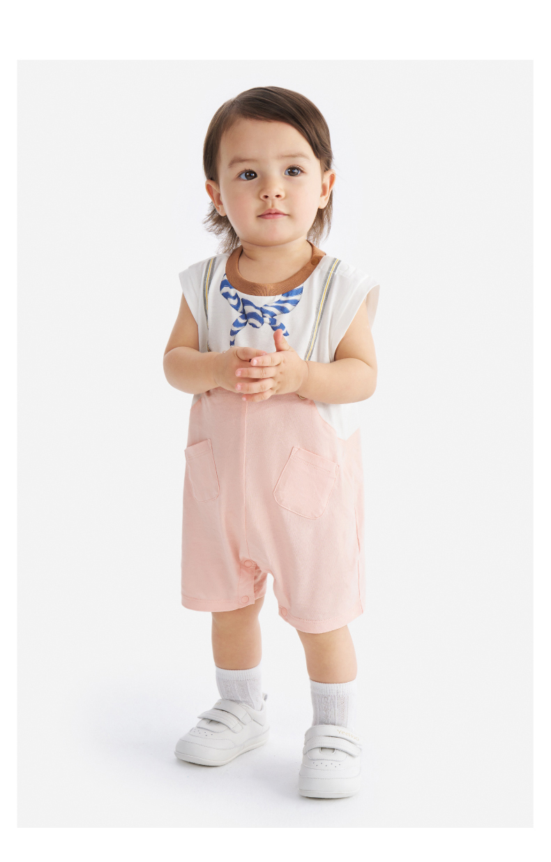 【100%精梳棉】英氏婴儿连身衣宝宝夏季纯棉连体衣男宝假两件短袖哈衣可爱新款