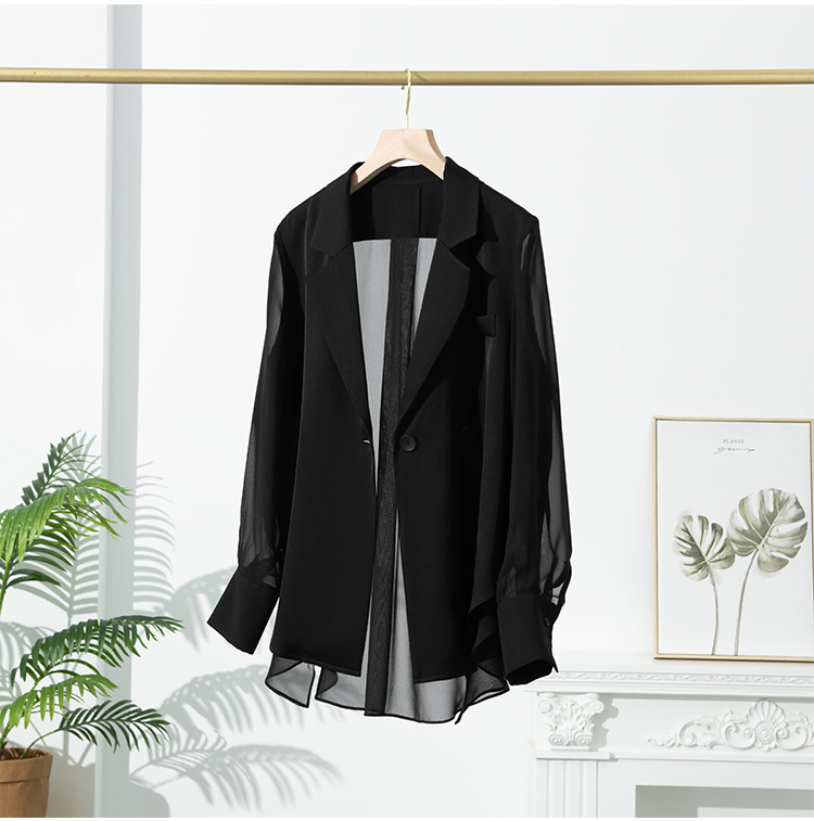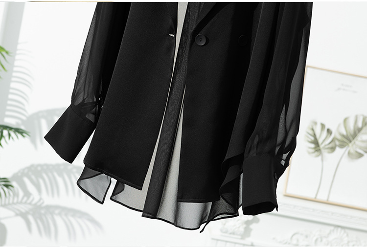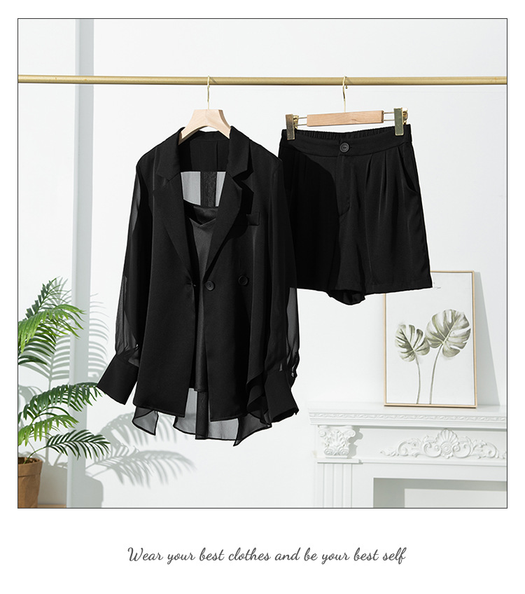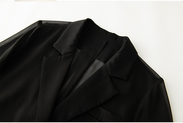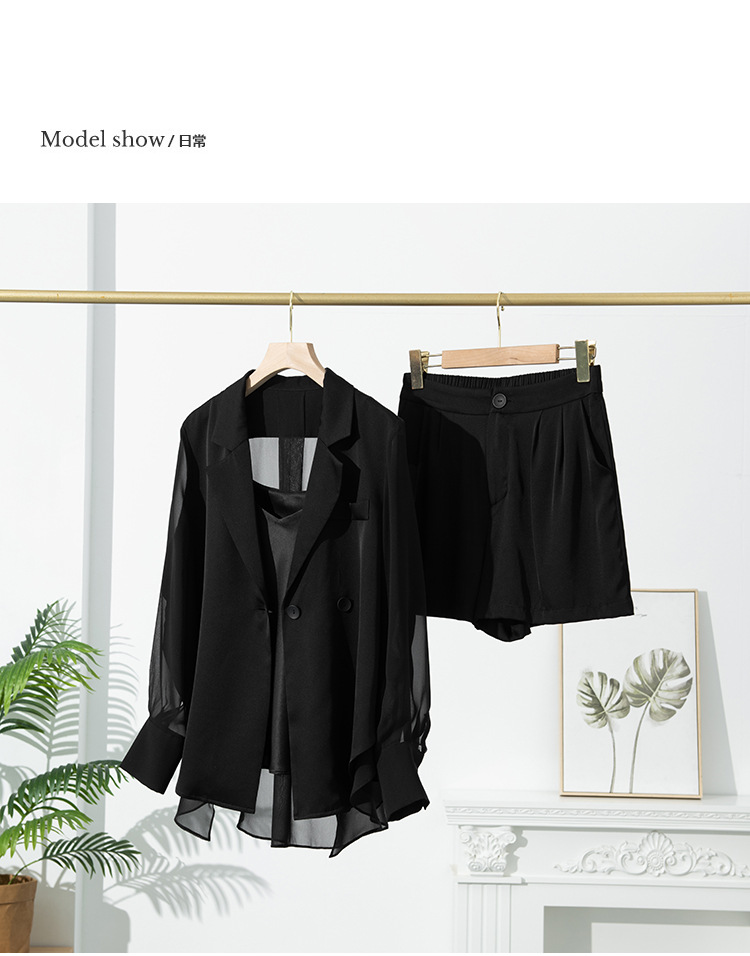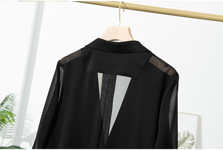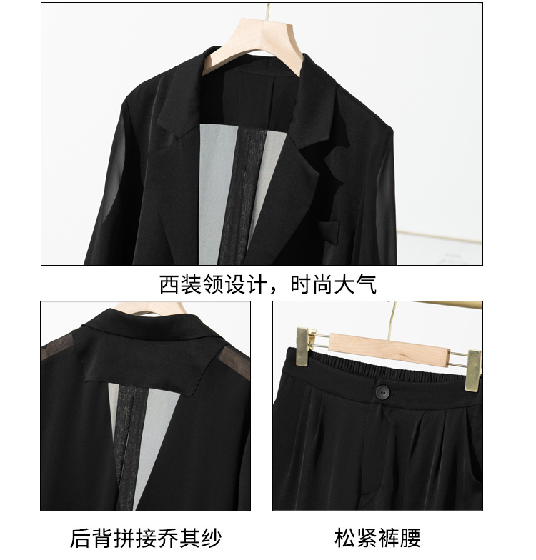 丁摩 夏季新款真丝桑蚕丝西装女套装薄款长袖绸缎上衣通勤短裤两件套5ZF-467