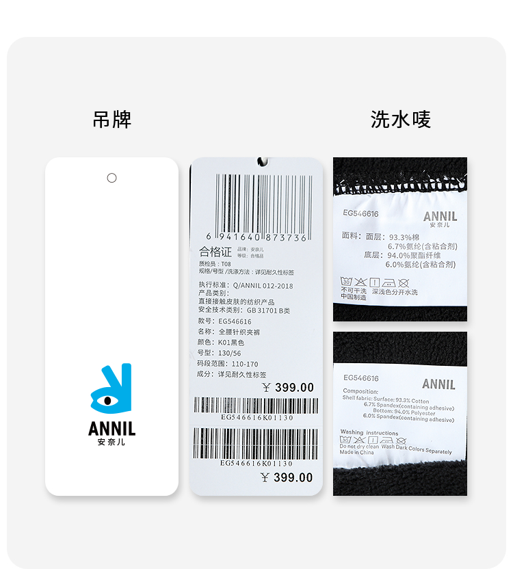 女童全腰针织夹裤冬季新款安奈儿童装EG546616
