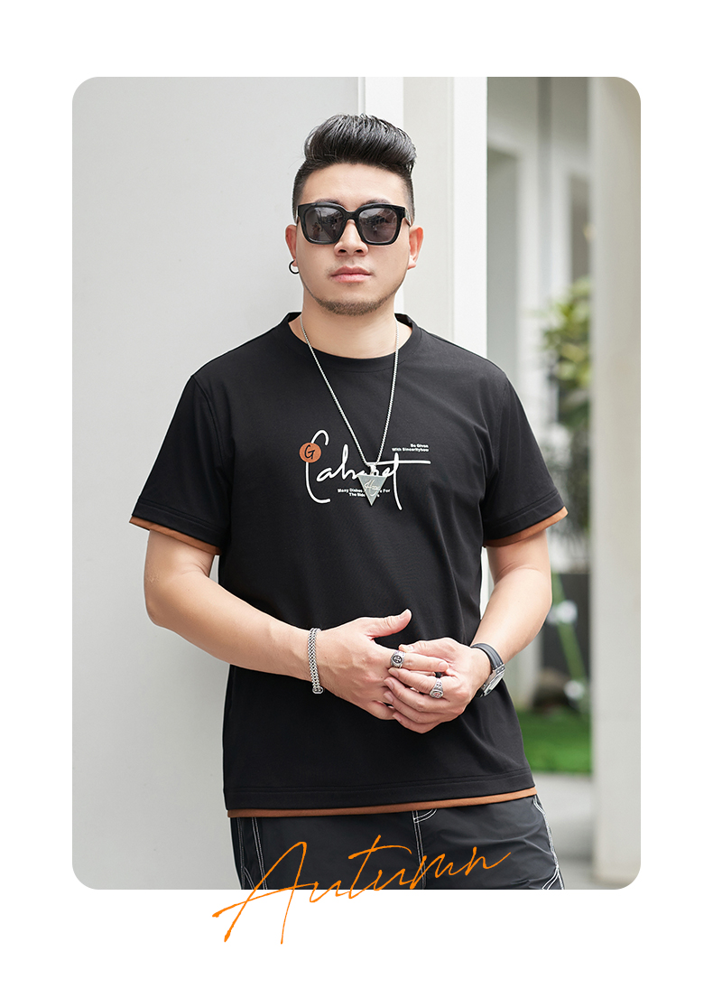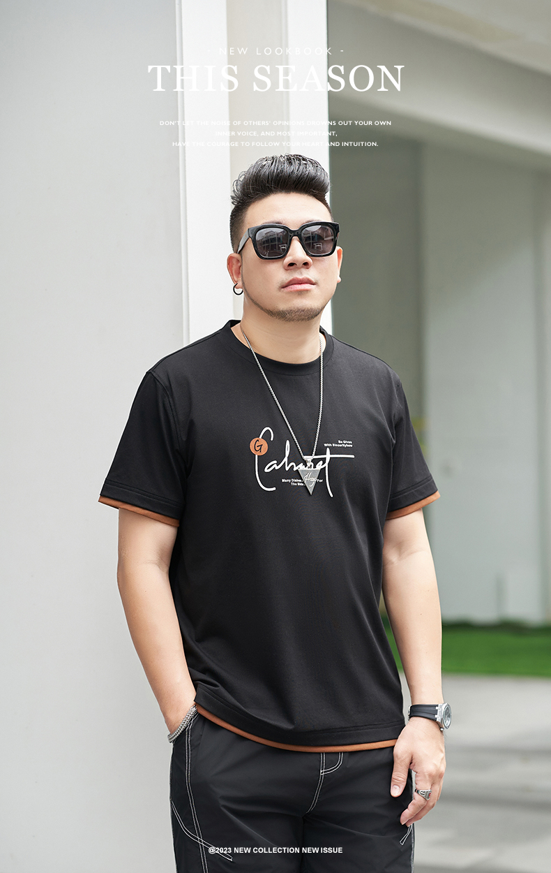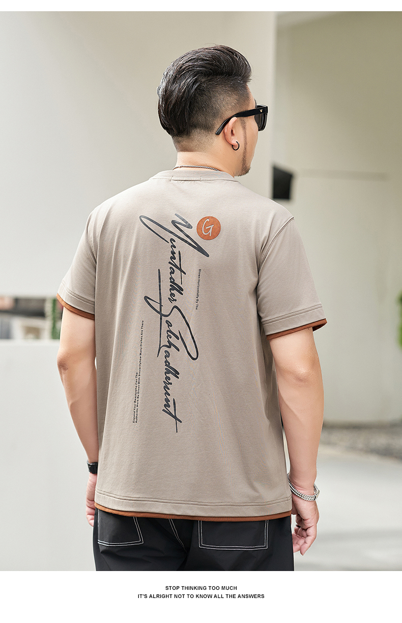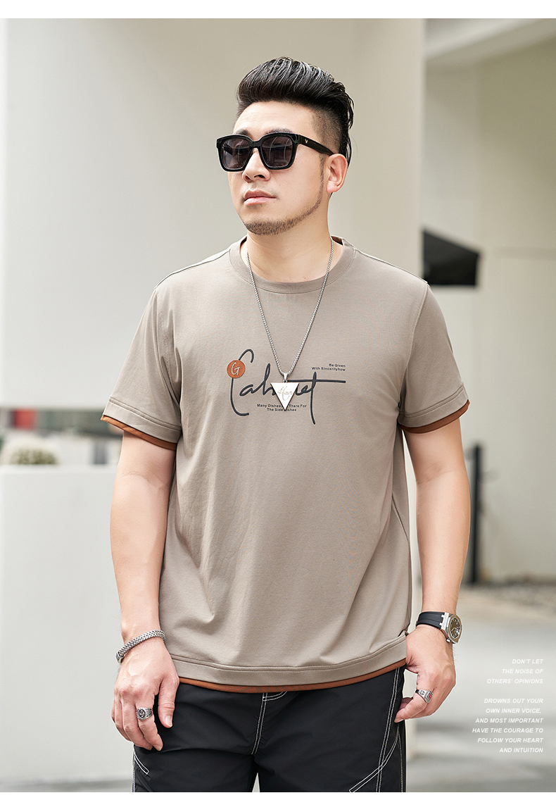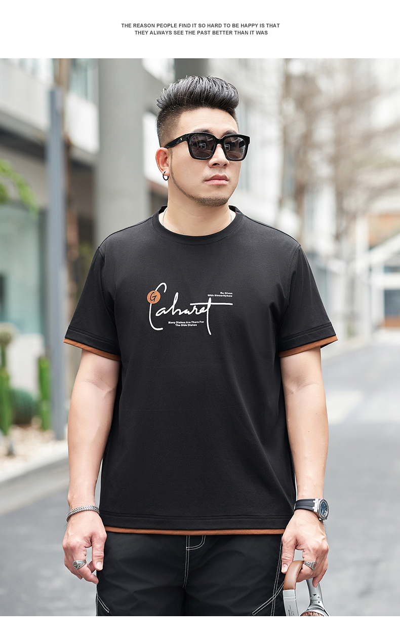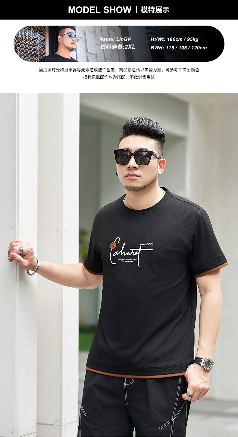 【Q】【新款DMH】大依优型大码男装前后印花圆领短袖T恤加肥加大休闲肥佬男上衣夏季半袖胖子潮款