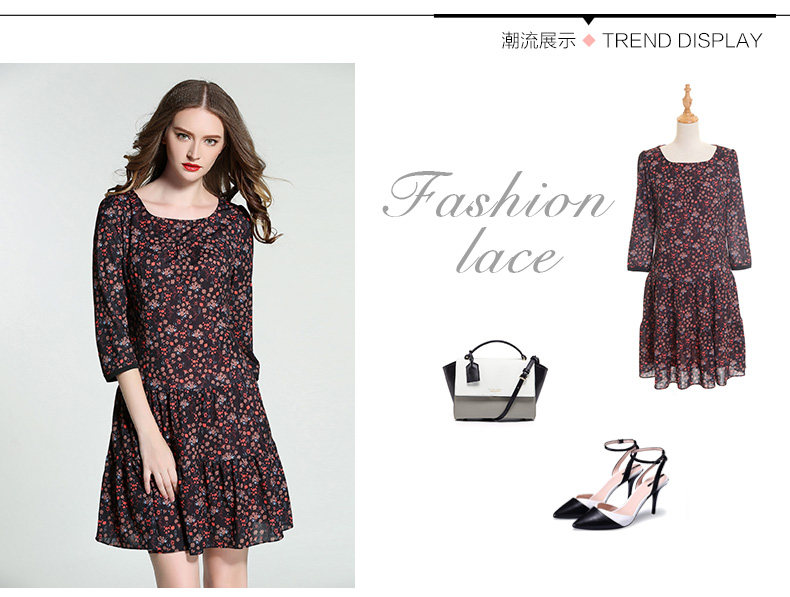 乔万尼春季小碎花收腰瘦身连衣裙EB3E327