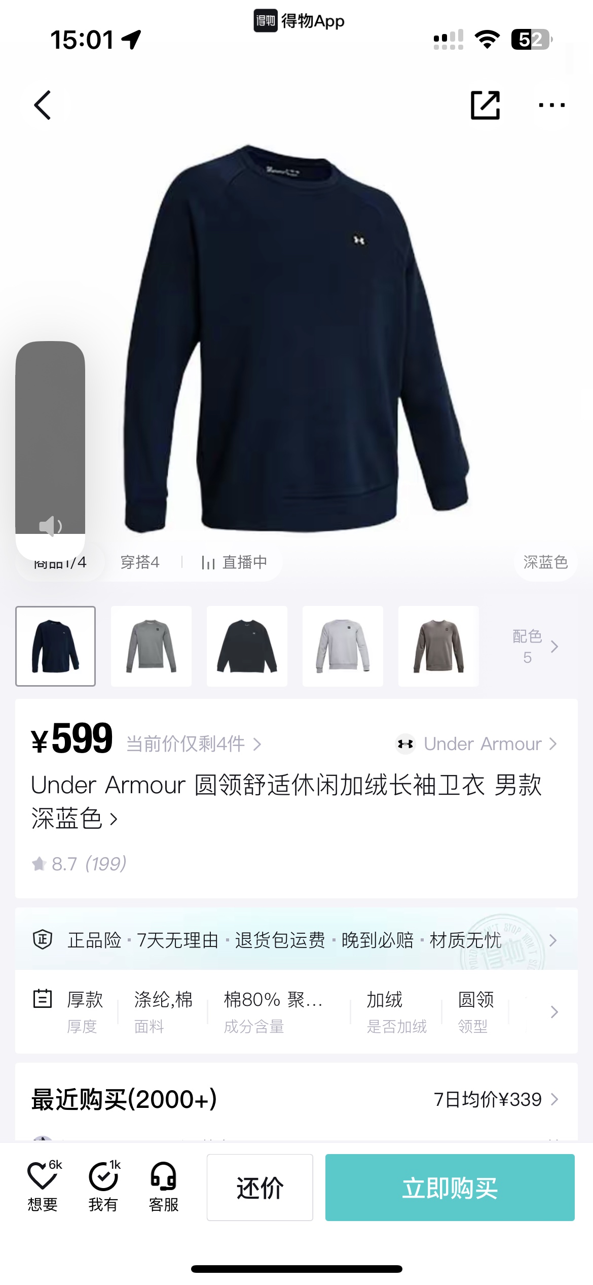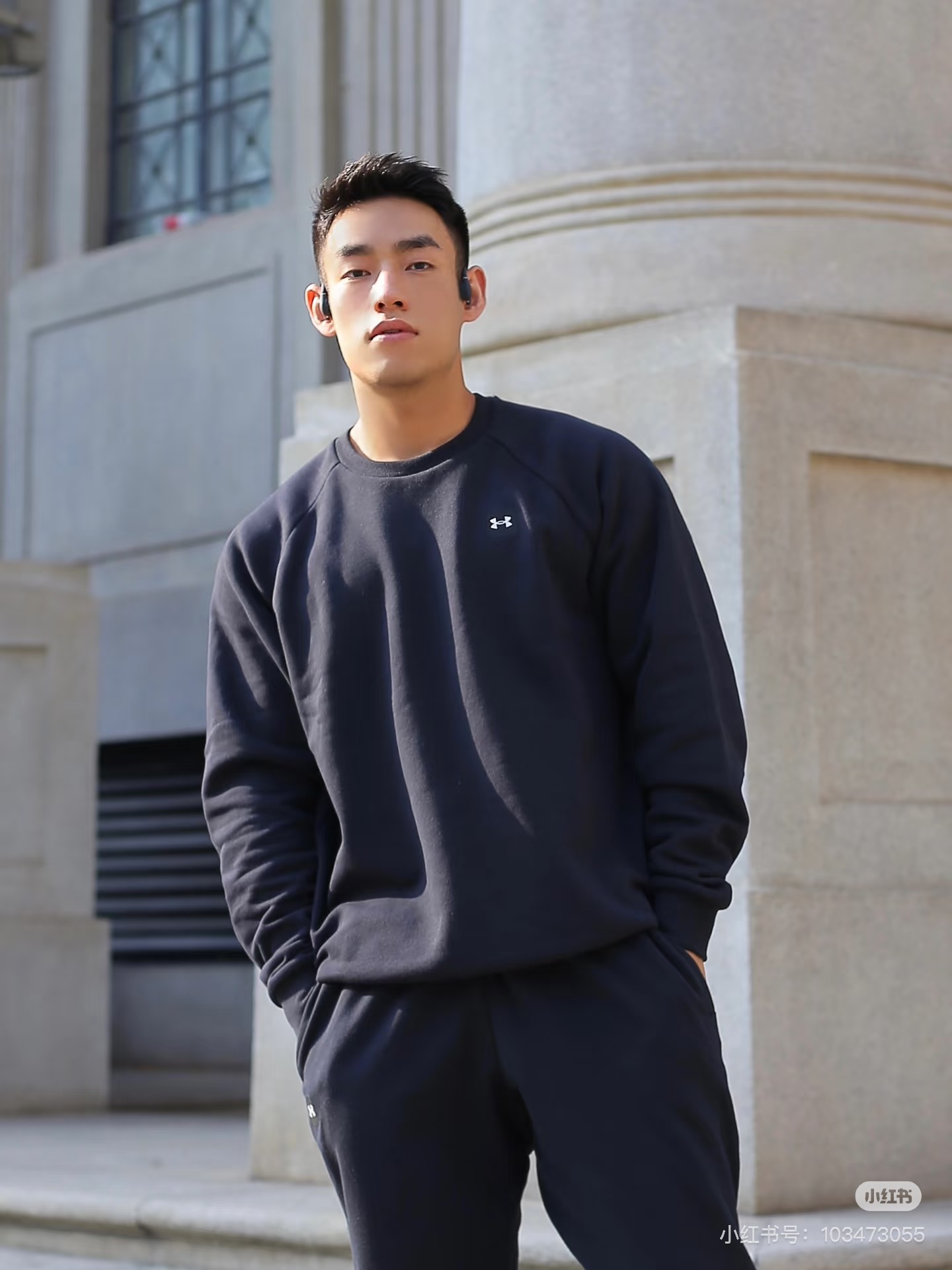 【Un der Arm&our 男款黑色加绒圆领卫衣| 温暖随行,型格兼备】