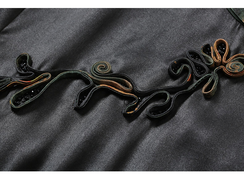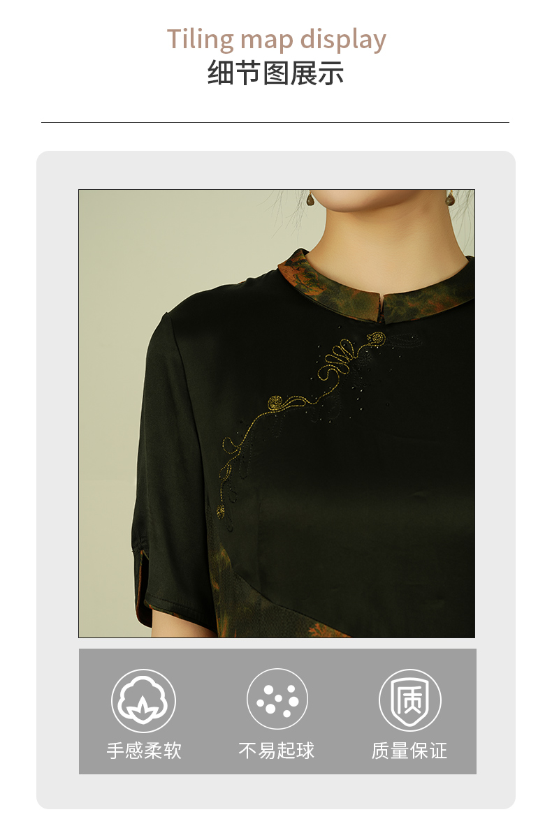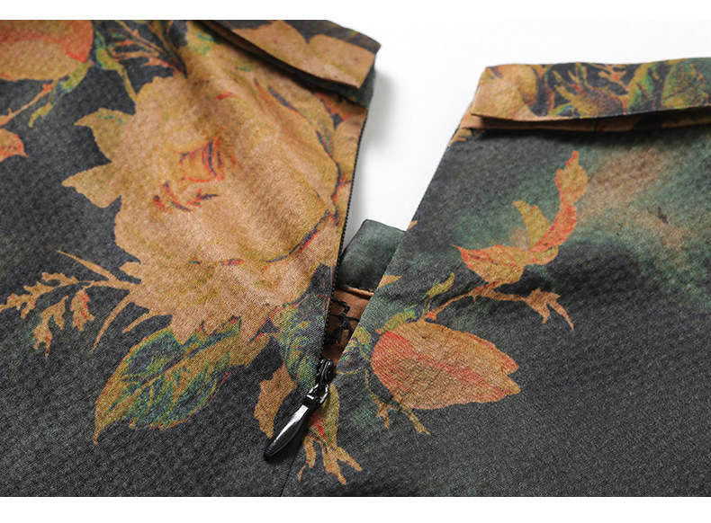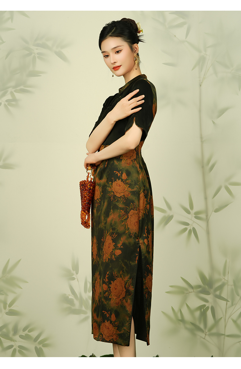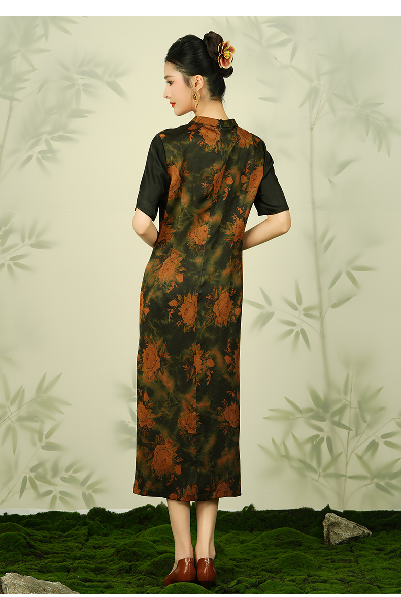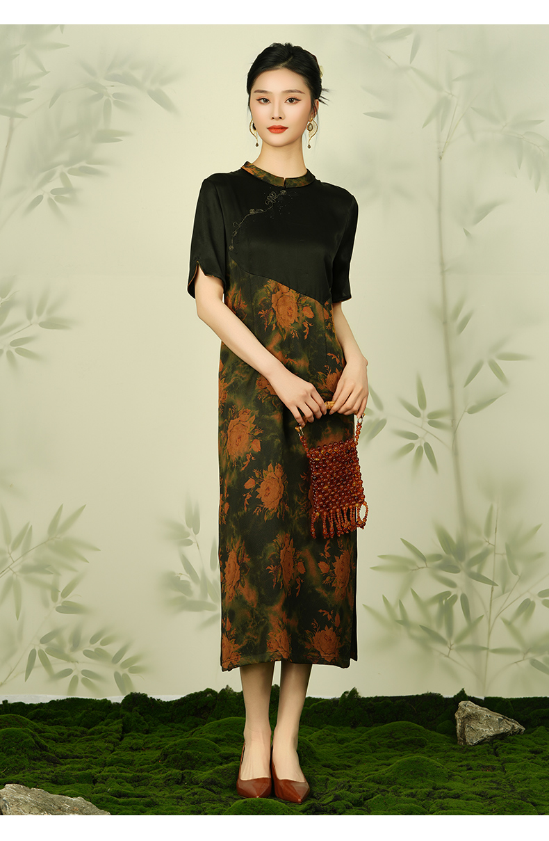 【黄色复古花】【香云纱】乔万尼新款夏重磅真丝桑蚕丝连衣裙拼接复古印花长裙ES2E123