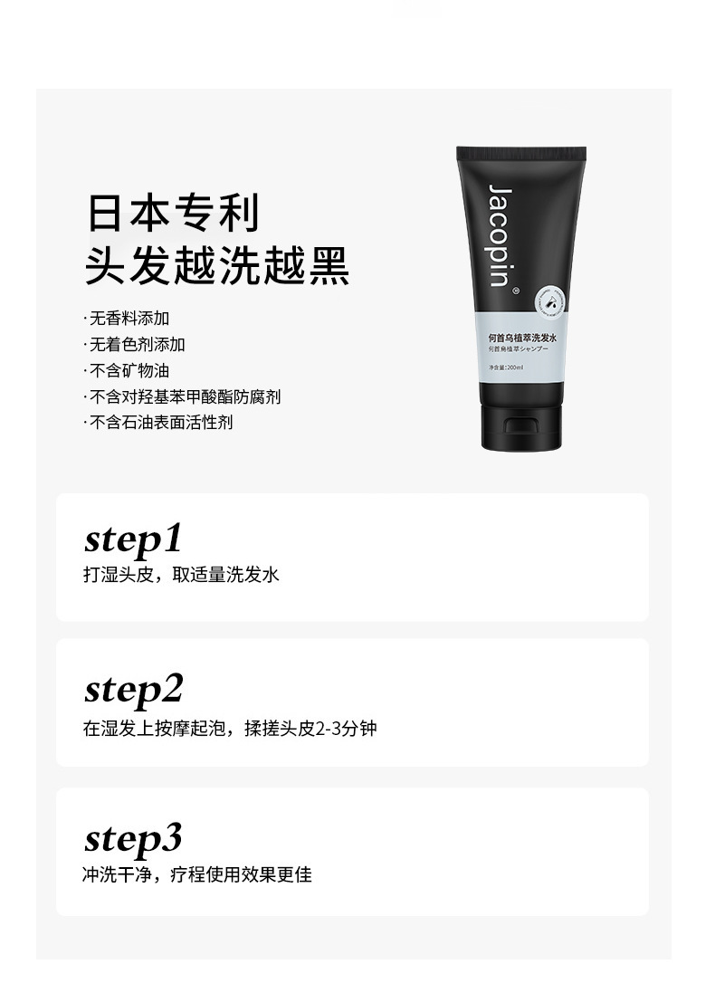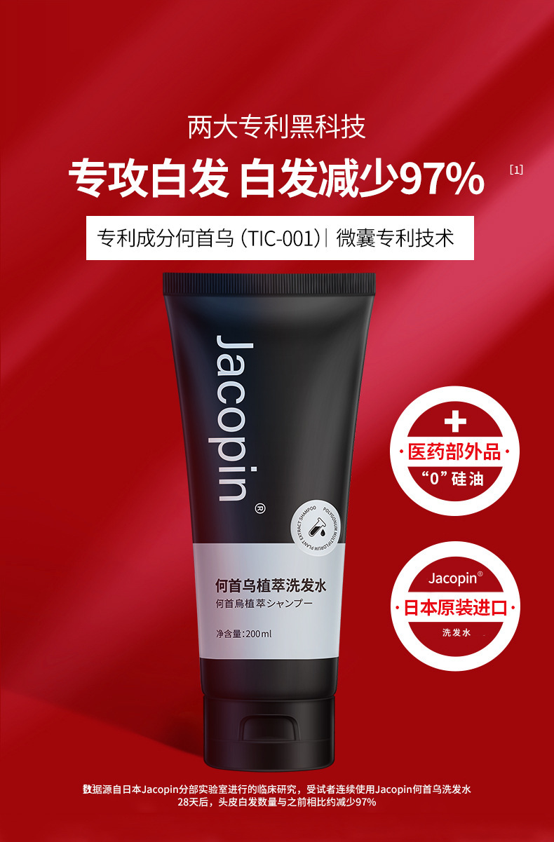 【你的白发有救了!】日本微囊专利头皮渗透技术疏通激活毛囊专利成分何首乌你的白发有救了!jacopin何首乌洗发水