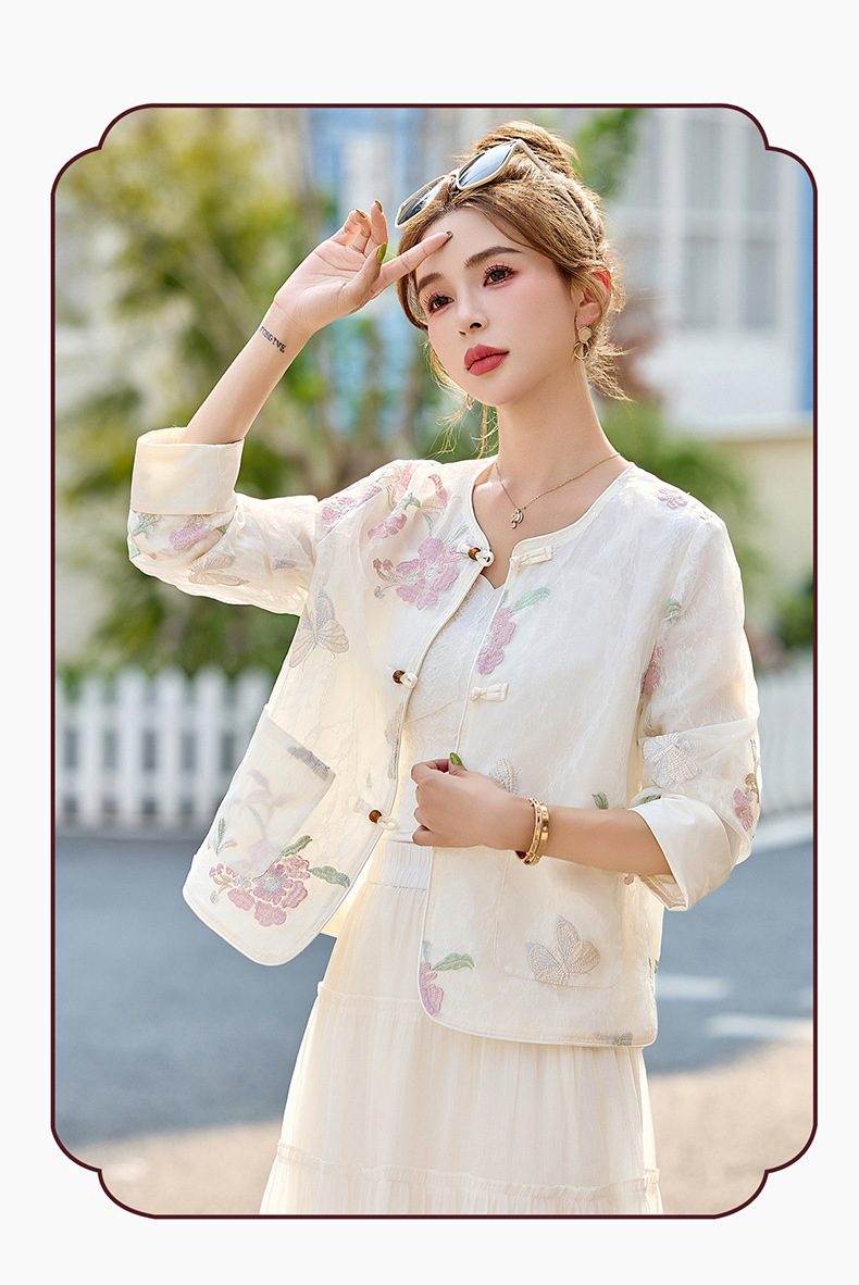 SKY 中袖复古改良时尚蕾丝旗袍裙