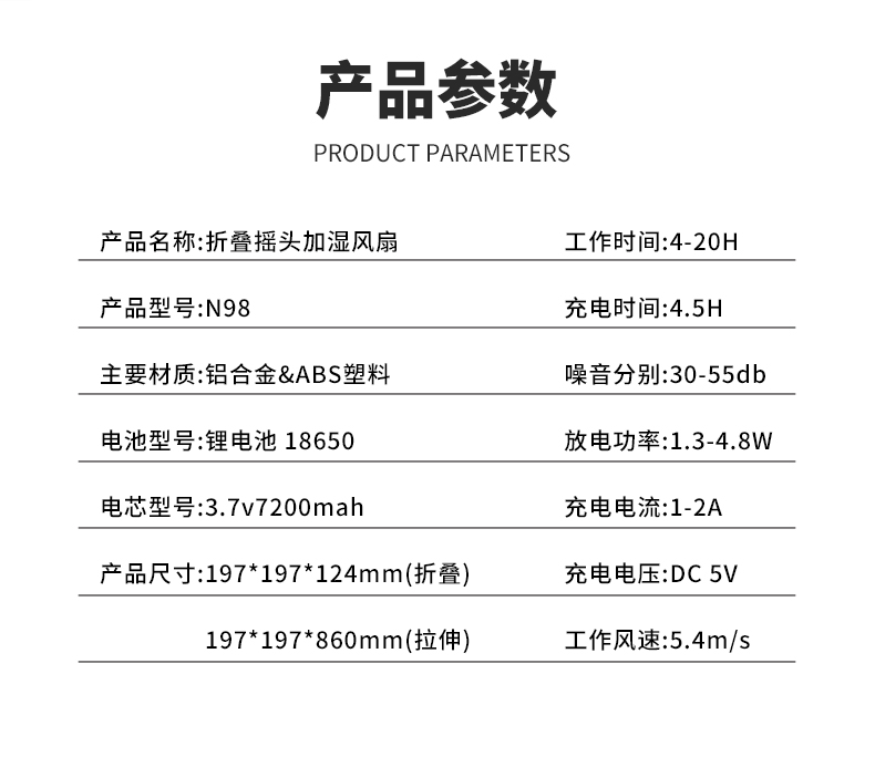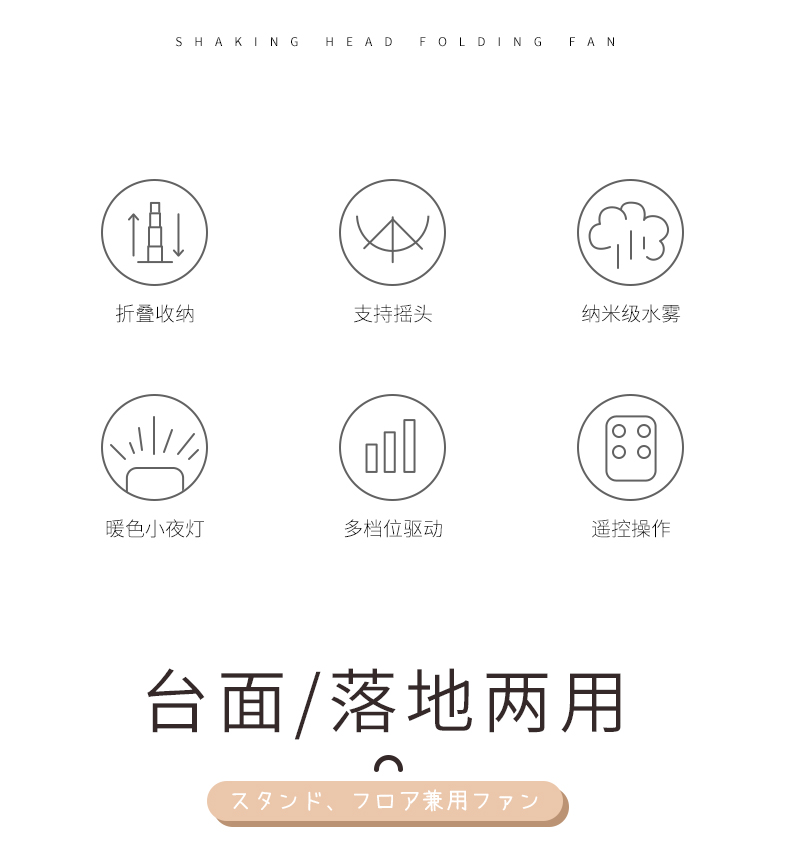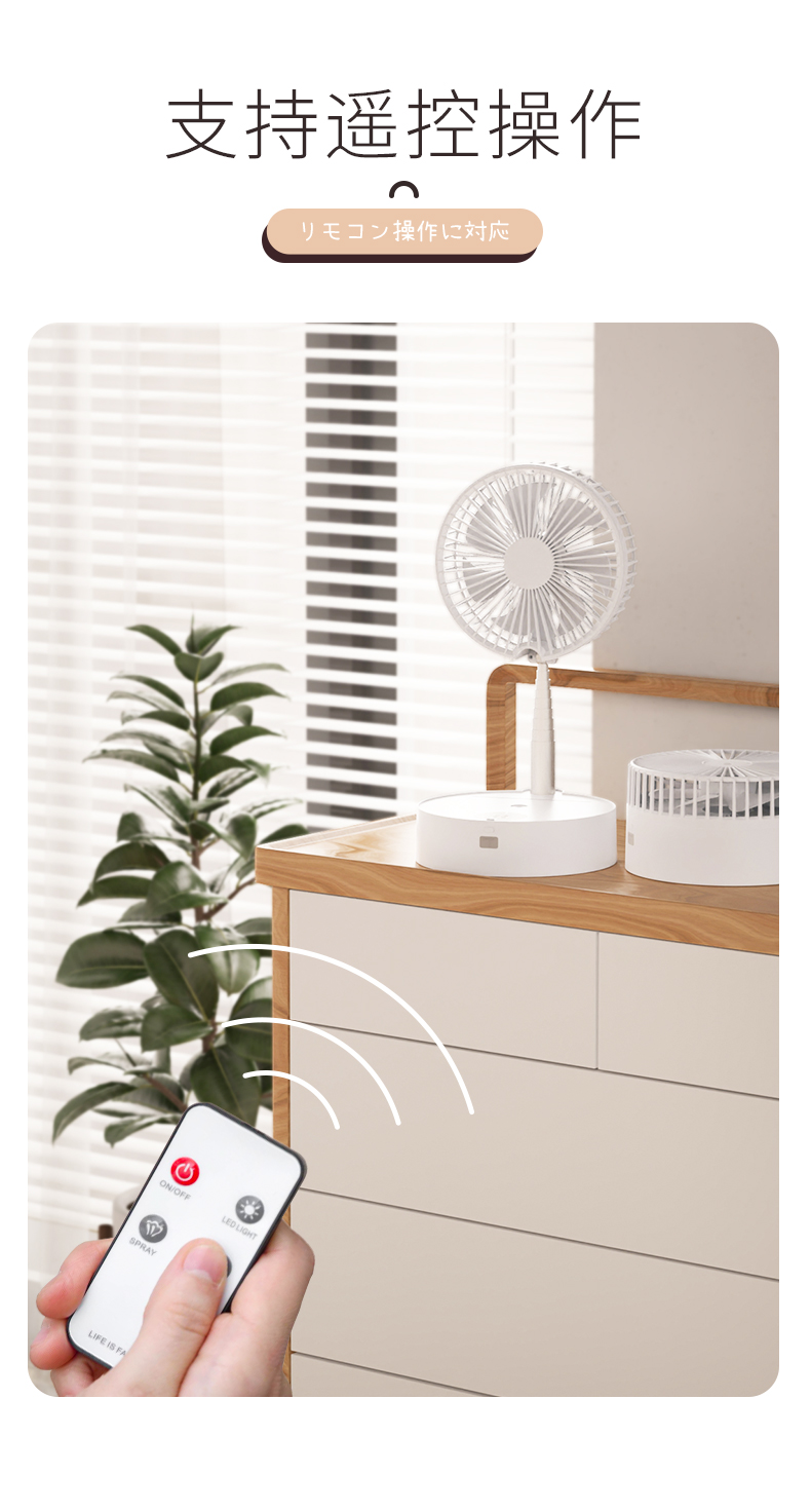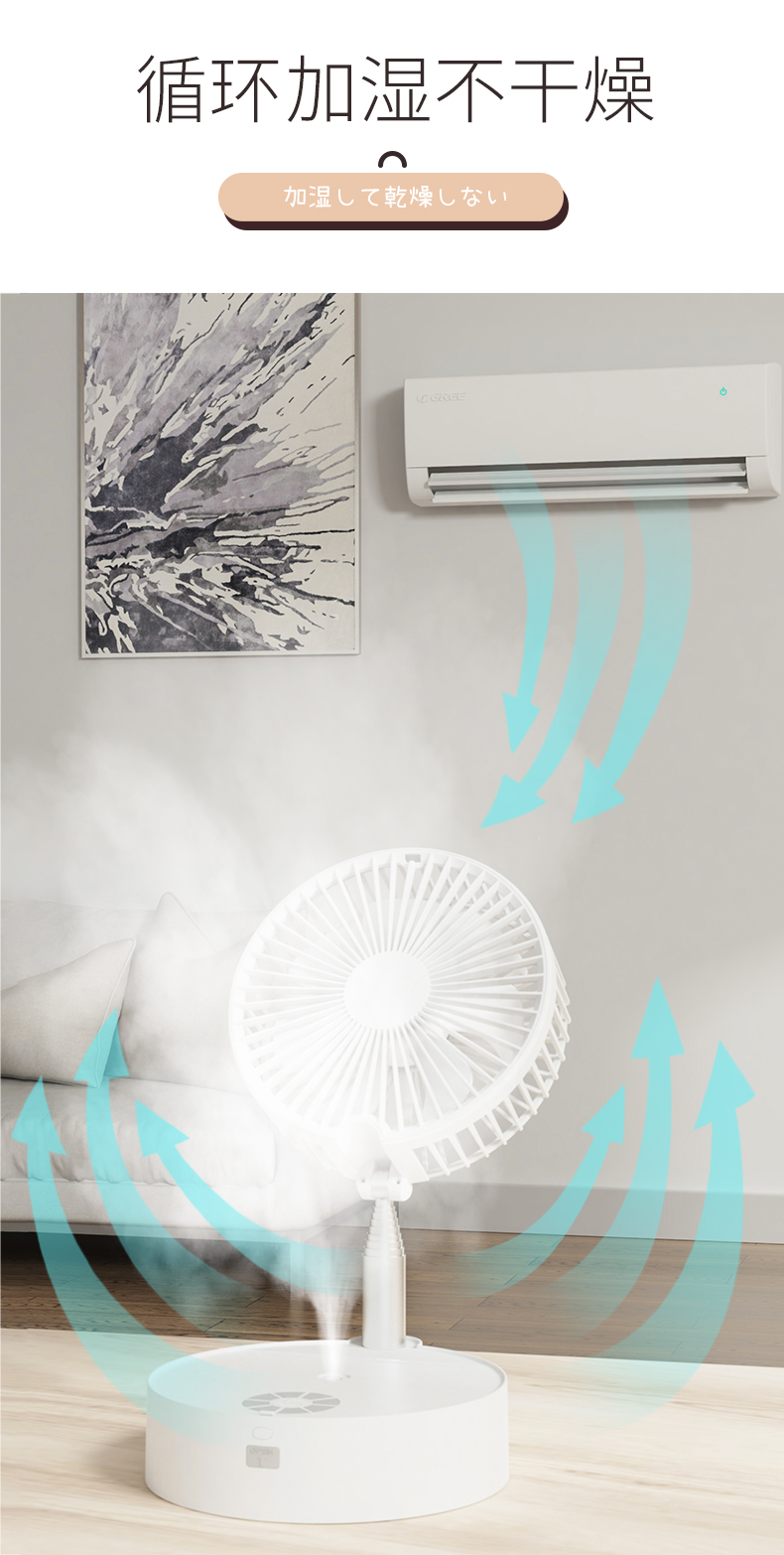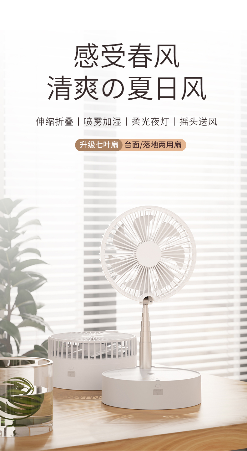 【清爽夏日风】无线折叠空调风扇自动摇头空气循环扇伸缩折叠喷雾加湿柔光夜灯高度随意调节支持遥控台面落地两用扇