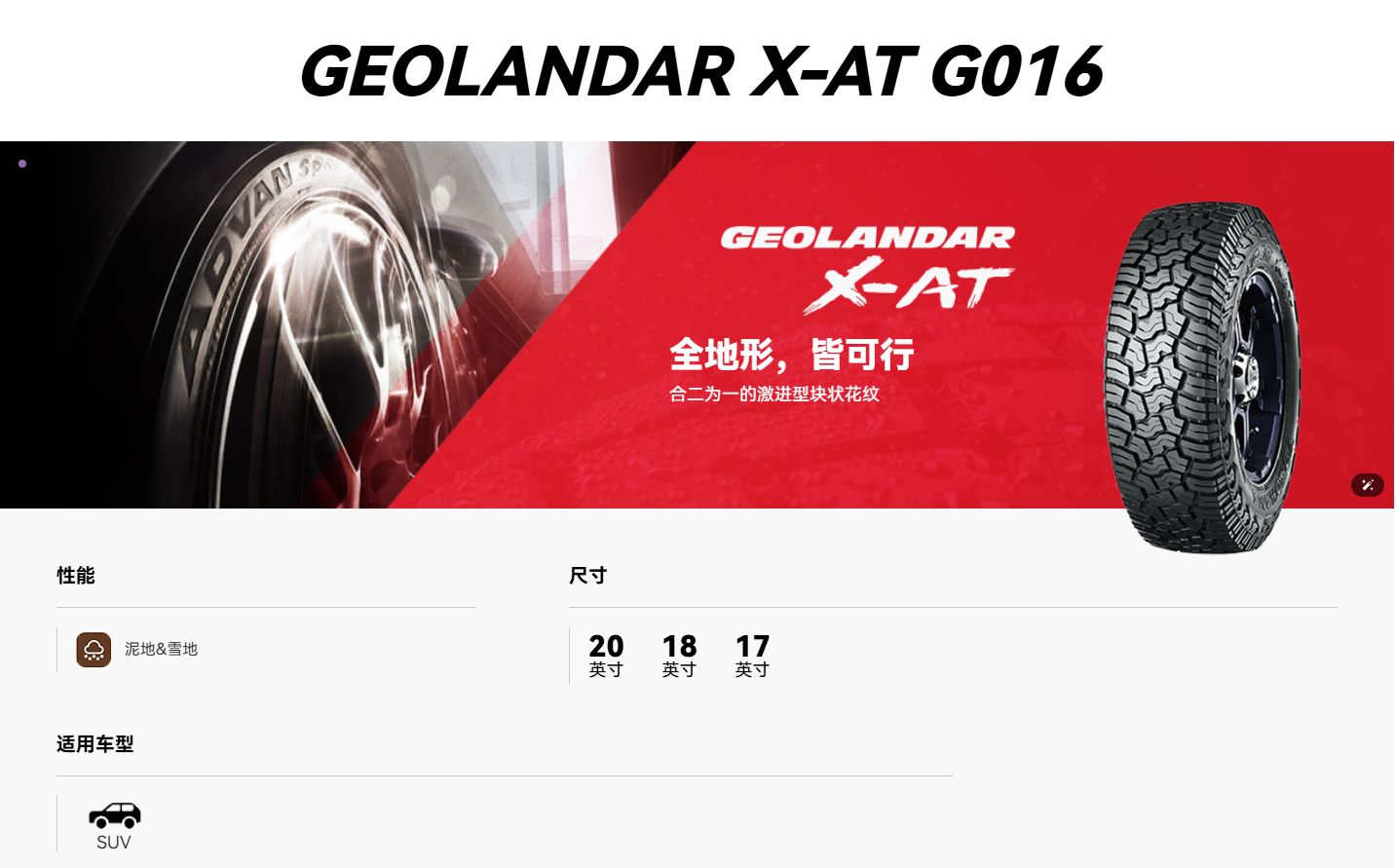 横滨 X-AT(G016)全地形越野轮胎(Xtreme All-Terrain)泥地 雪地 日常代步 YOKOHAMA GEOLANDAR X-AT(G016)