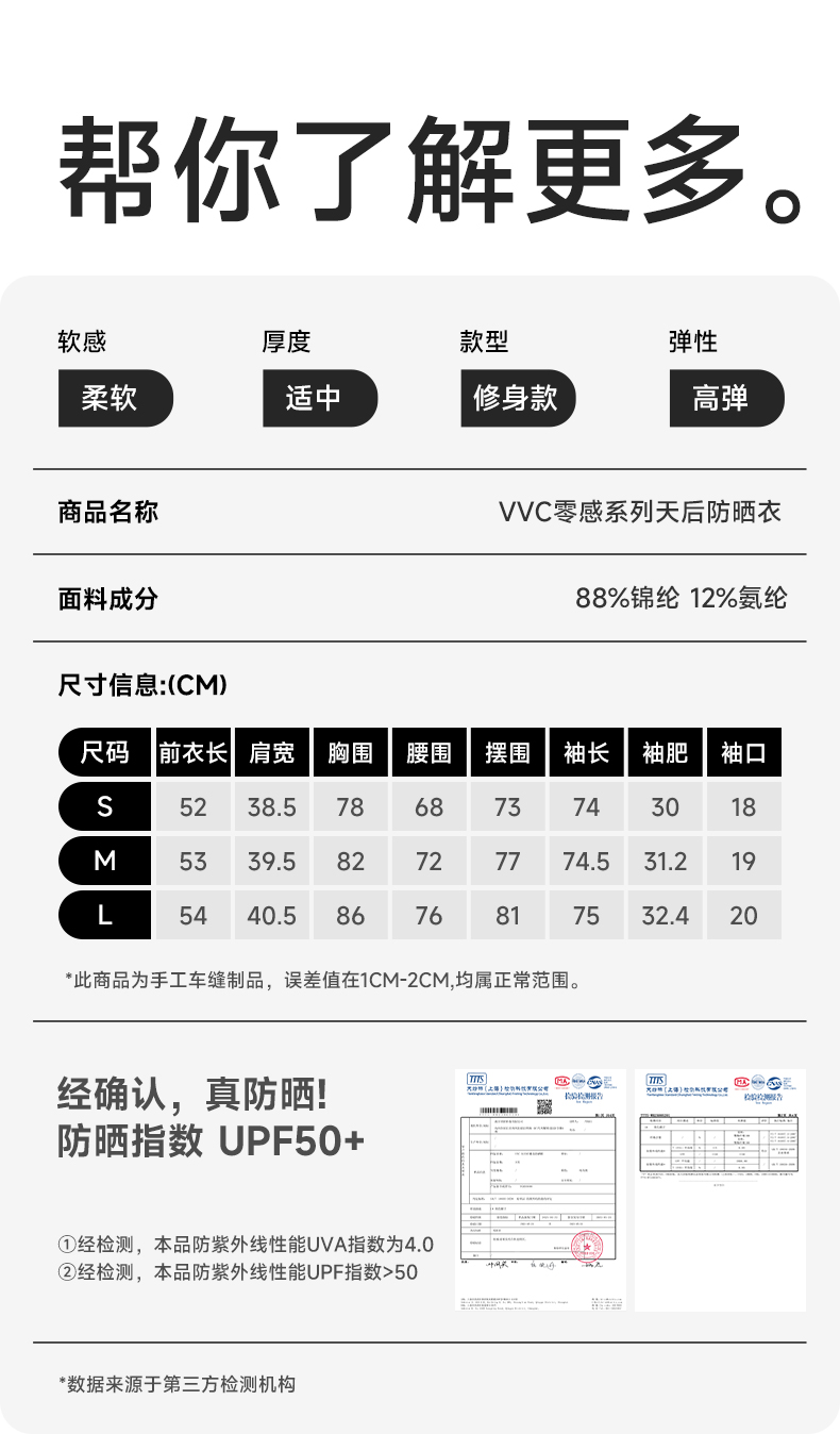 2024新款VVC零感系列天后防晒衣女款显腰细外套防紫外线夏季冰丝透气防晒服VGA4S258