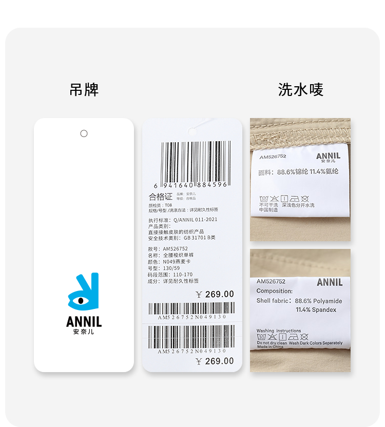 【实体店同款】男女童全腰梭织单裤夏季新款安奈儿童装AM526752