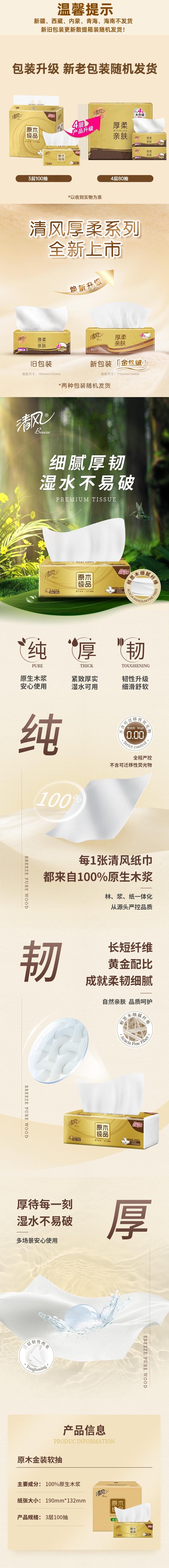 清风 原木金装抽纸4层80抽(原100抽)*5包(新老随机) QF8013