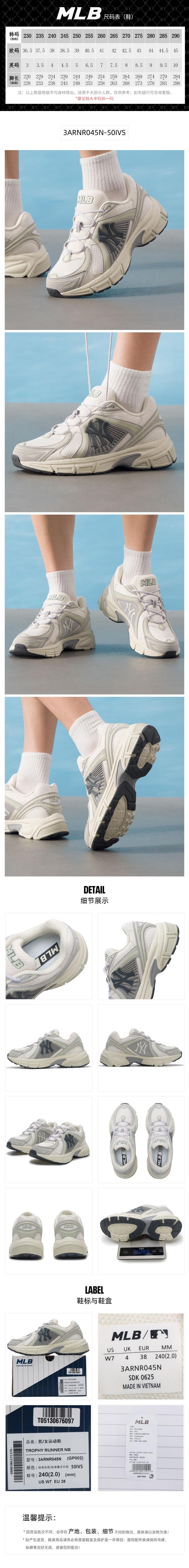 MLB 通用休闲鞋 3ARNR045N-50IVS