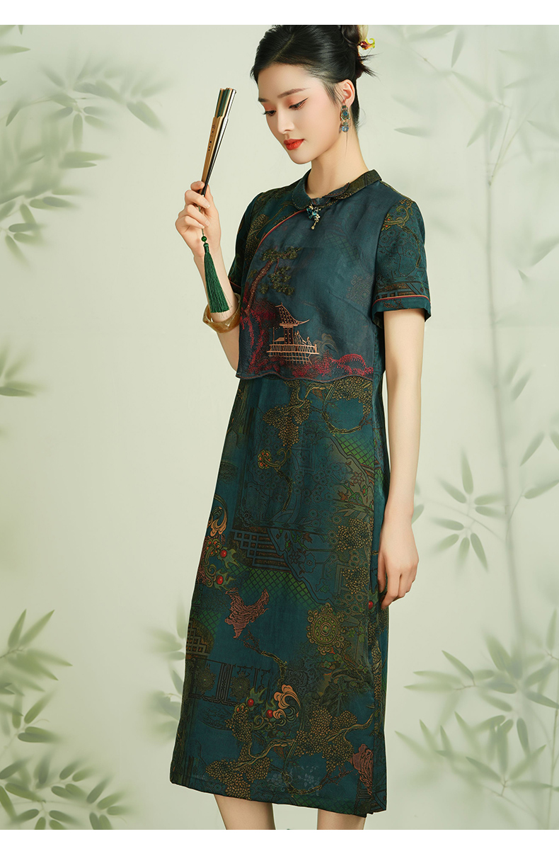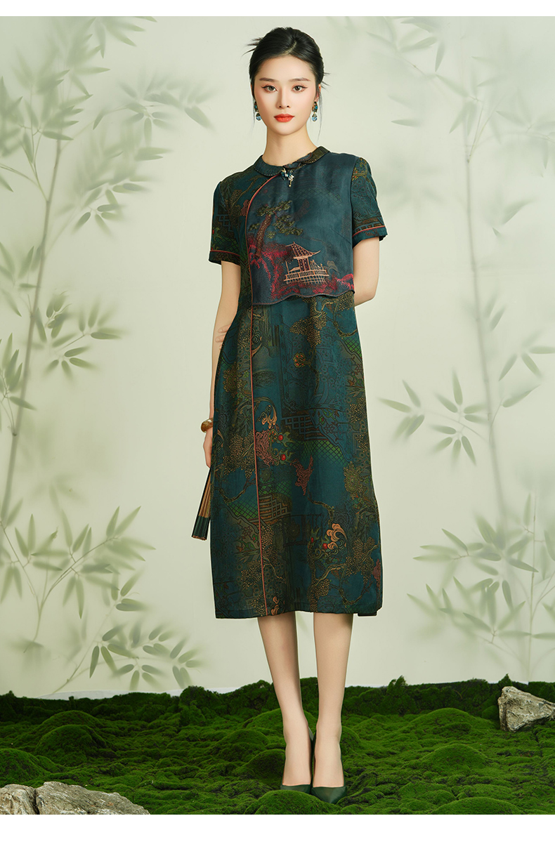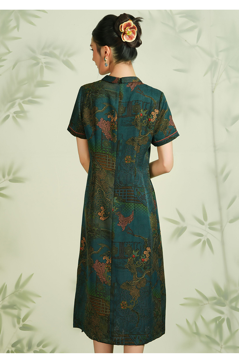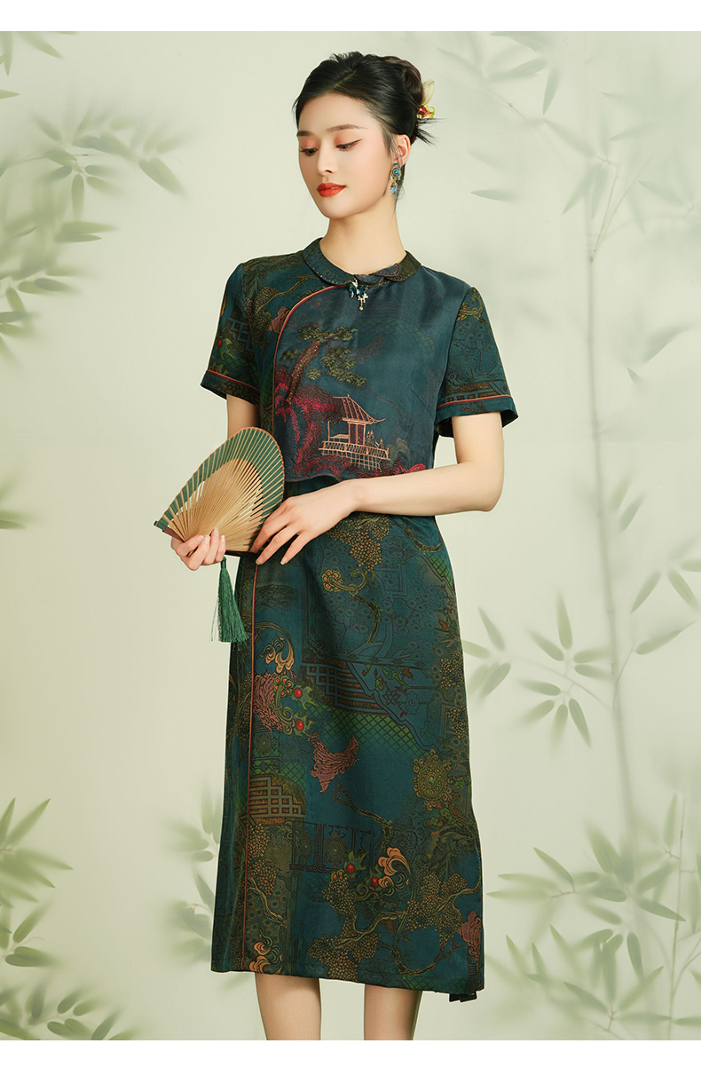 【亭台楼阁】【香云纱】乔万尼28MM100%桑蚕丝旗袍连衣裙EM2E717