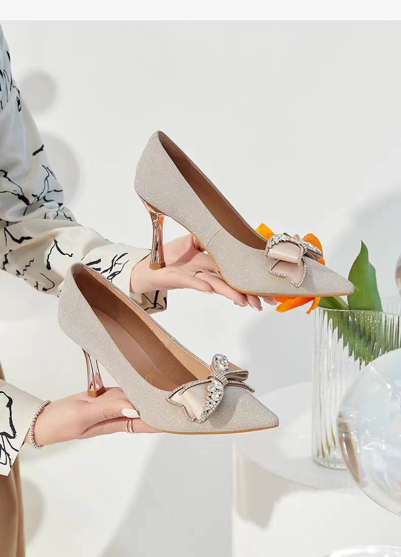 卡迪娜23年春季新款套脚细跟女鞋高跟满邦时装鞋女单鞋KS231559