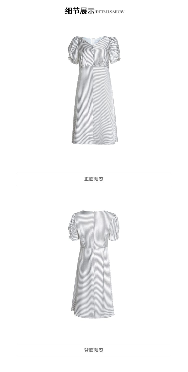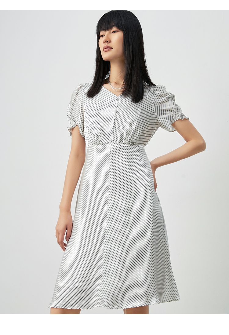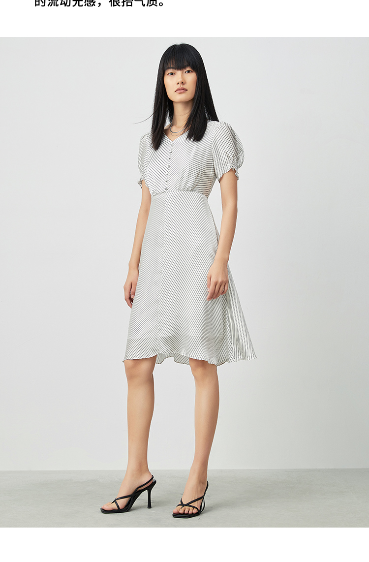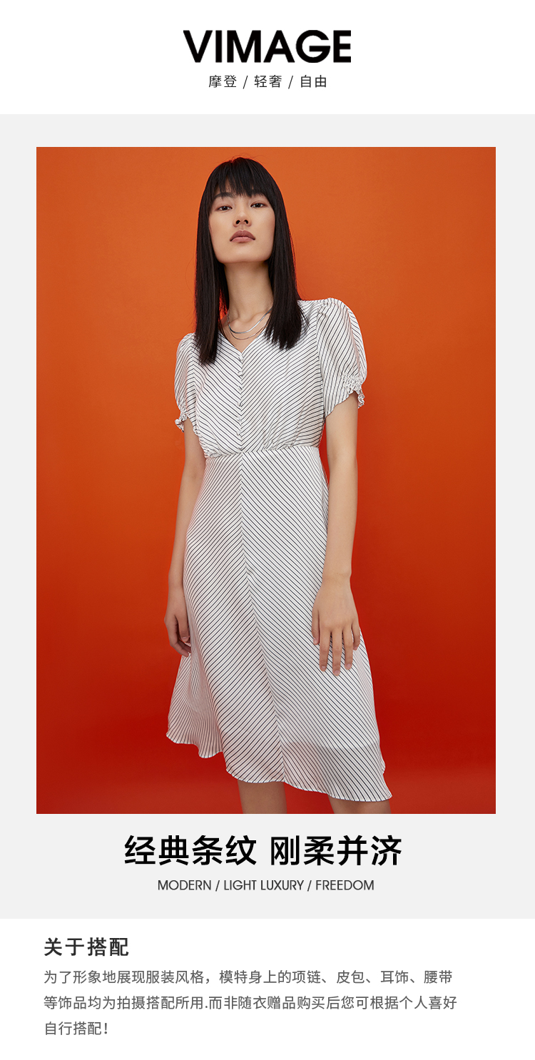 VIMAGE纬漫纪女装夏V领泡泡袖连衣裙中长裙V1307958