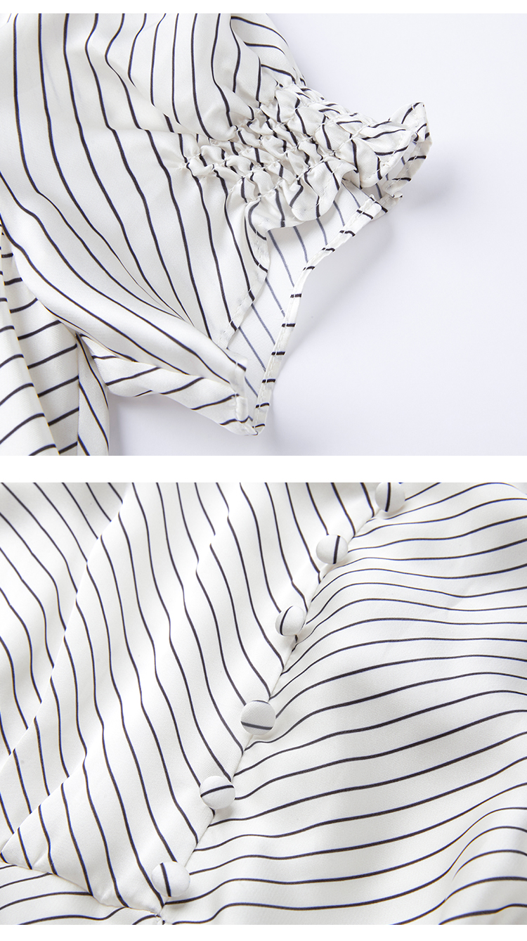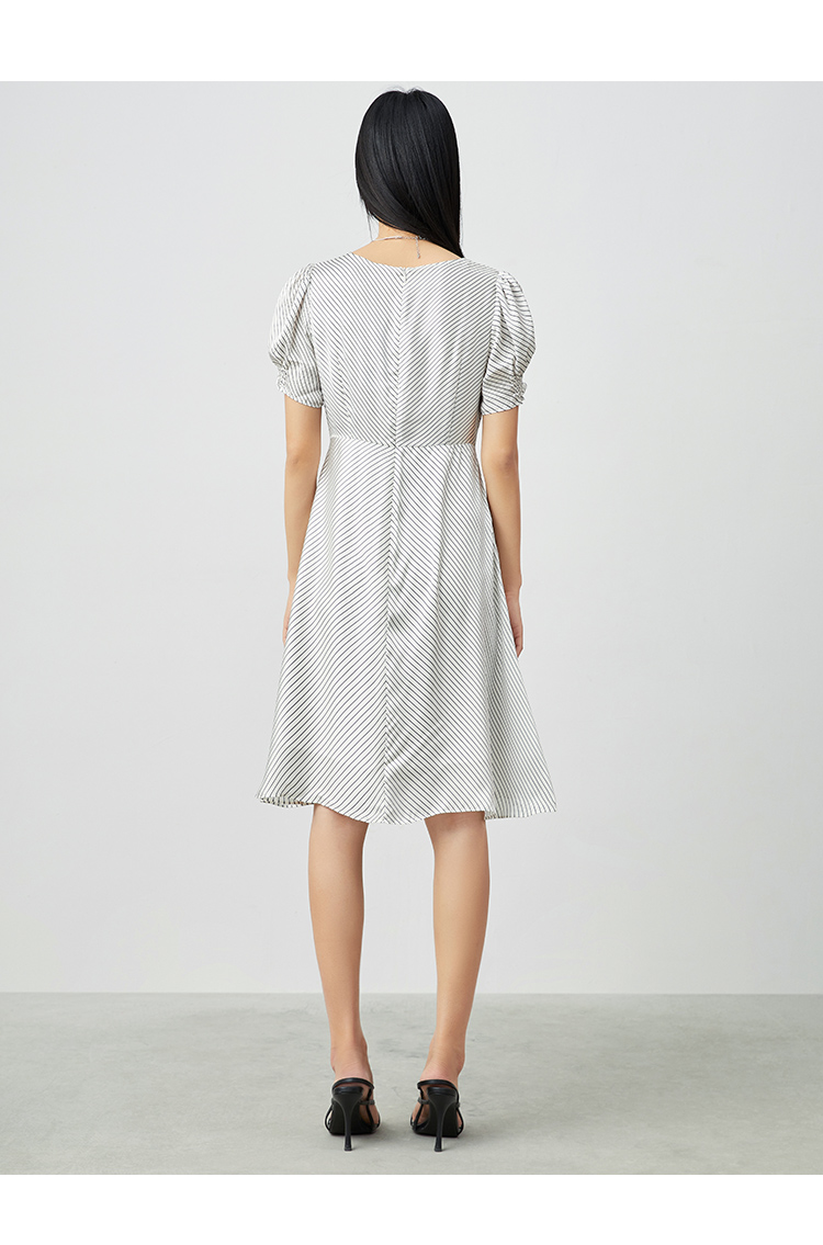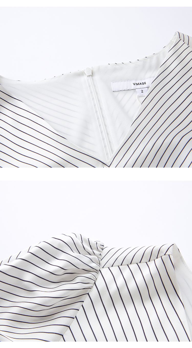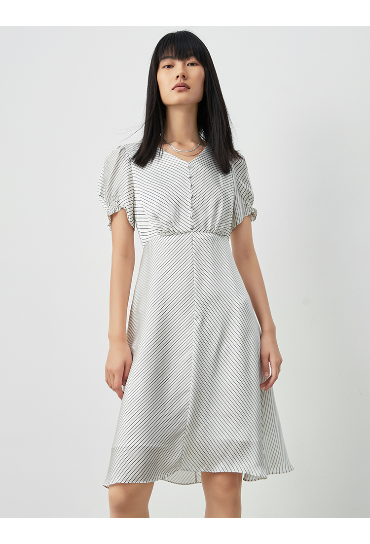 VIMAGE纬漫纪女装夏V领泡泡袖连衣裙中长裙V1307958