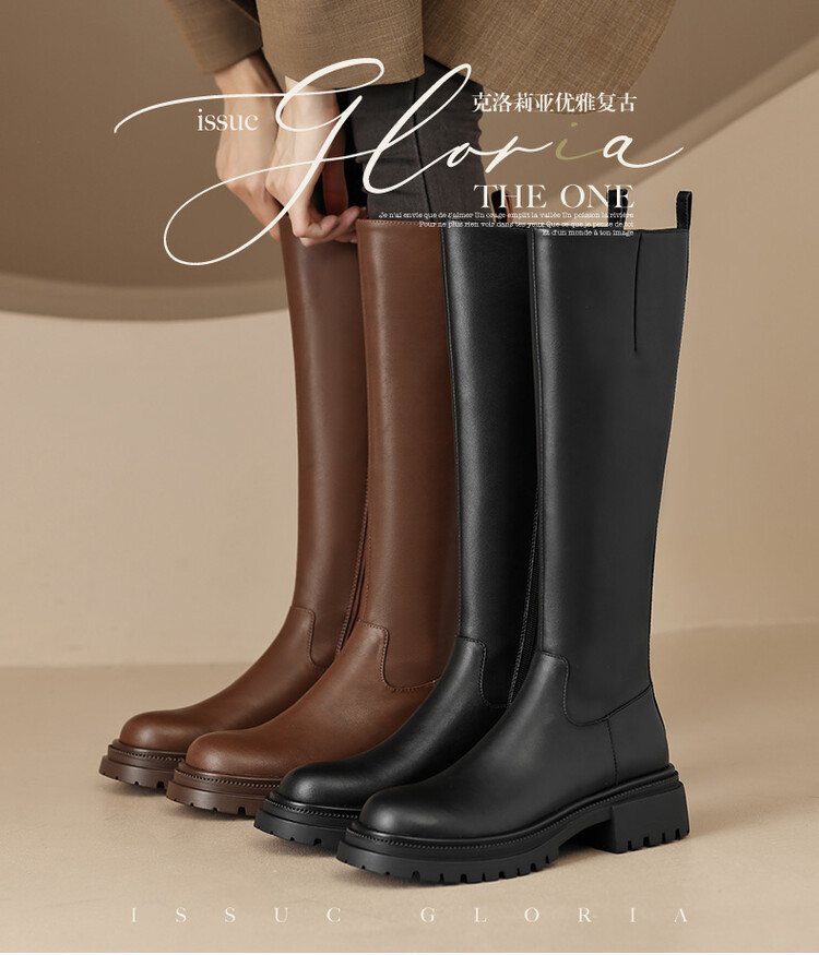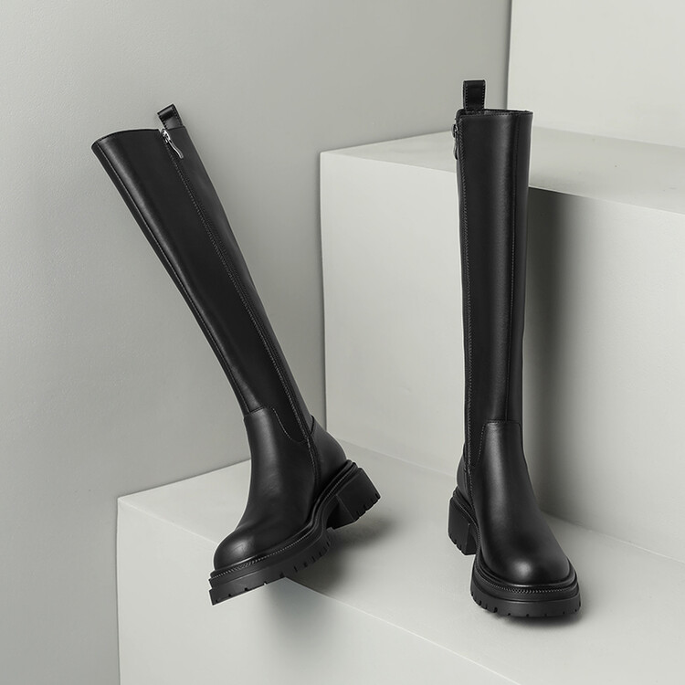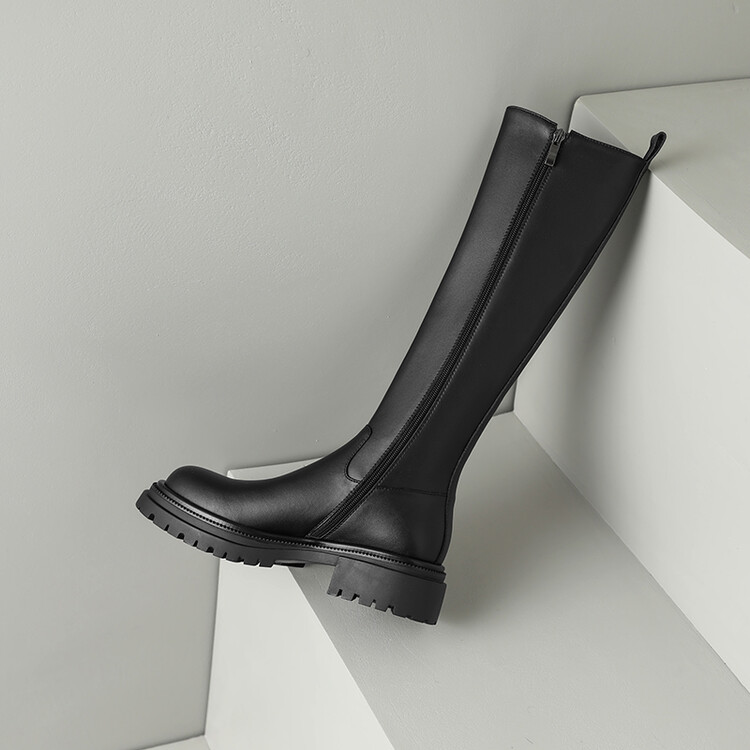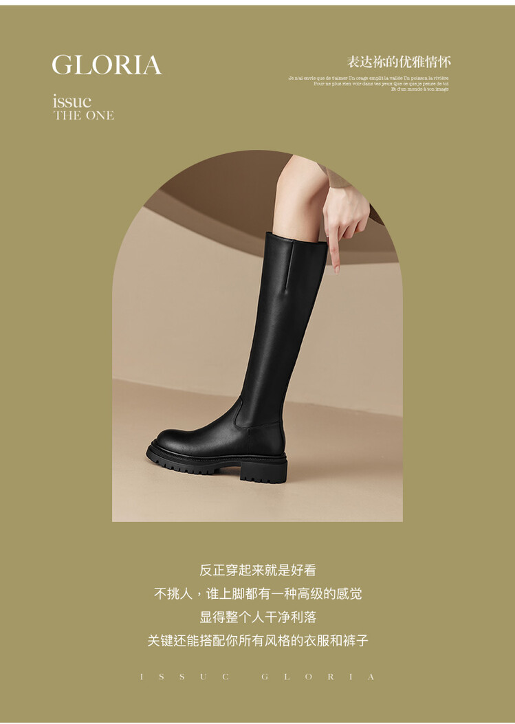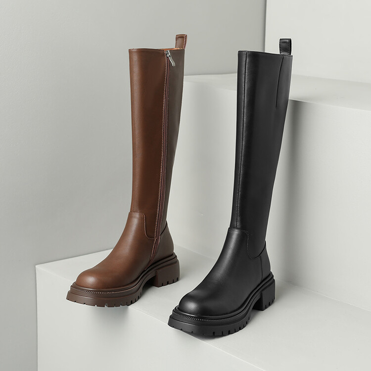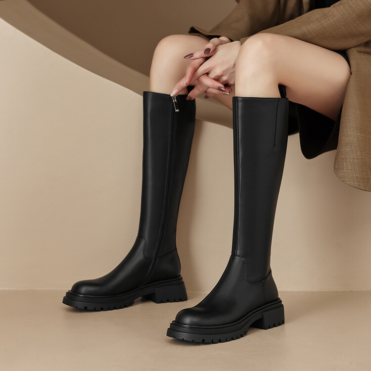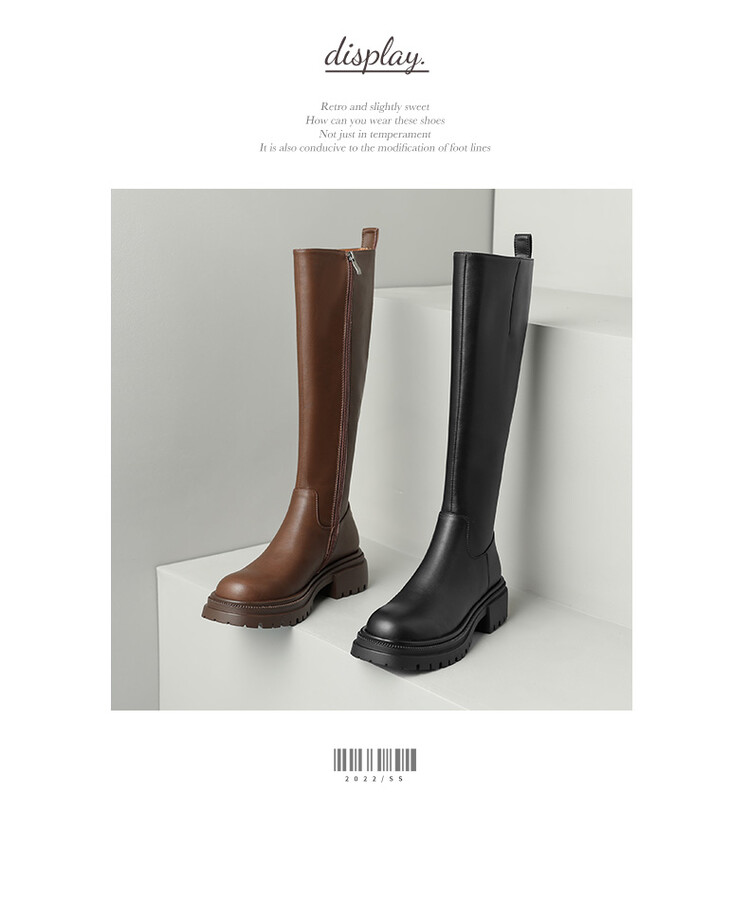 【预售7天】秋冬新款时尚侧拉链厚底高筒骑士靴小个子英伦长筒靴女KYD&DY6108