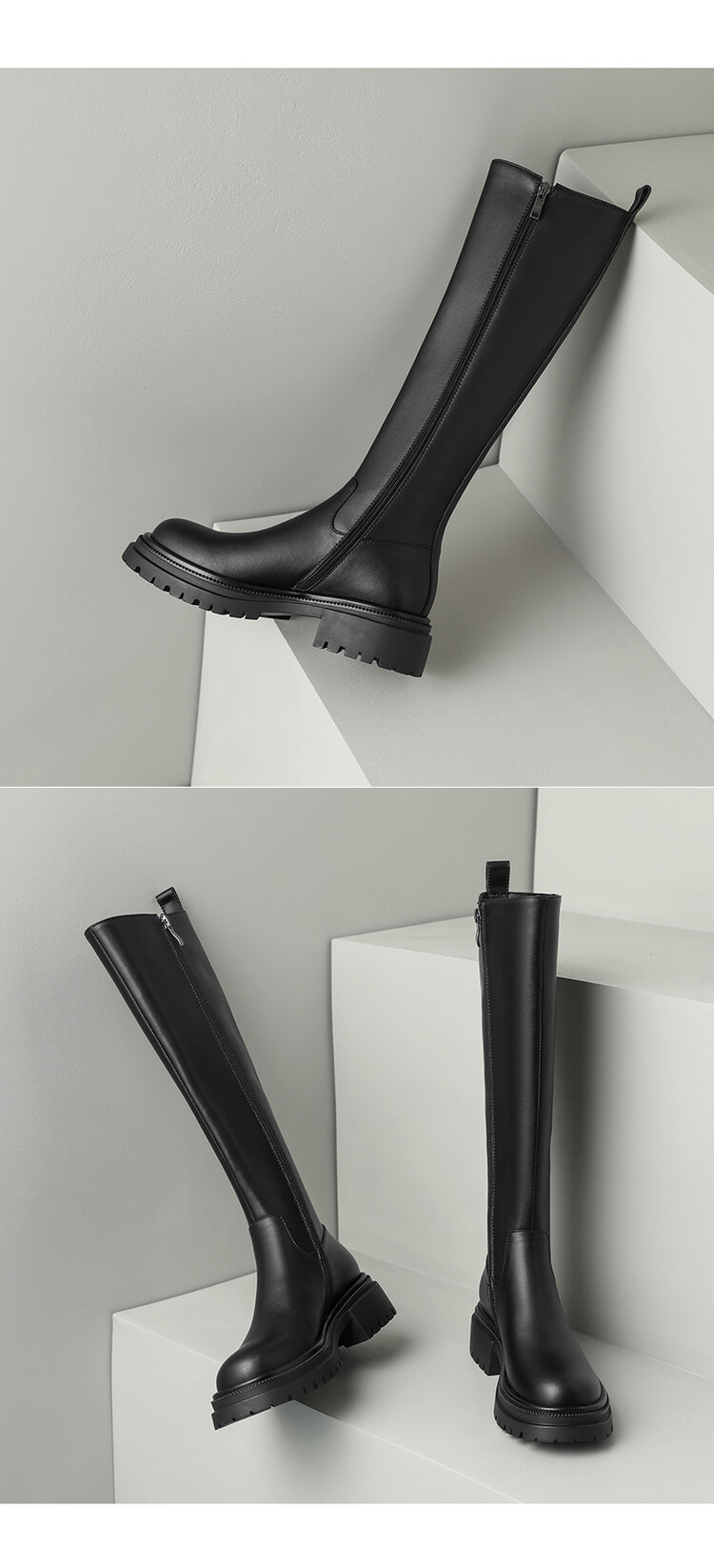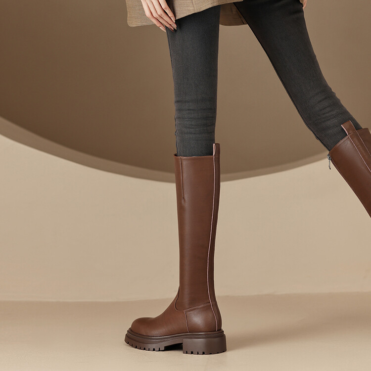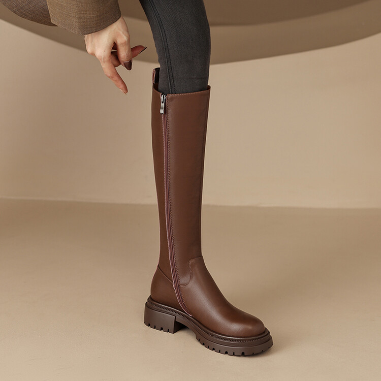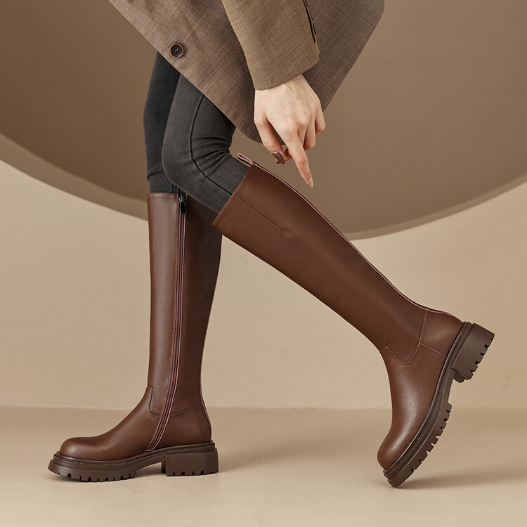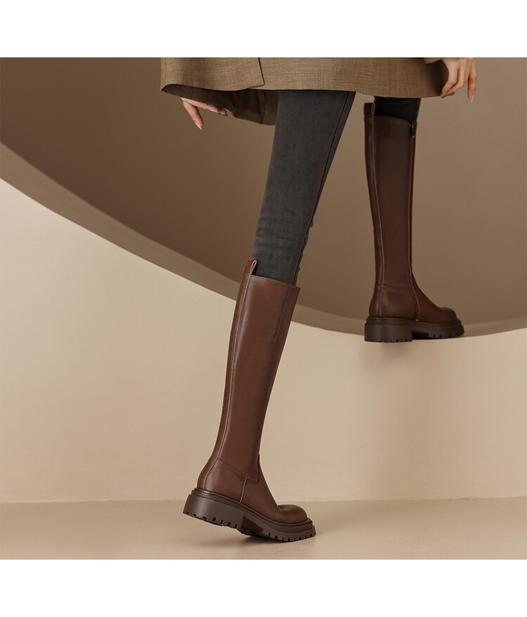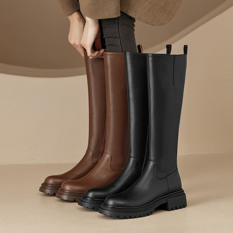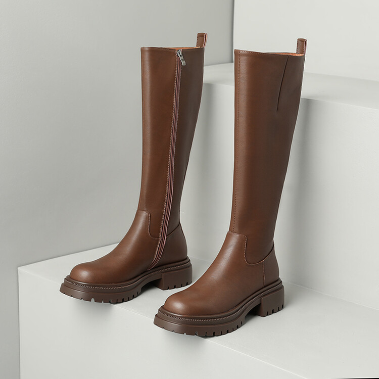 【预售7天】秋冬新款时尚侧拉链厚底高筒骑士靴小个子英伦长筒靴女KYD&DY6108