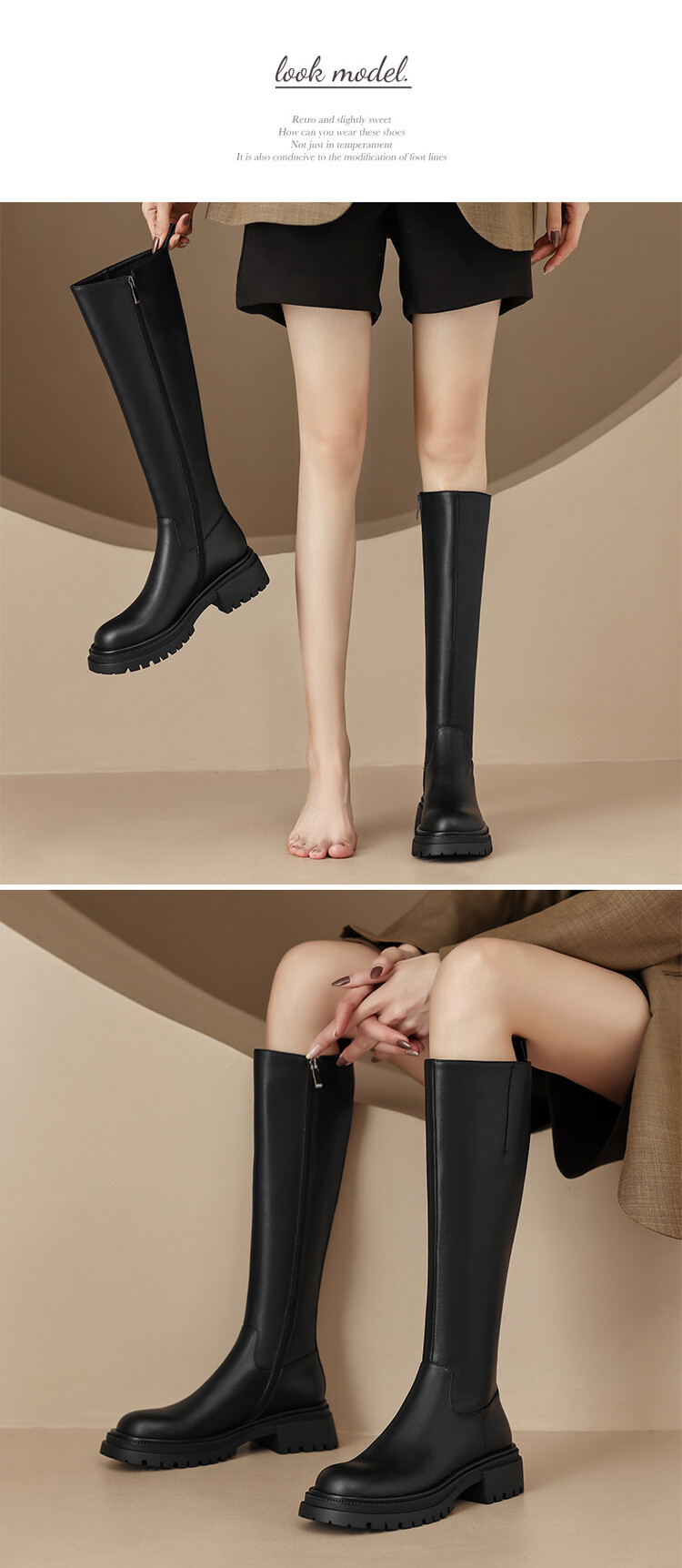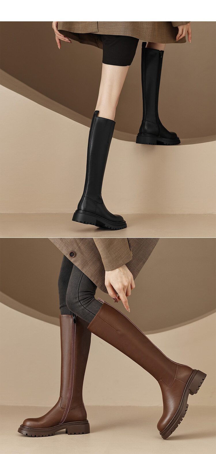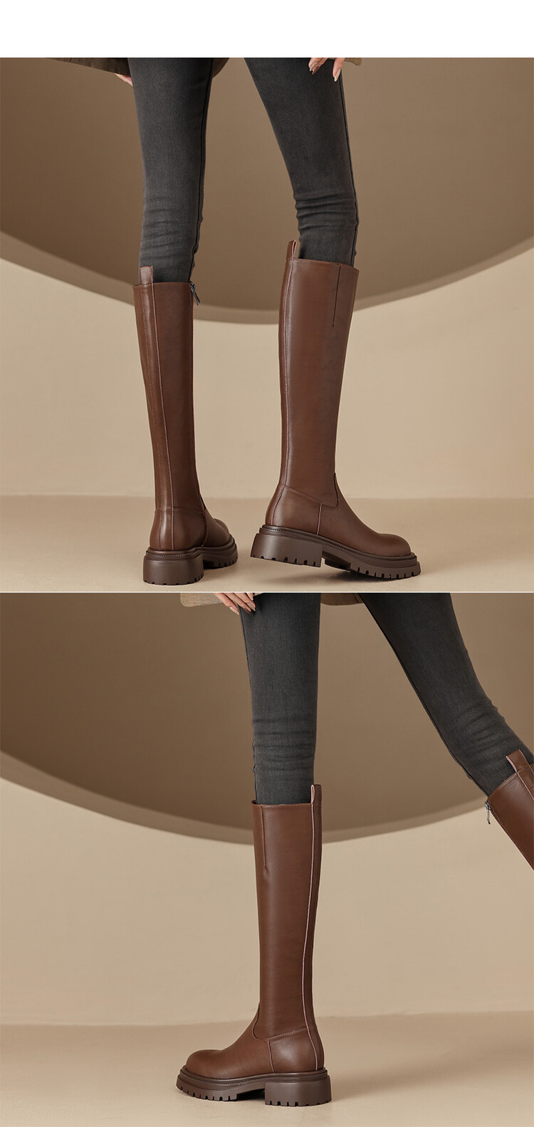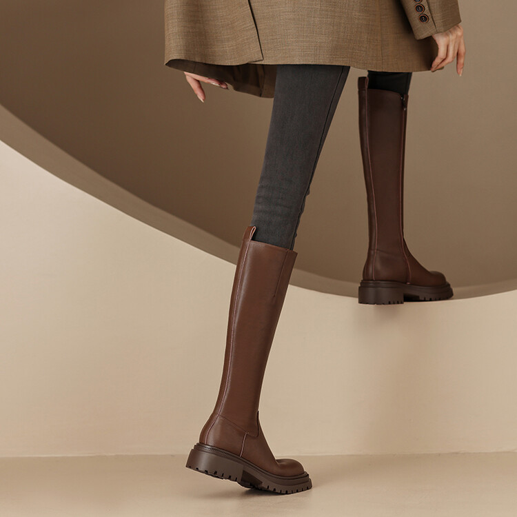 【预售7天】秋冬新款时尚侧拉链厚底高筒骑士靴小个子英伦长筒靴女KYD&DY6108