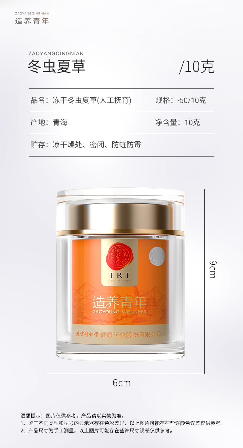 【正宗同仁堂品牌】北京同仁堂 青源堂-冬虫夏草0#-50/10克(DC) SY