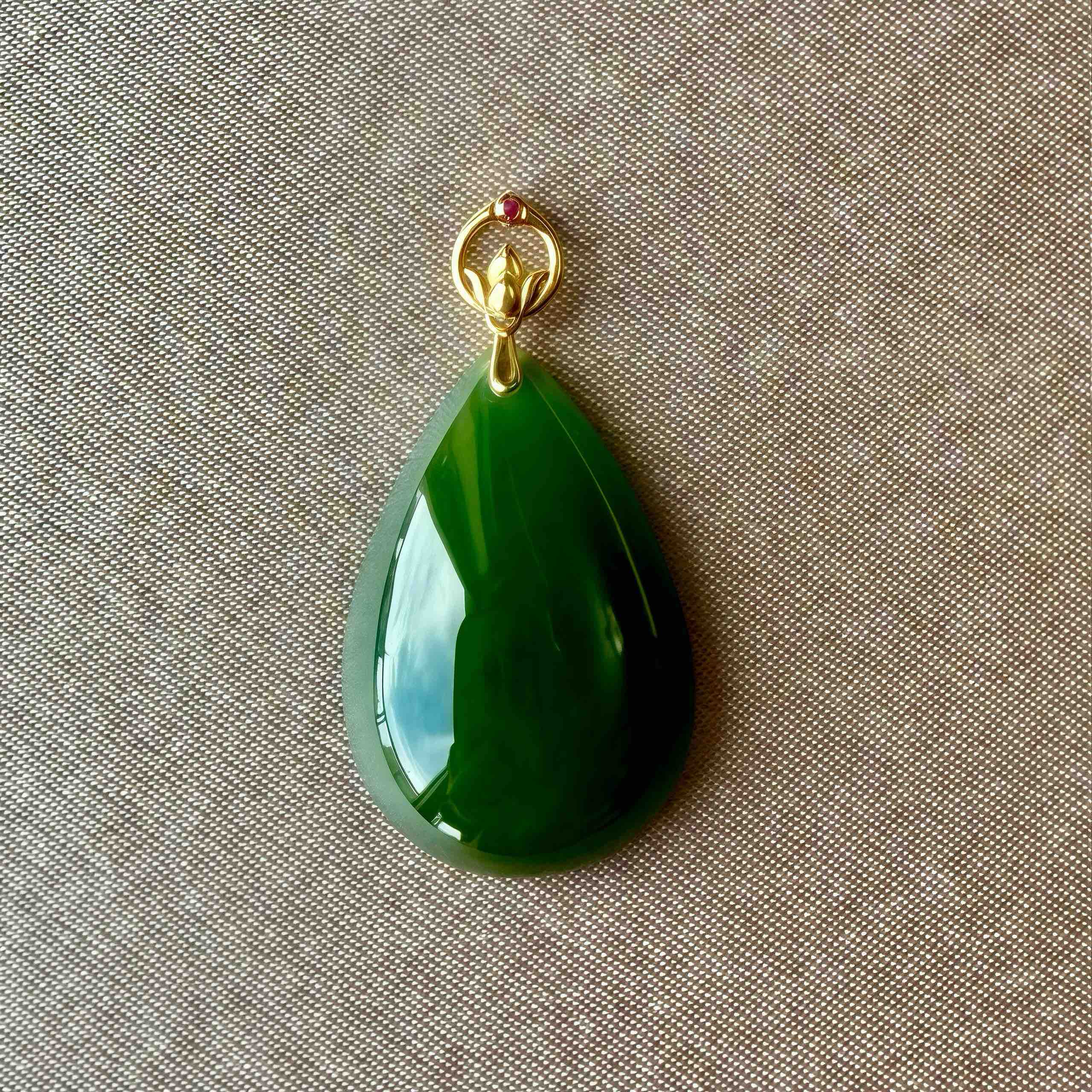玉石尺寸:单面水滴15*20mm/菠菜绿
