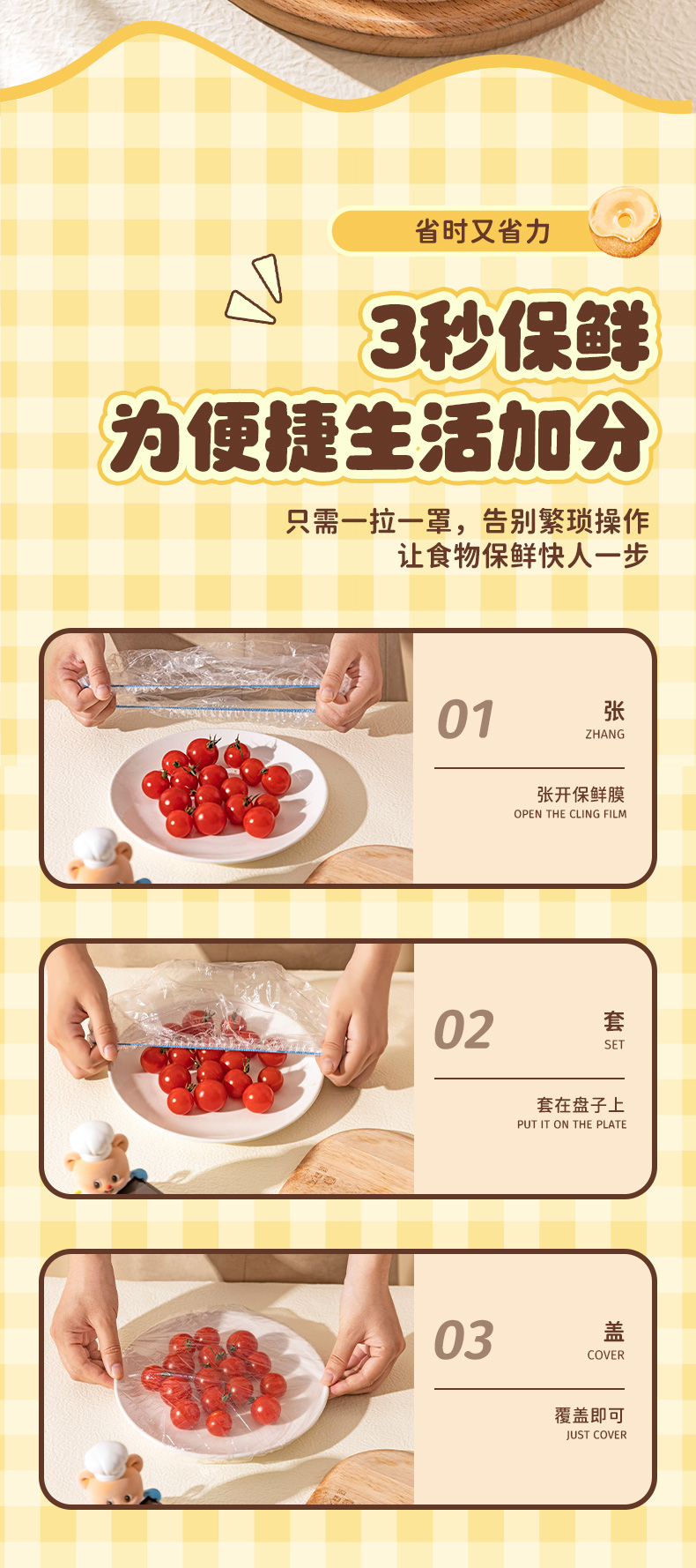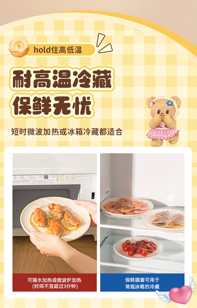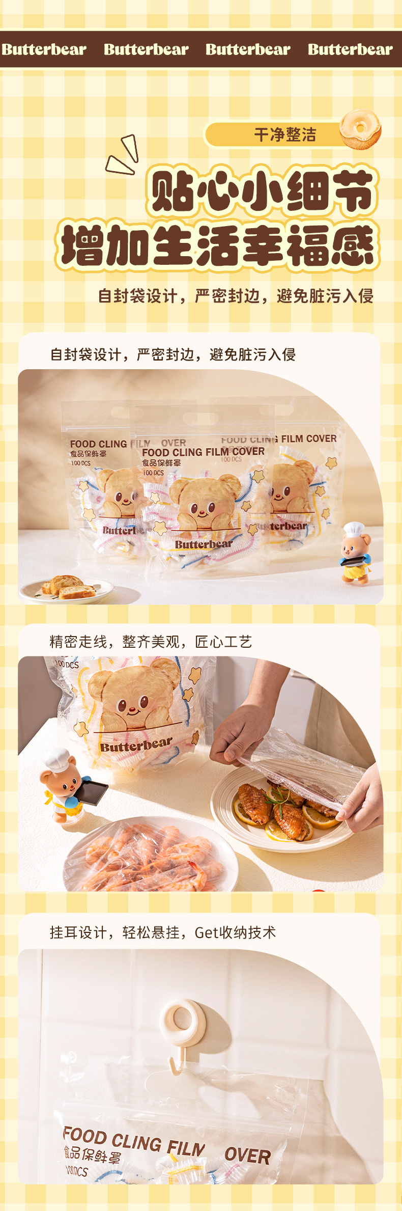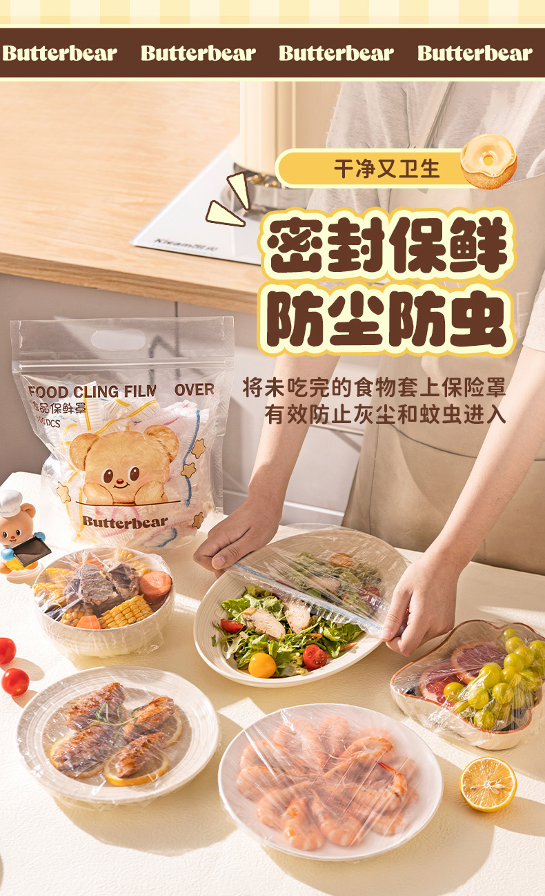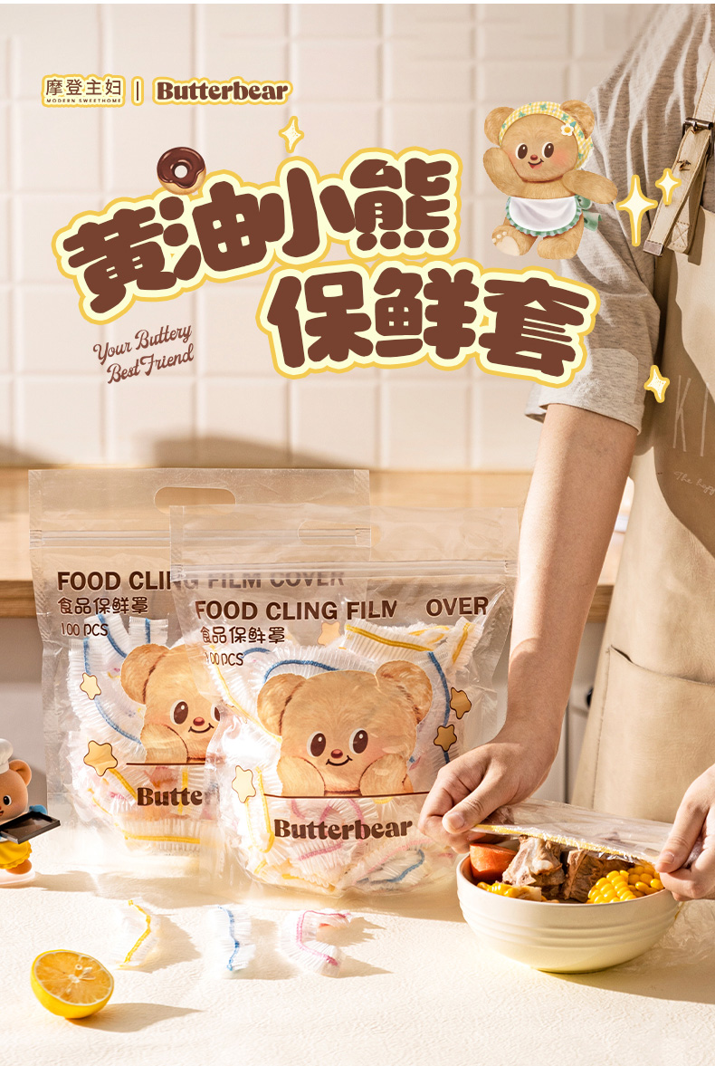 摩登主妇黄油小熊一次性保鲜膜罩食品级保鲜膜套保鲜袋套罩