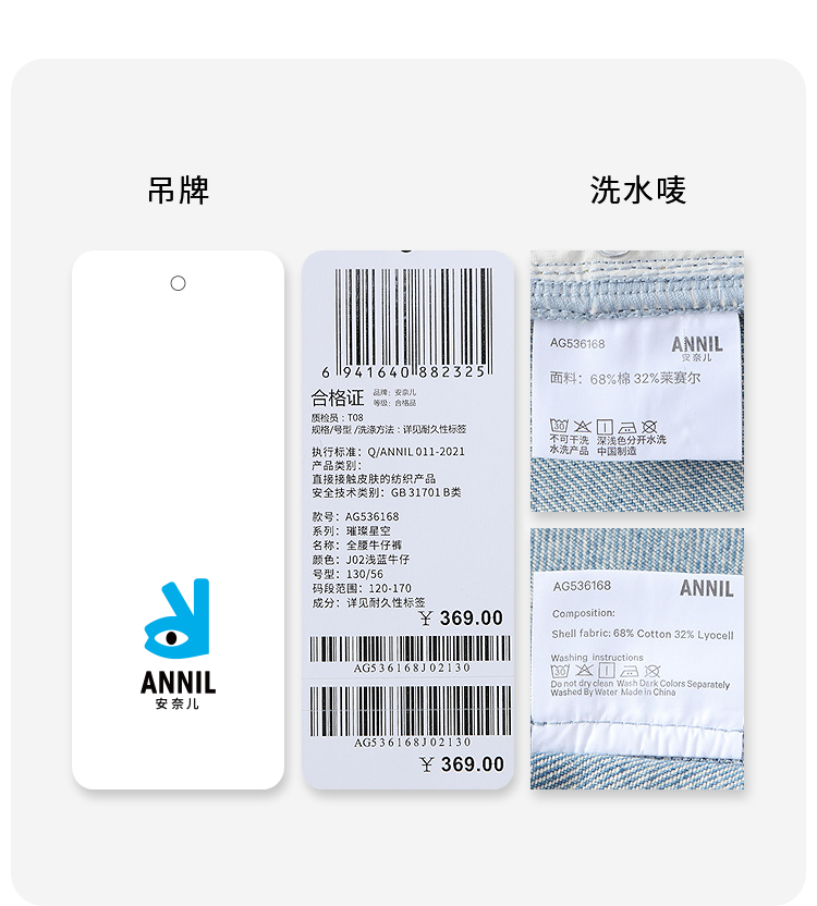 【实体店同款】女童全腰牛仔裤秋季新款安奈儿童装AG536168