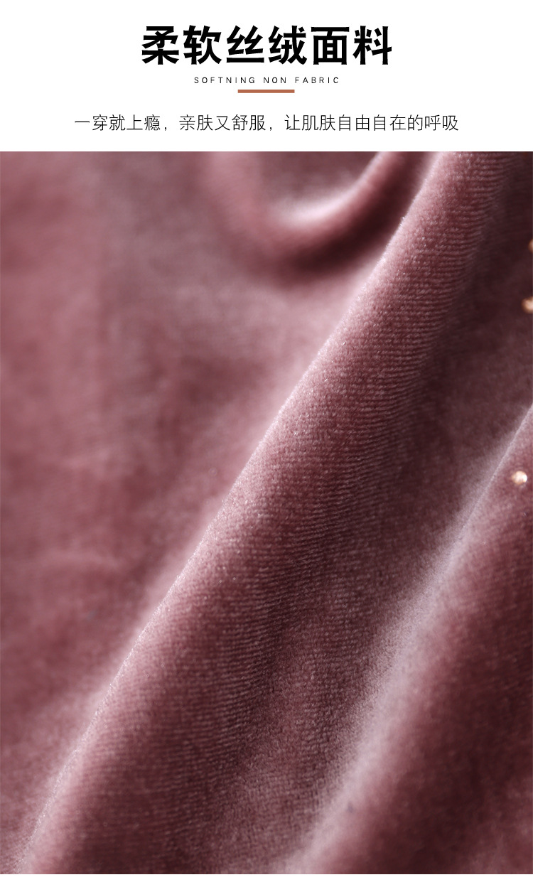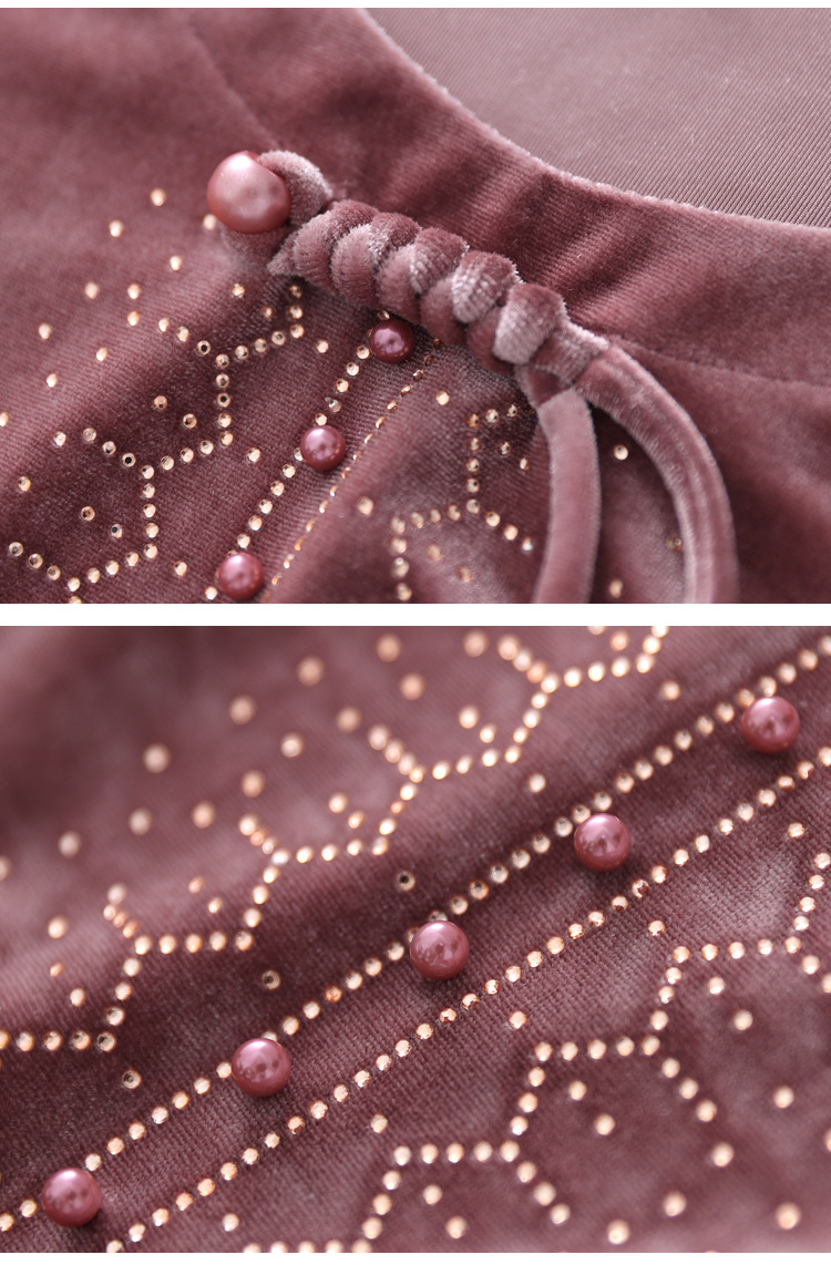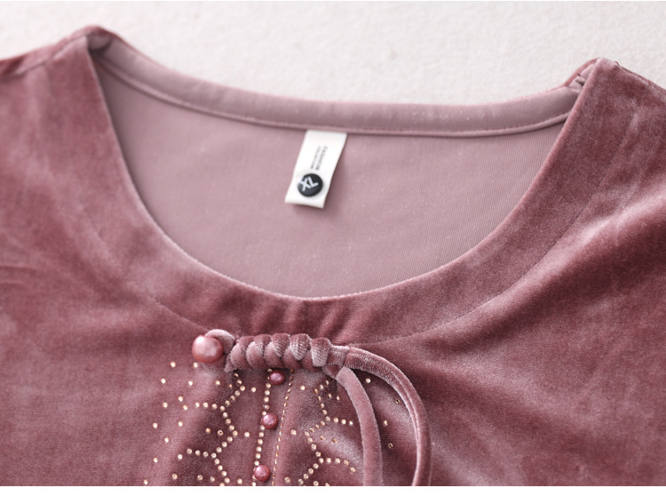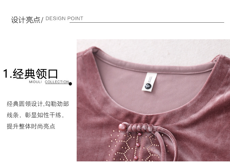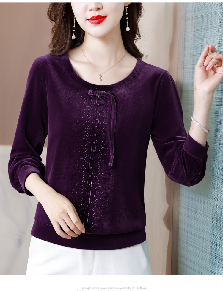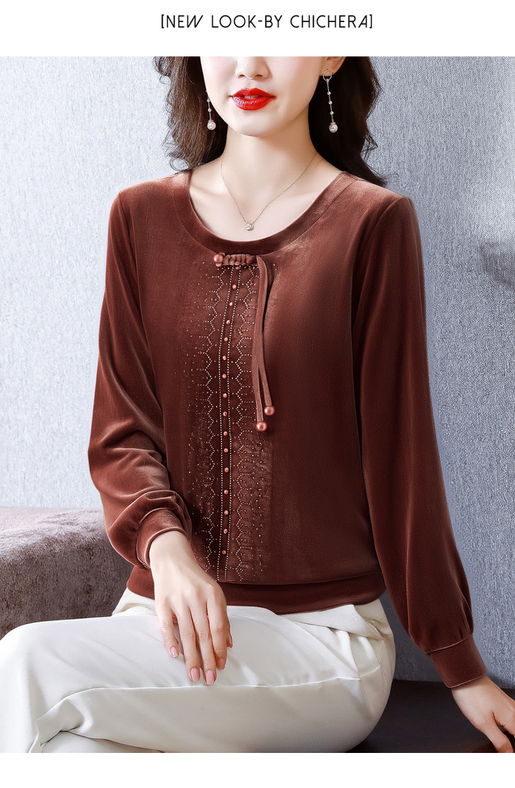 KQL 356H9239新中式国风金丝绒烫钻打底衫气质小衫