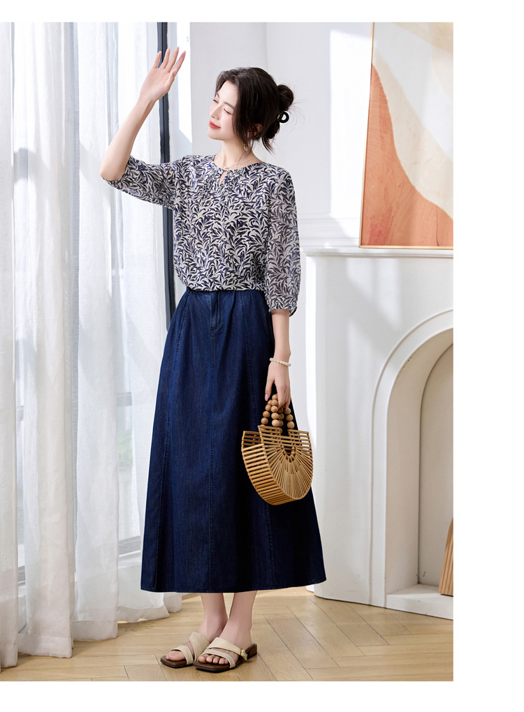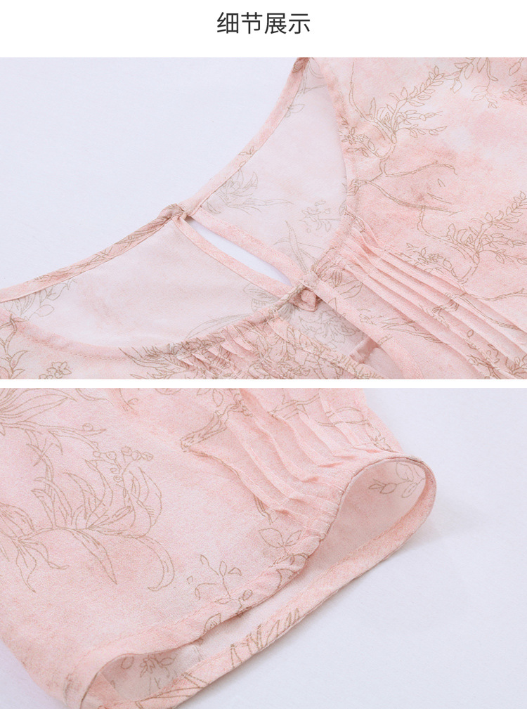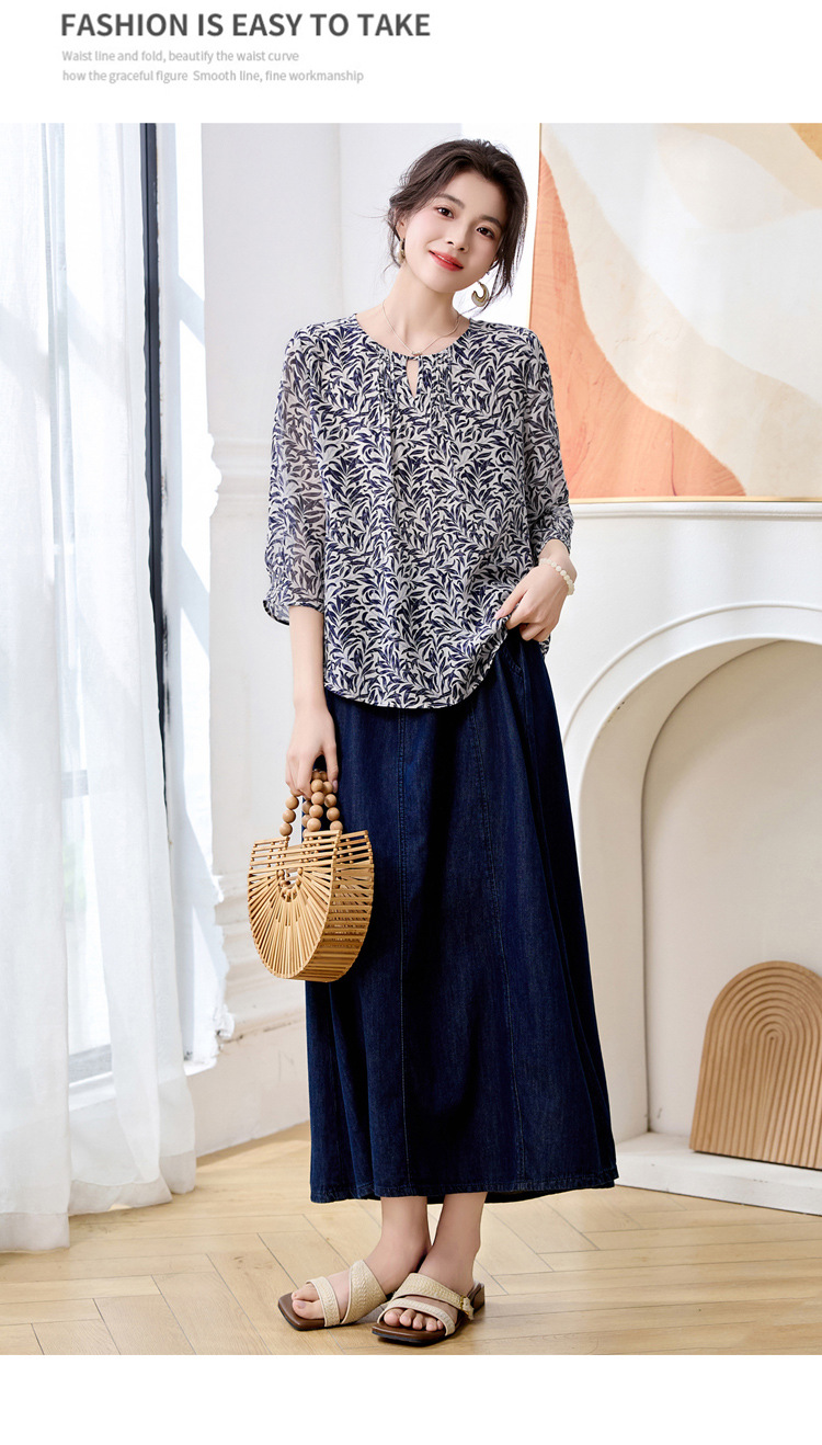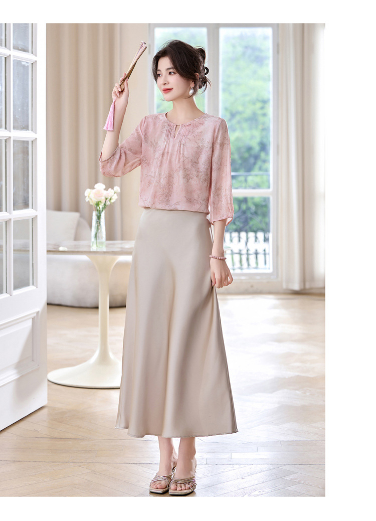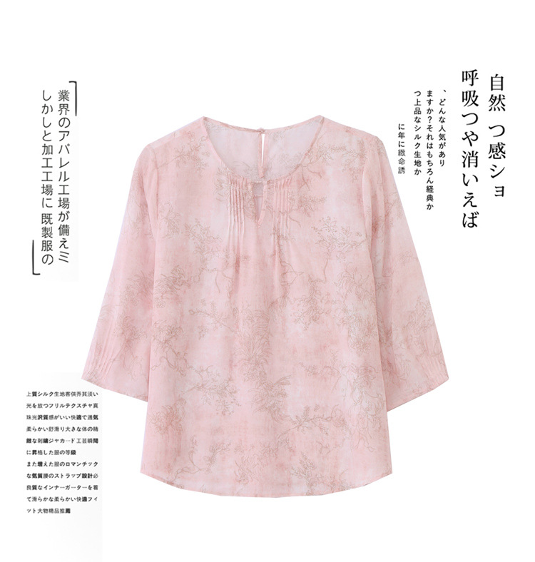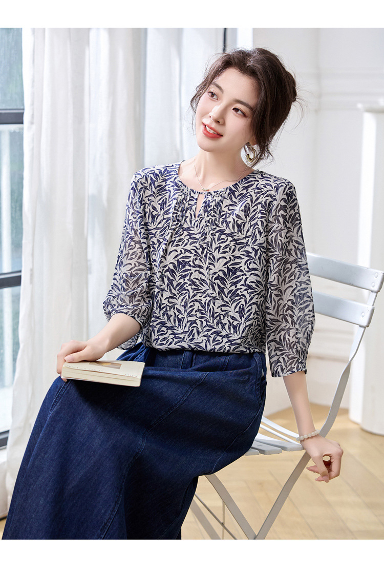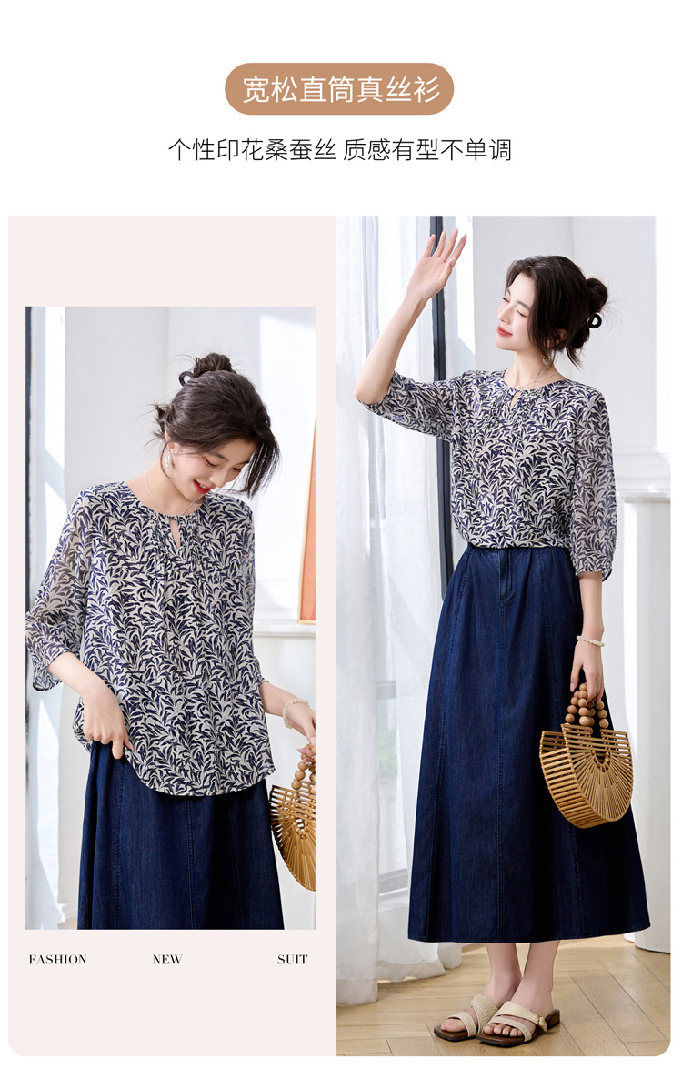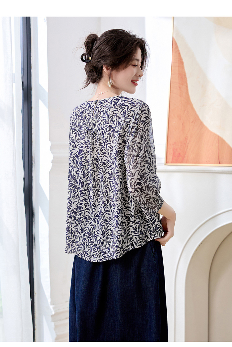 ASE2025夏季新款新中式复古印花衬衫圆领设计感七分袖套头上衣通勤