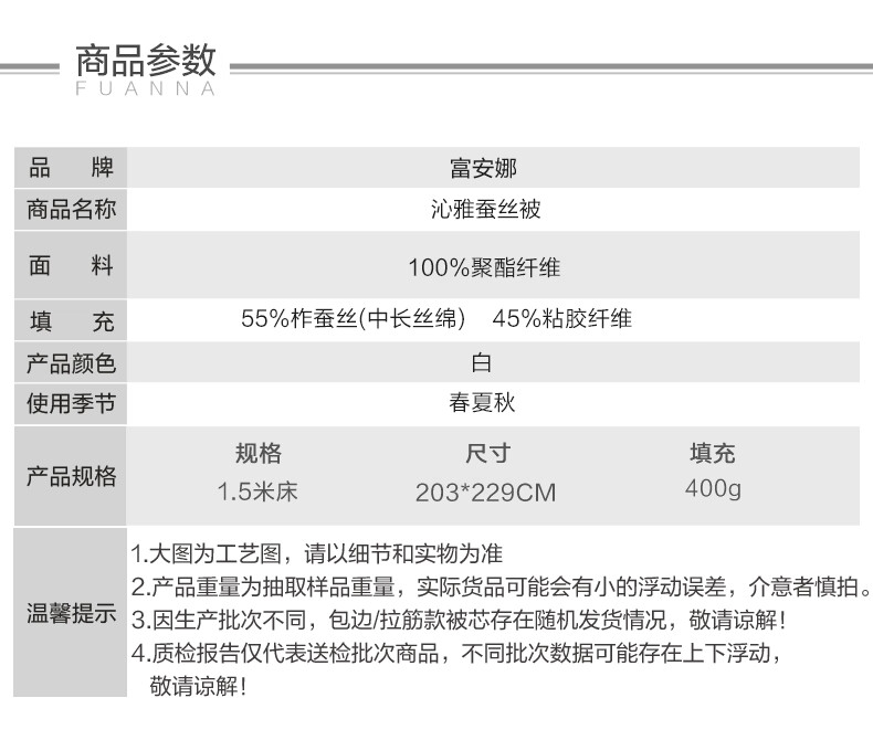 【彤橙】富安娜(FUANNA) 沁雅蚕丝被203*229cm