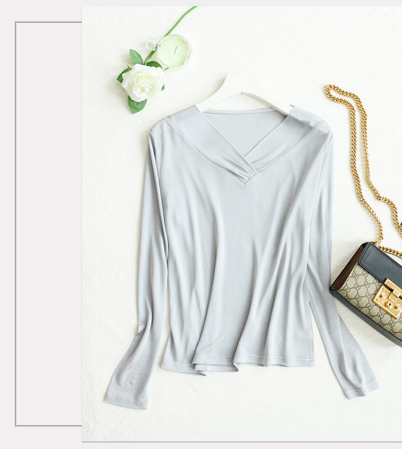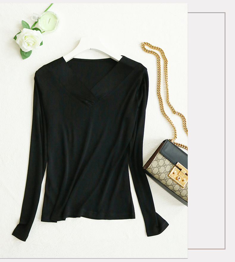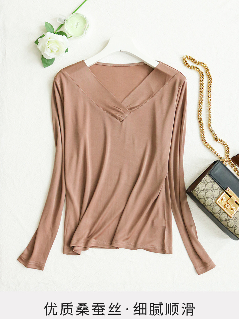 TG-TG03S167 秋冬真丝长袖V领打底衫 桑蚕丝内搭保暖上衣长袖