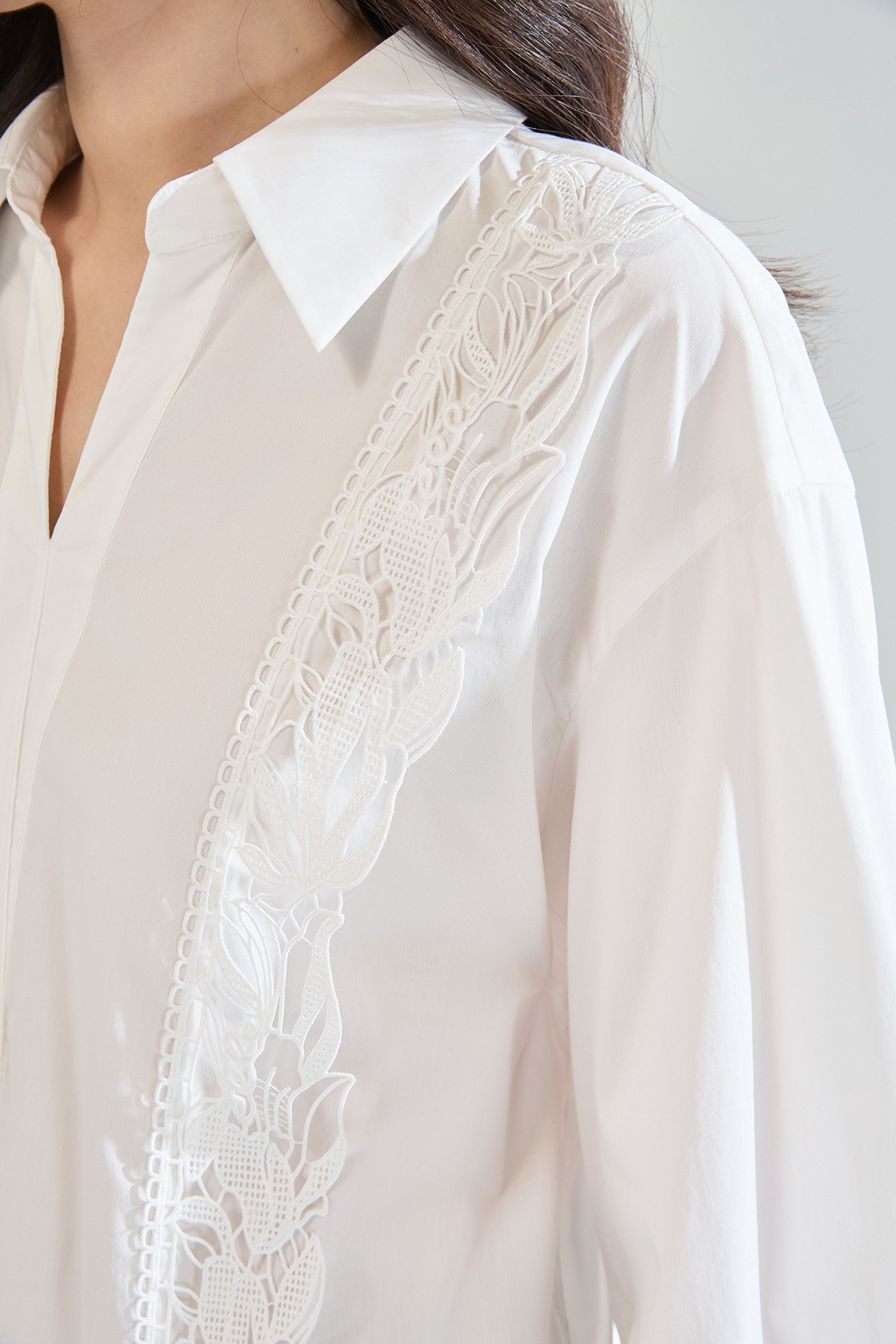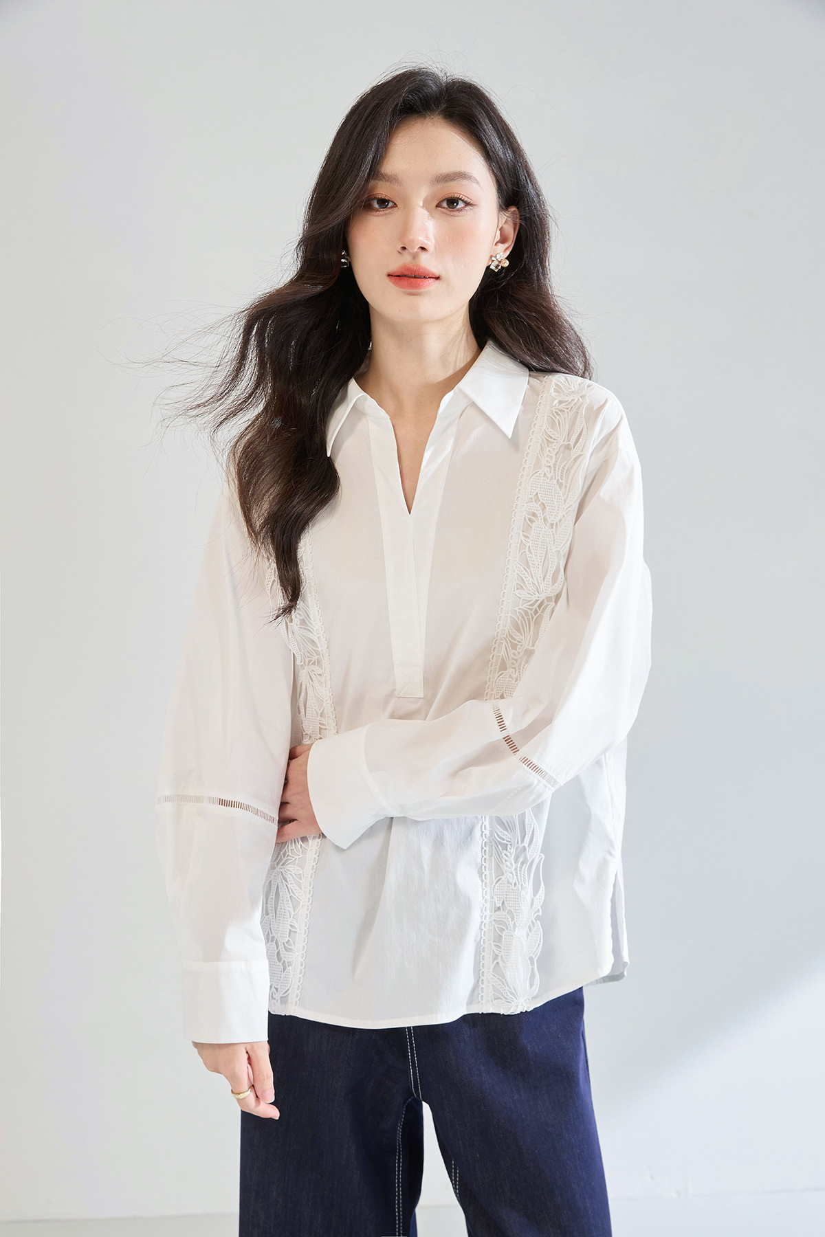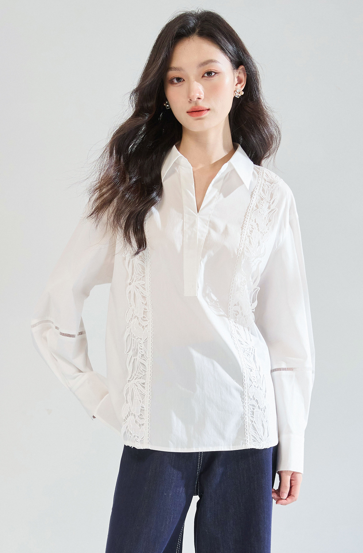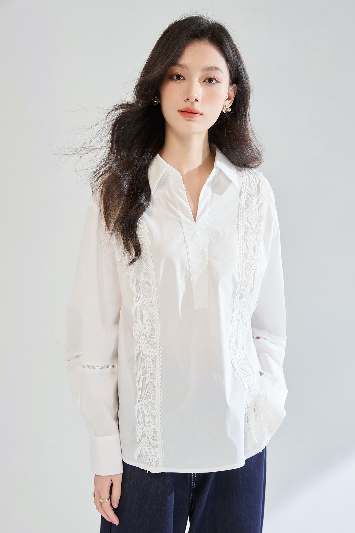 「高货sh」全新升级【铂金会员247/天猫329/差价82】(95902)洛诗琳法式镂空蕾丝花边拼接衬衫2025夏季简约气质V领上衣