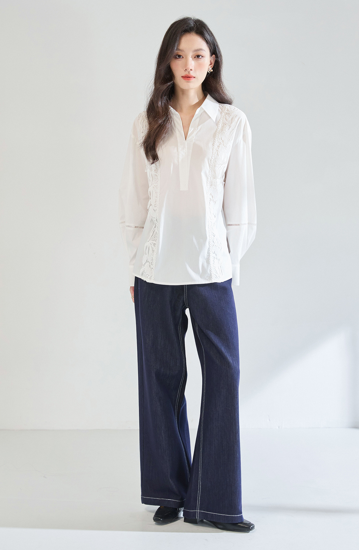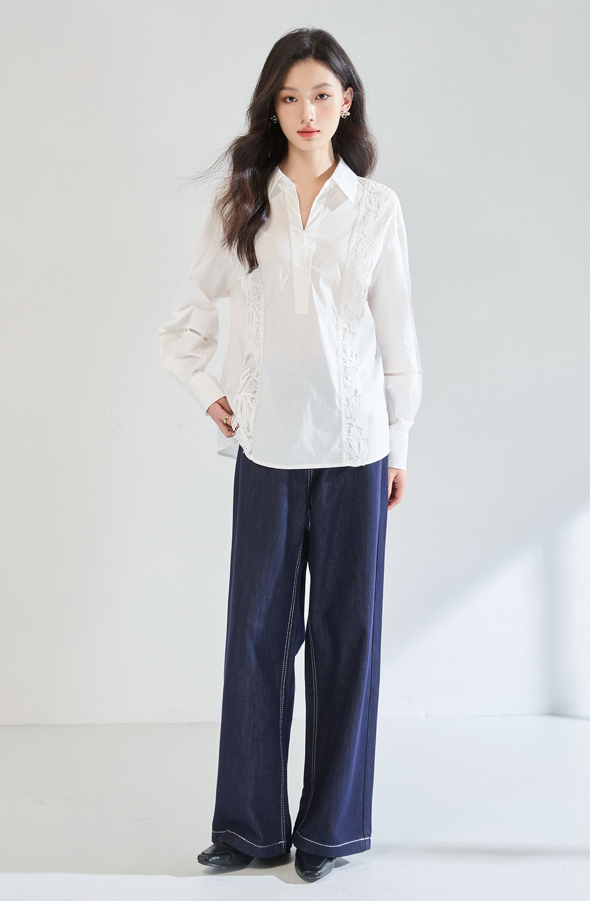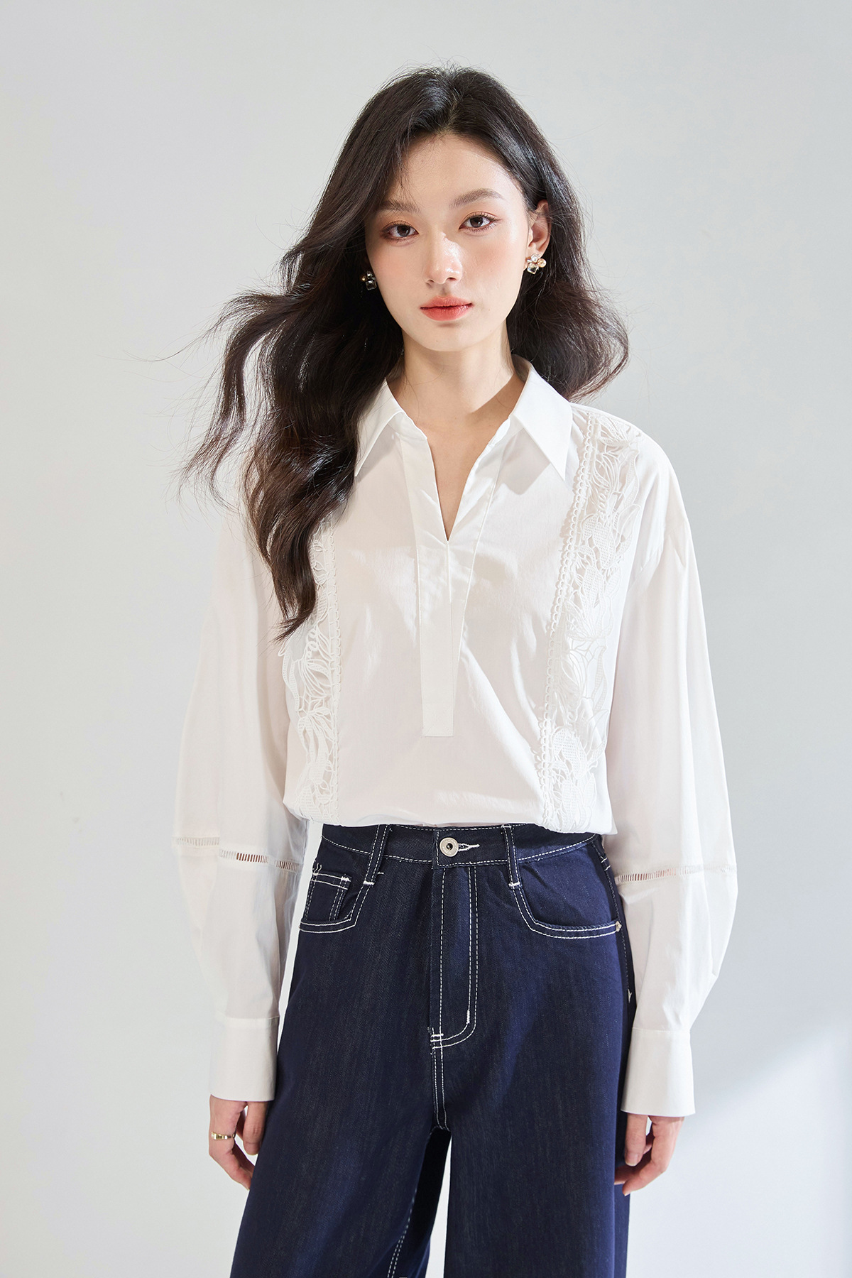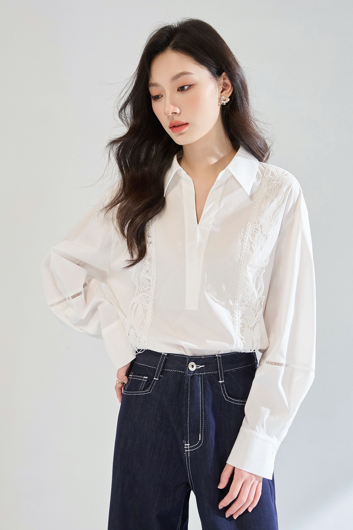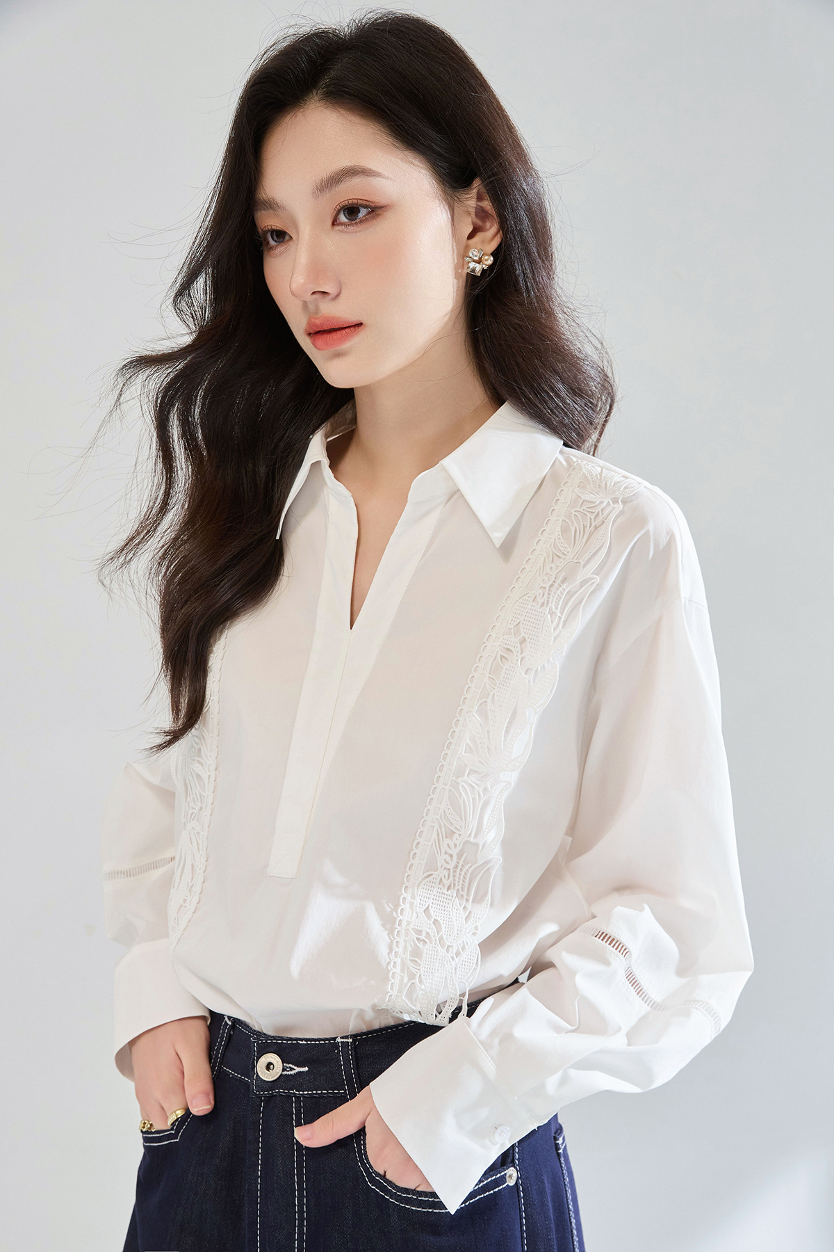 「高货sh」全新升级【铂金会员247/天猫329/差价82】(95902)洛诗琳法式镂空蕾丝花边拼接衬衫2025夏季简约气质V领上衣