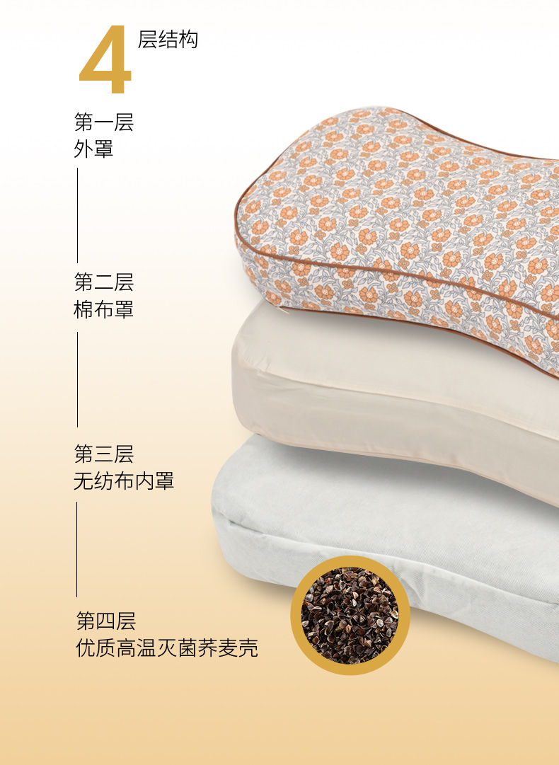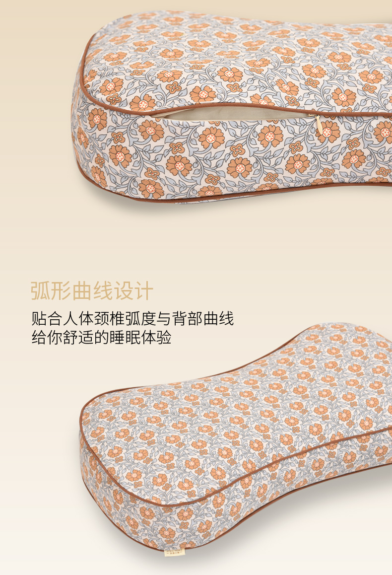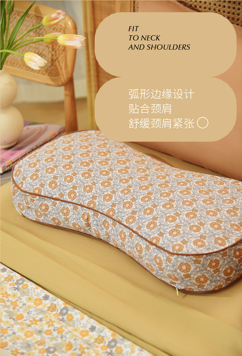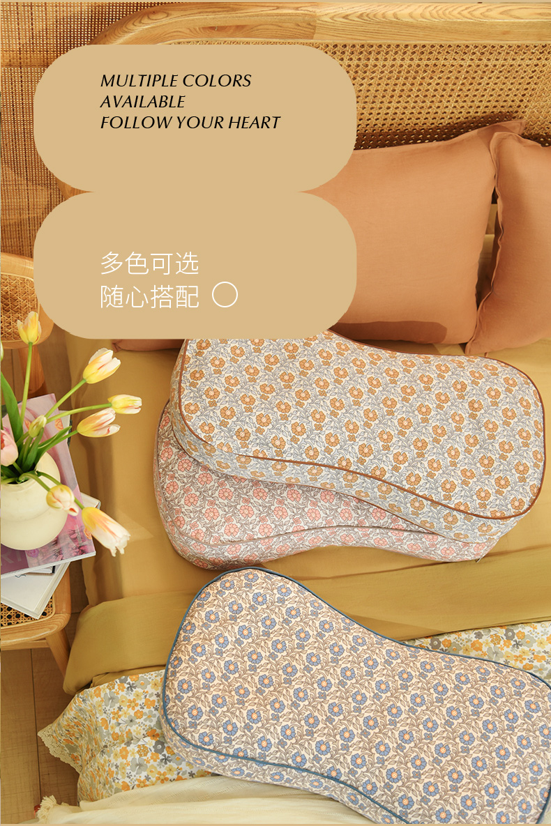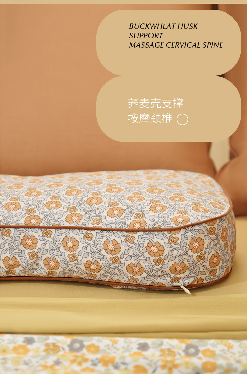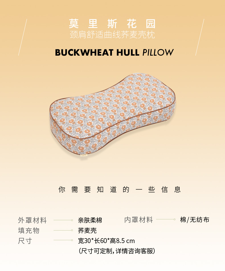 莫里斯花园系列曲线枕荞麦壳枕头护颈椎病荞麦皮睡眠四季