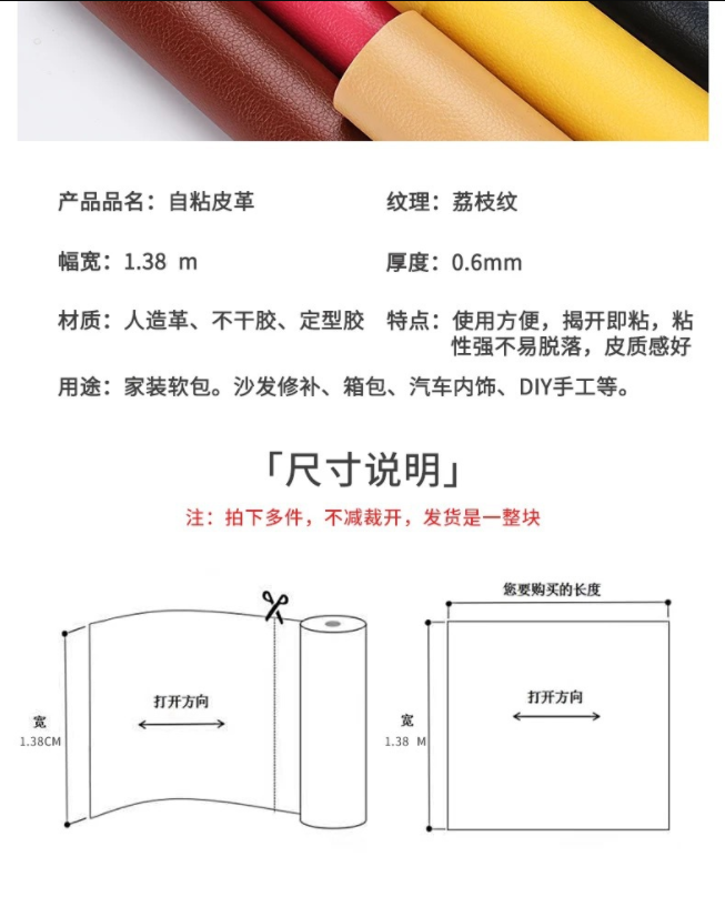 【春艺】皮革修补贴自粘背胶荔枝纹沙发床座椅修复补丁翻新面料ERP-Z仓