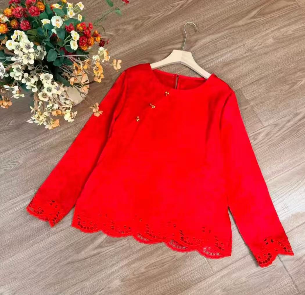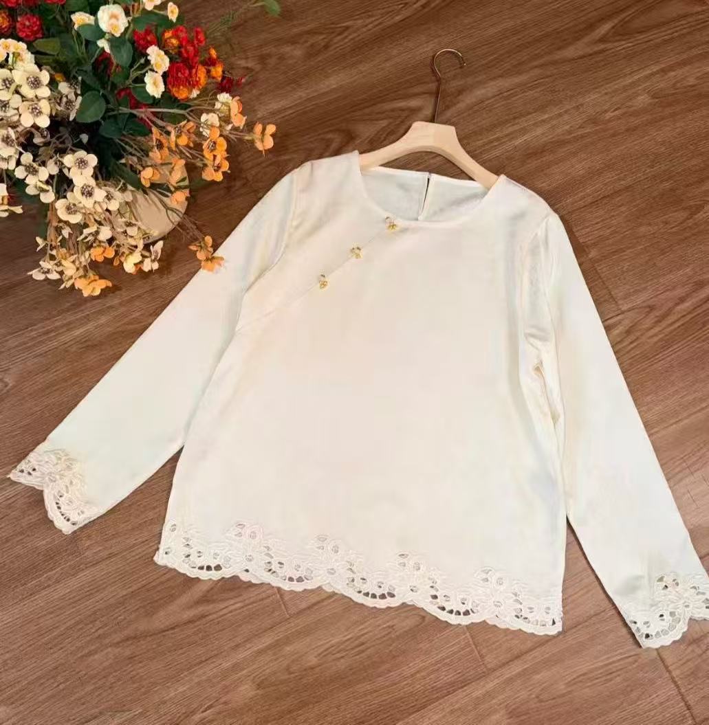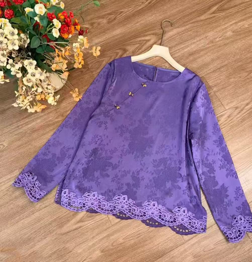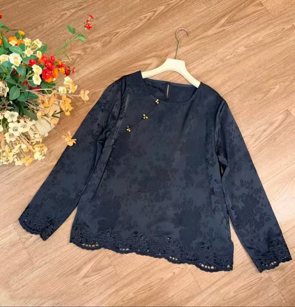 丁摩 新中式国风上衣早春新品圆领宋锦提花长袖复古衬衣打底衫5ZF-043