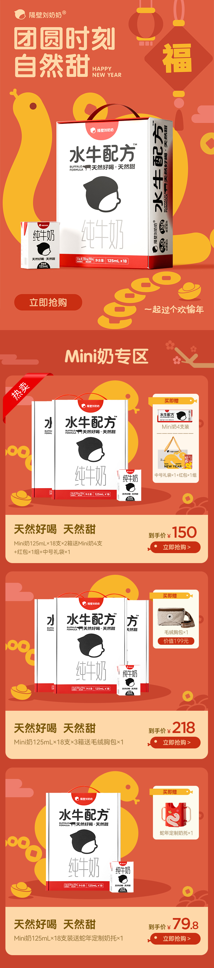 【丸丫】隔壁刘奶奶水牛配方mini奶125ml*18盒/箱高钙