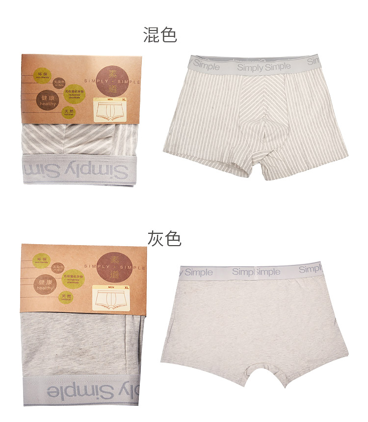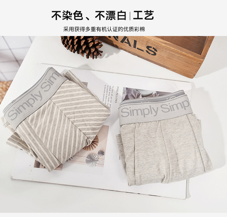 有机彩棉男士内裤 三角裤/平角裤 纯色条纹 简约纯棉 宽松透气 四角短裤