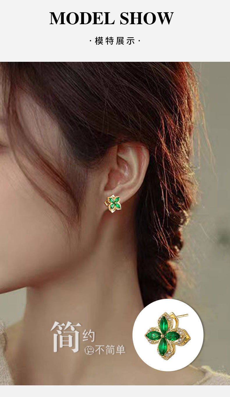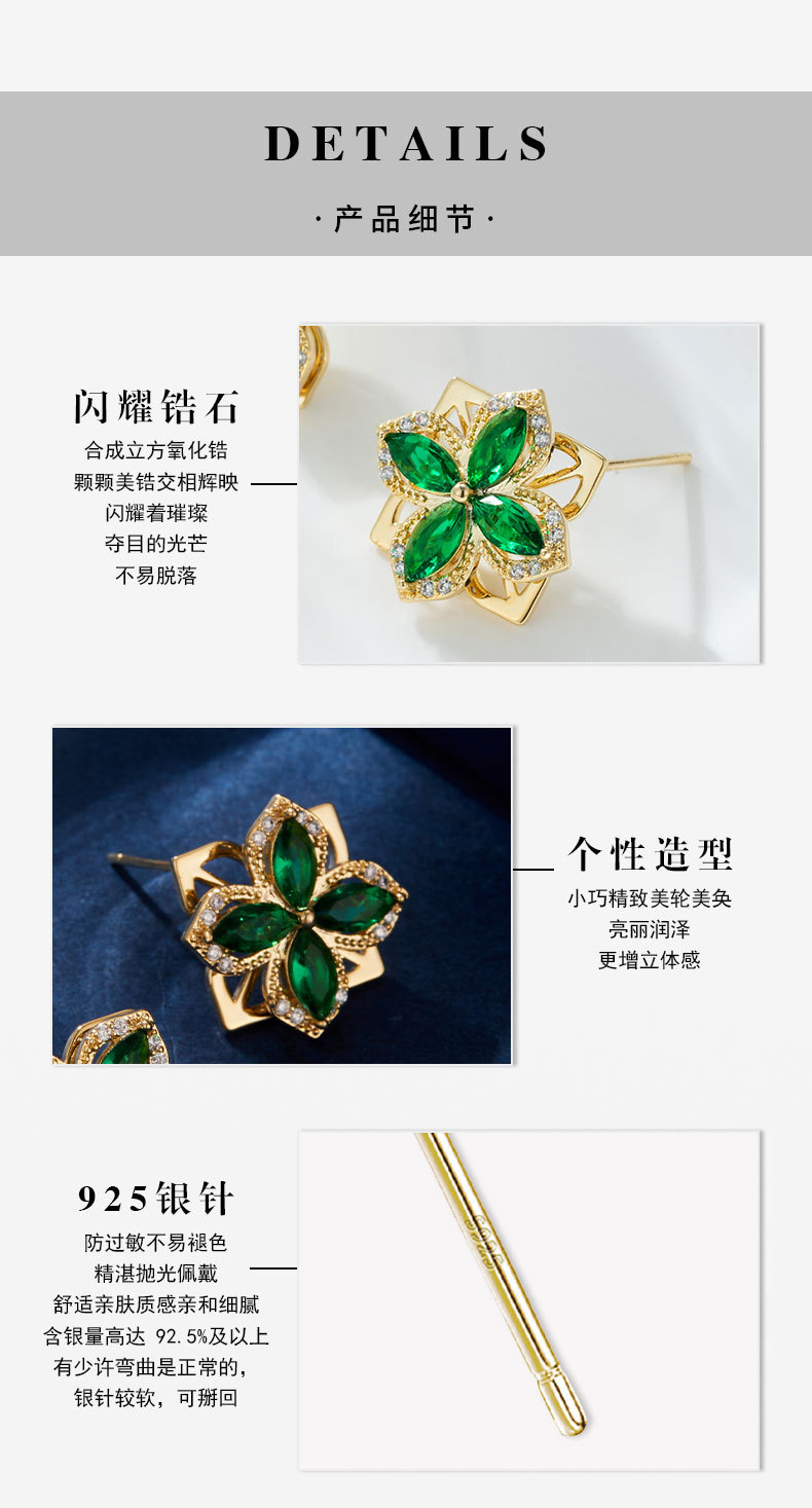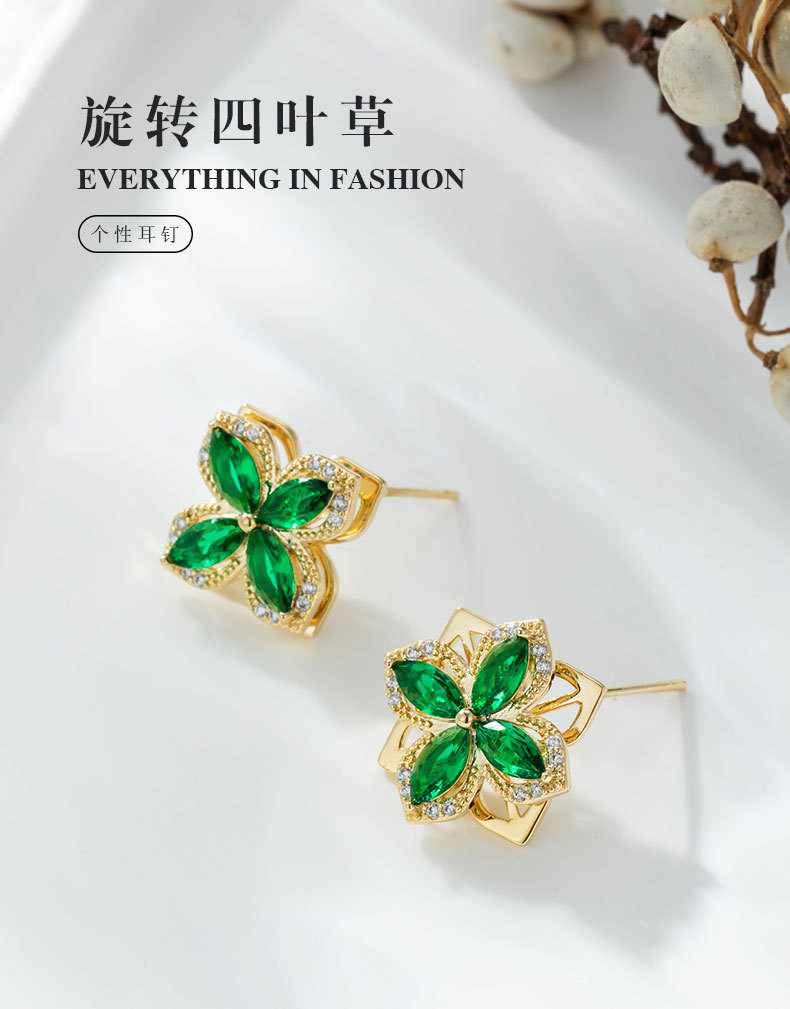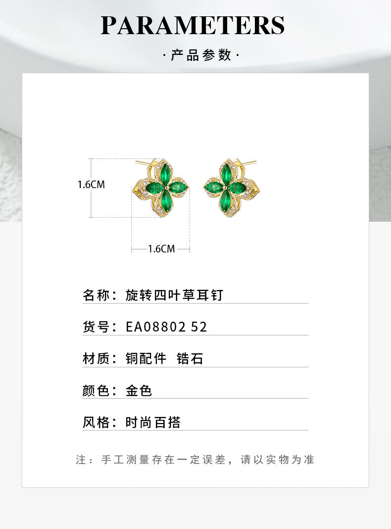 旋转四叶草精致耳钉925银针,新网红爆款耳环耳饰EA08802