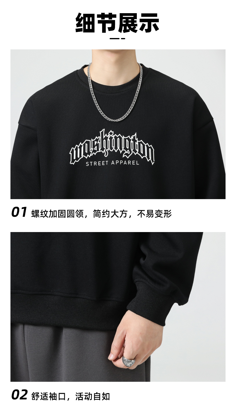 【Q】【新款DQ】大依优型大码圆领卫衣男宽松休闲上衣胖子加肥加大男士潮流