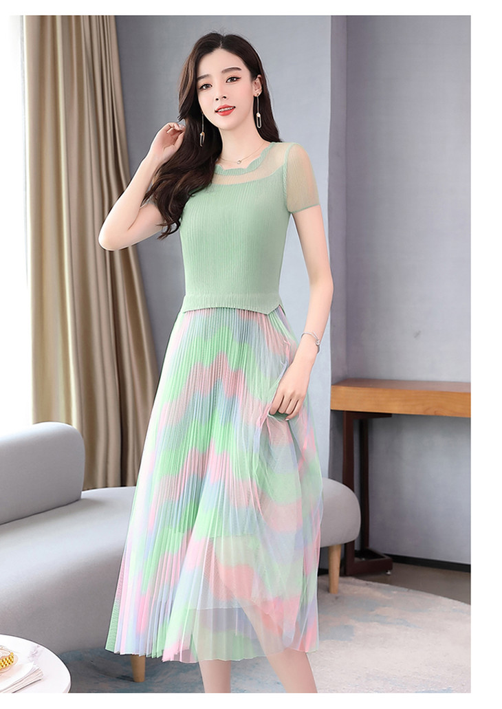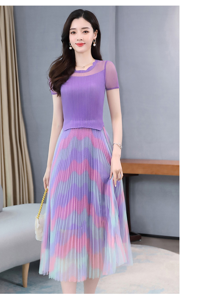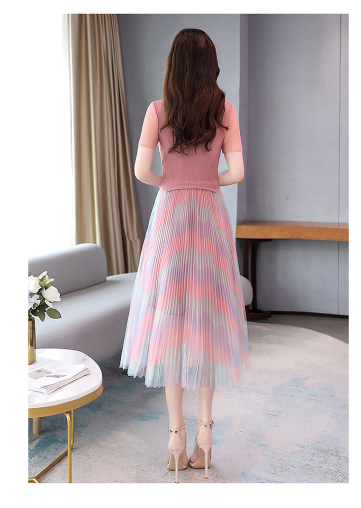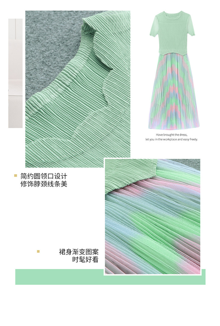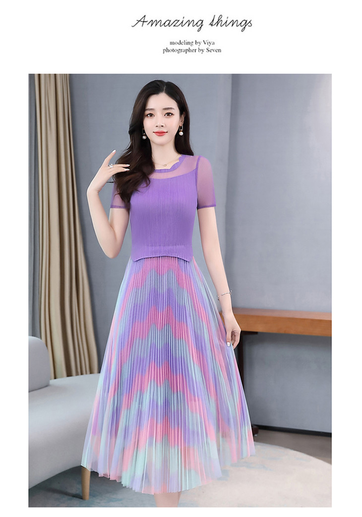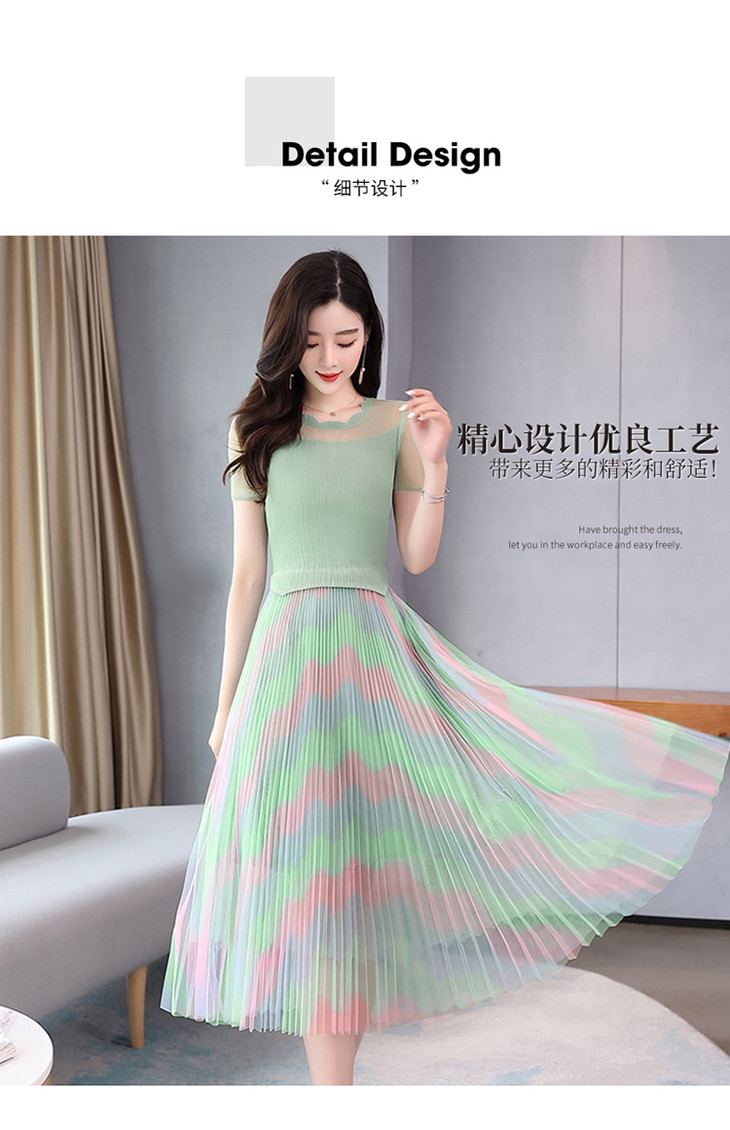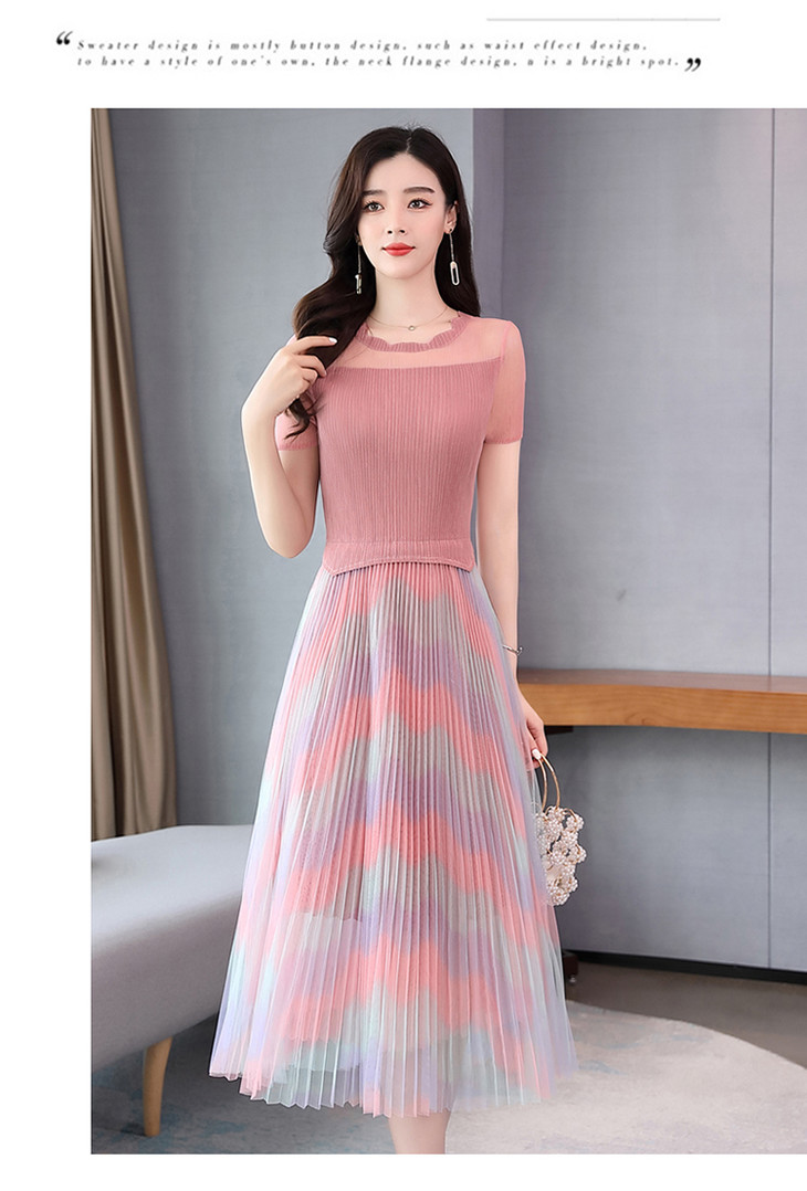 KY-XXM818-2新款收腰显瘦气质渐变色条纹百褶连衣裙