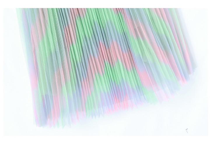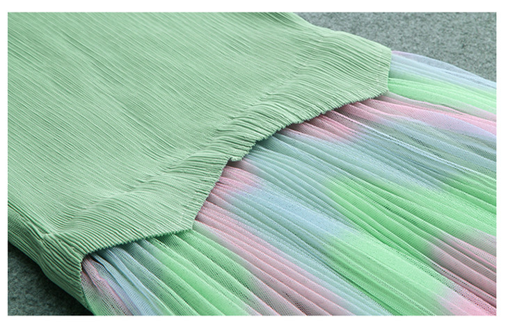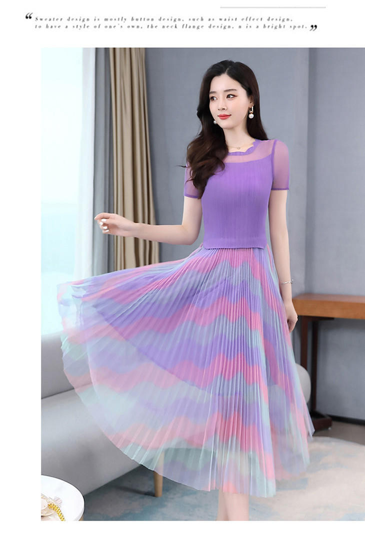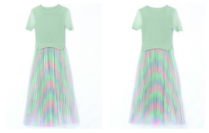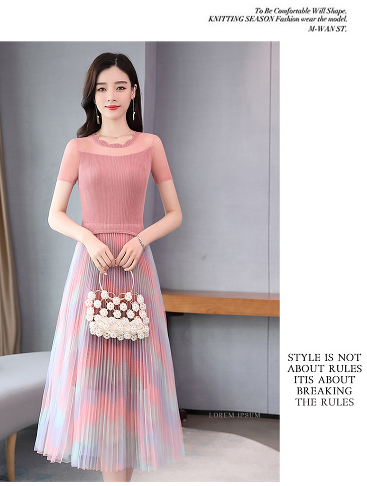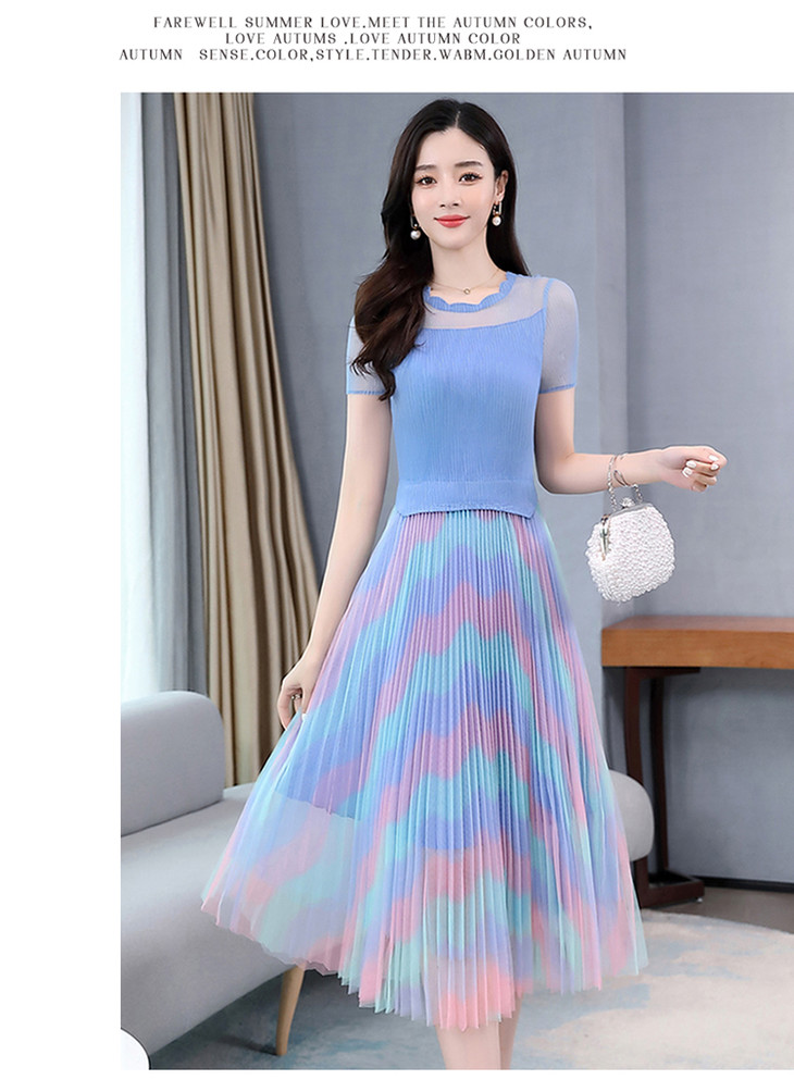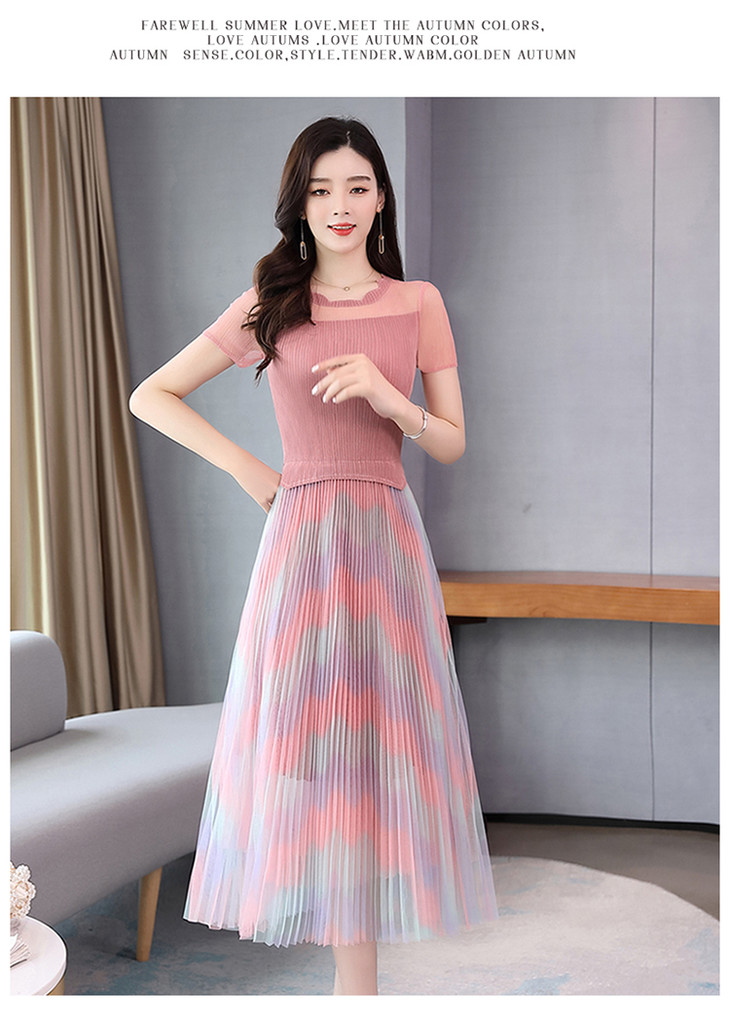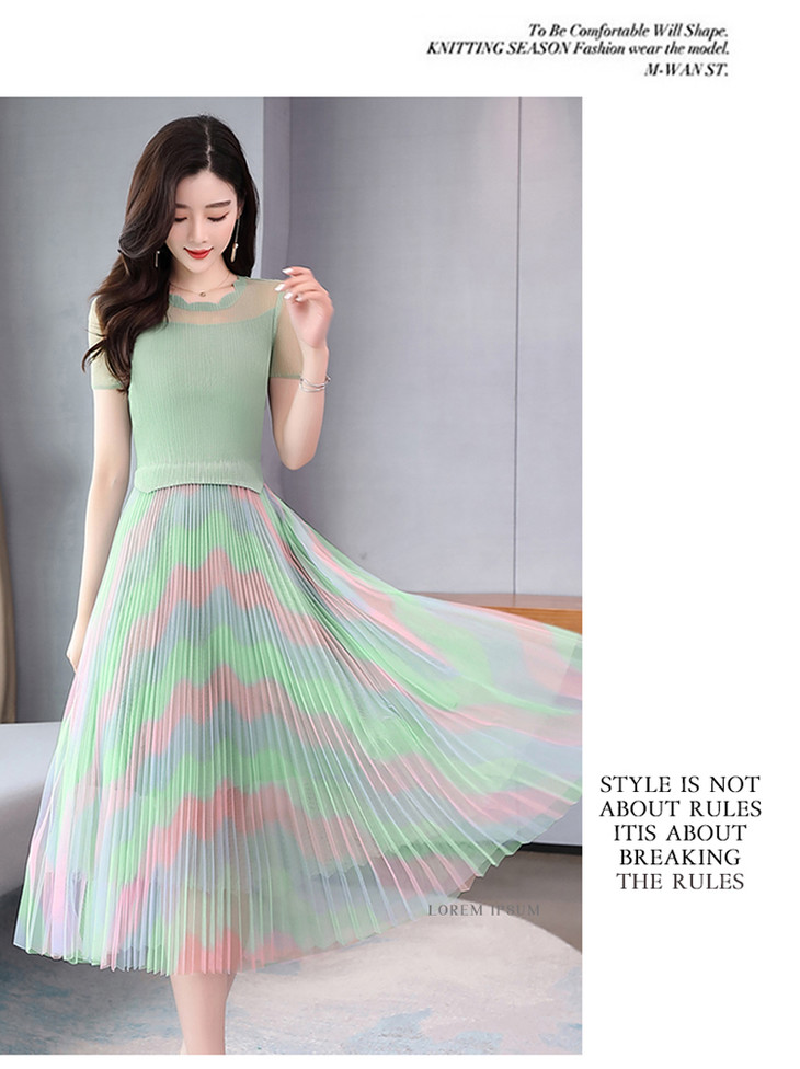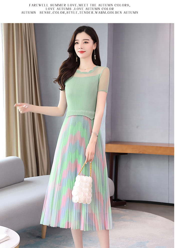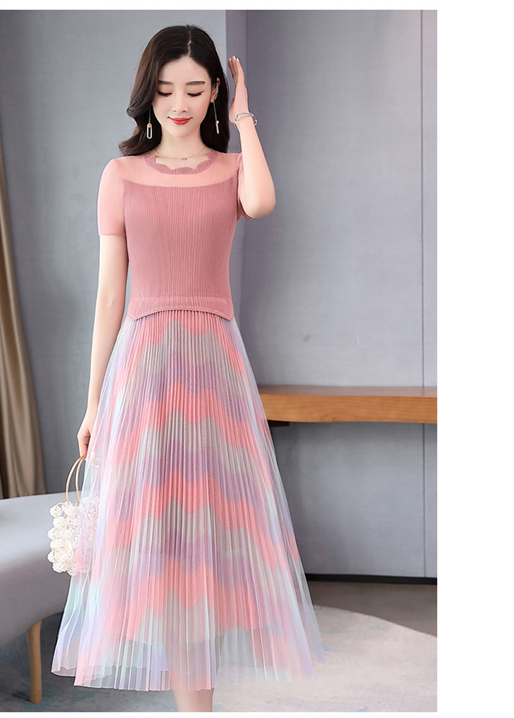 KY-XXM818-2新款收腰显瘦气质渐变色条纹百褶连衣裙