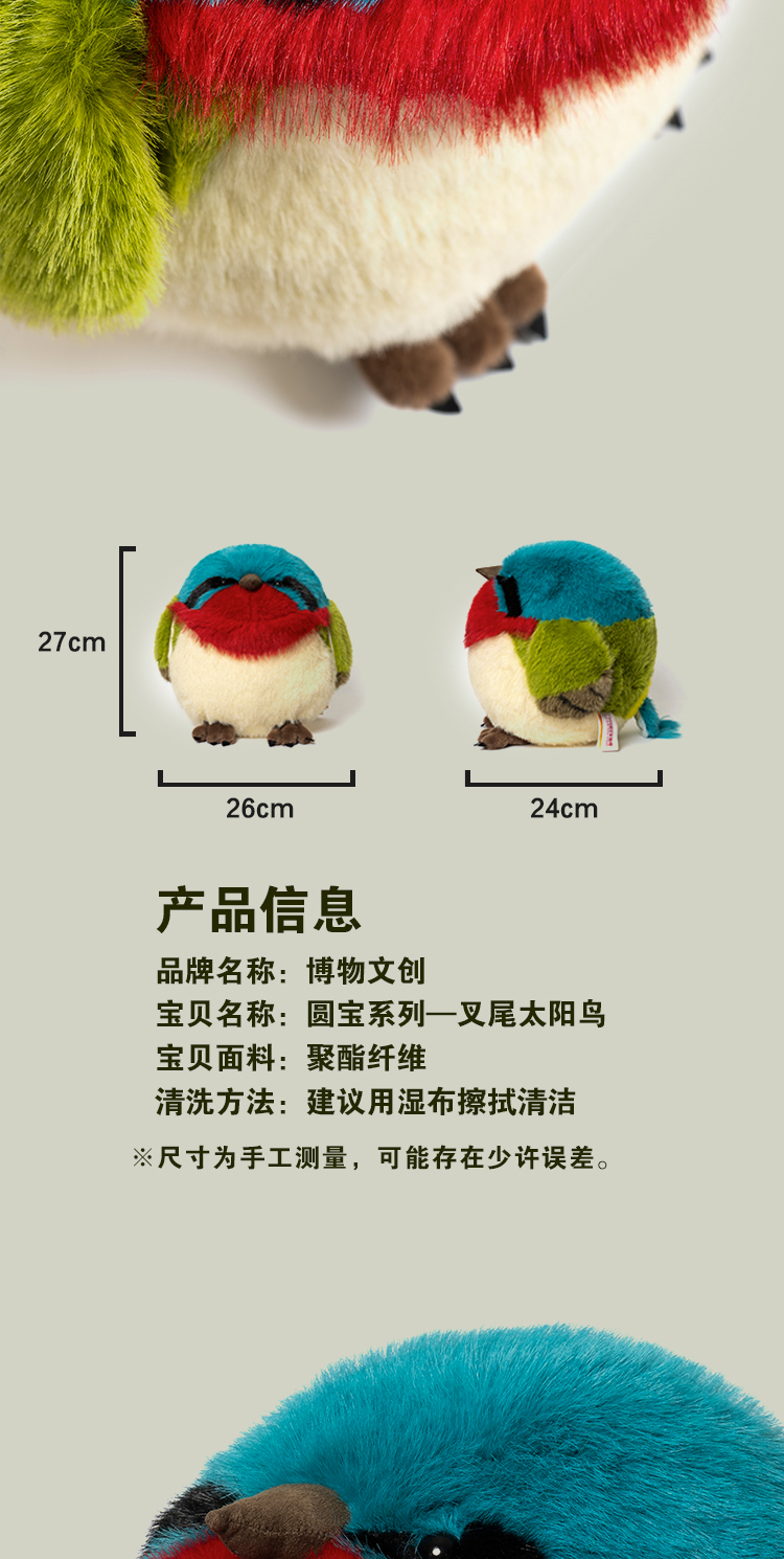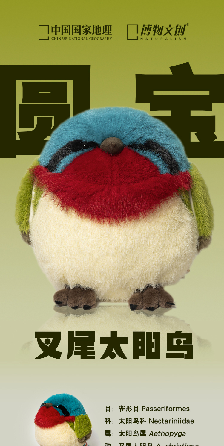 博物文创 圆宝系列海南叉尾太阳鸟毛绒玩偶节日礼物
