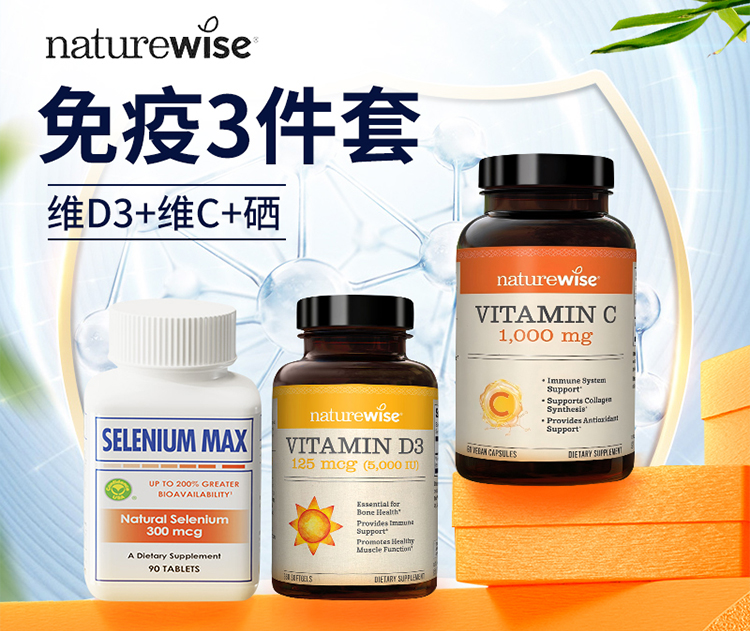 【naturewise】+【信心药业】全面免疫三件套(VC+硒片+维生素D3) WH