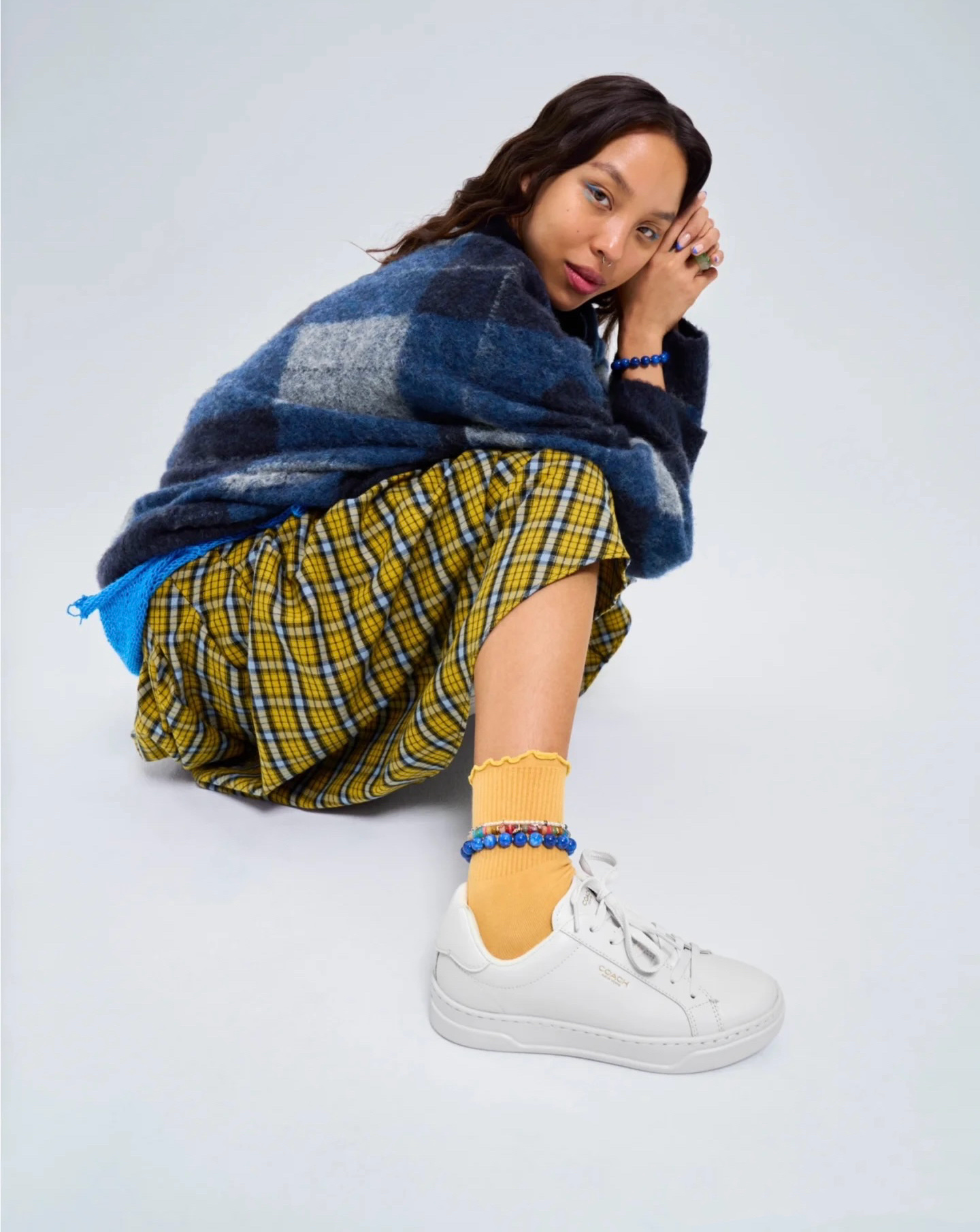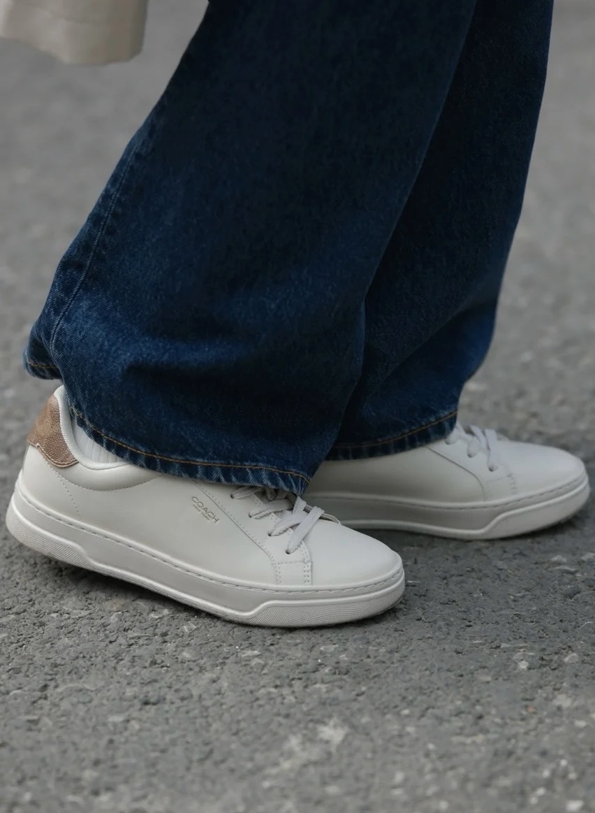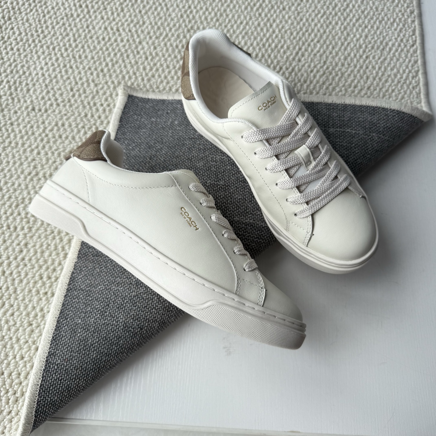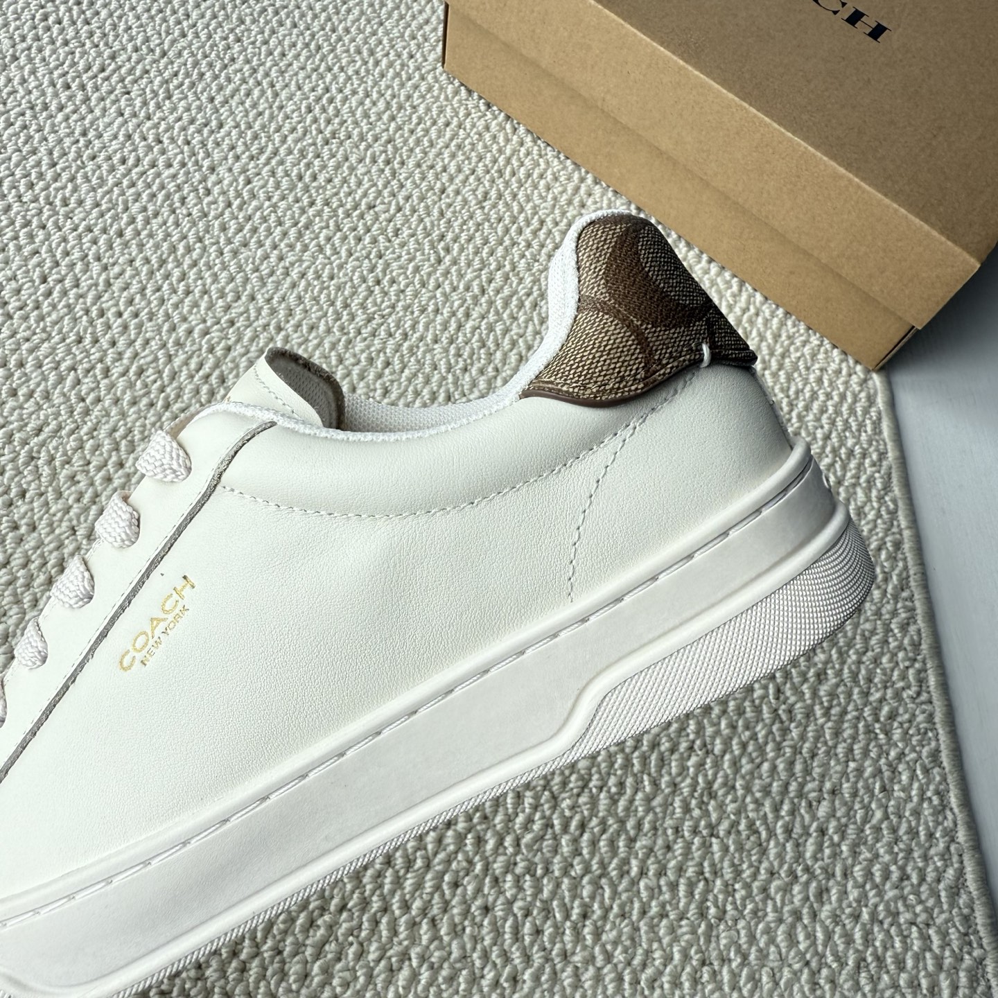 350 货号310722350 dx 👍蔻驰COACH女款经典老花舒适运动休闲鞋,轻潮登场,精选牛剖层革与标志性老花帆布拼接,细腻皮革自带温润质感,老花元素复刻品牌经典,鞋身侧面的低调金属Logo点缀,让精致感藏在细节里。