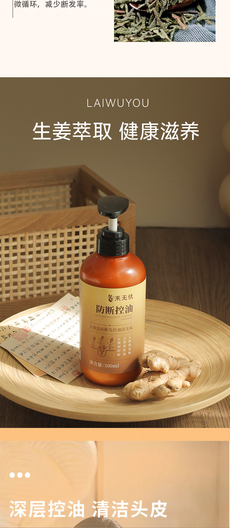 【万亩姜田浓缩一瓶 控油率>78%】云南小黄姜洗发水500ml/瓶