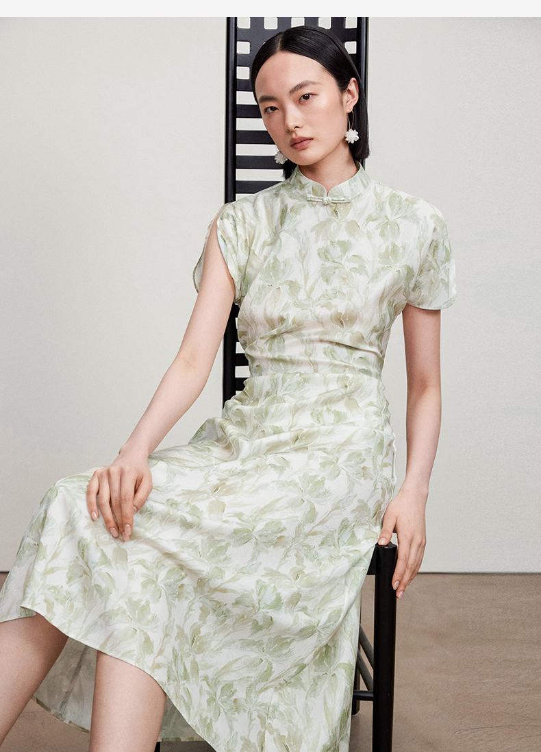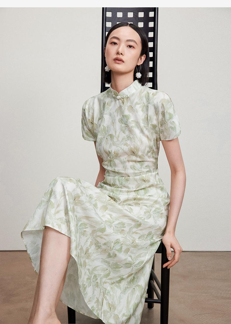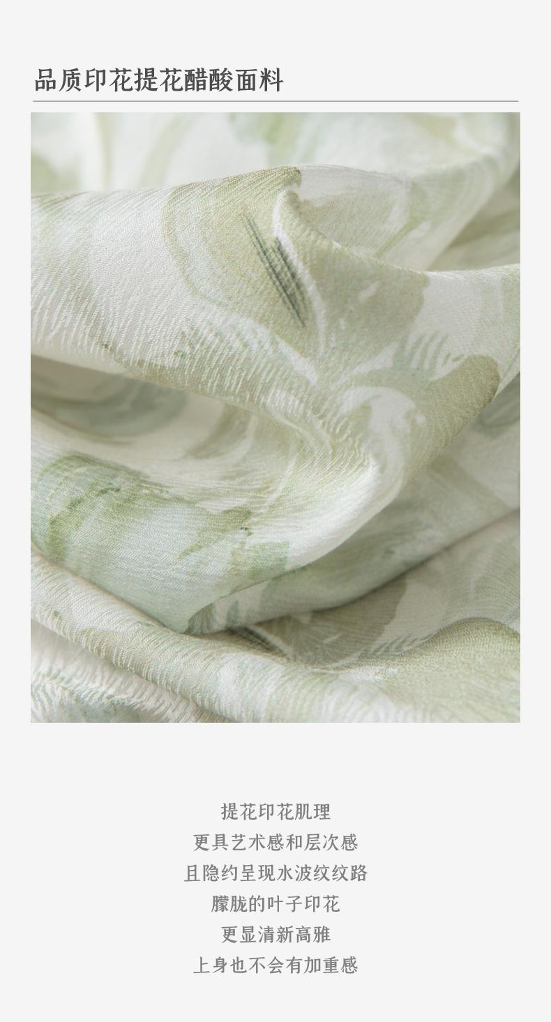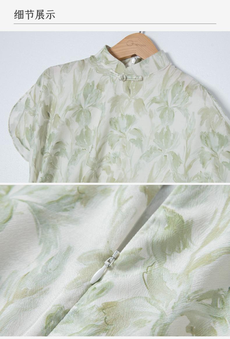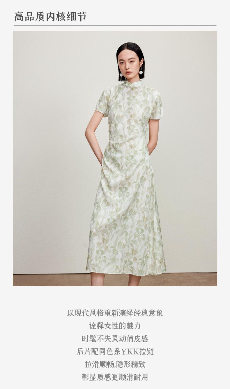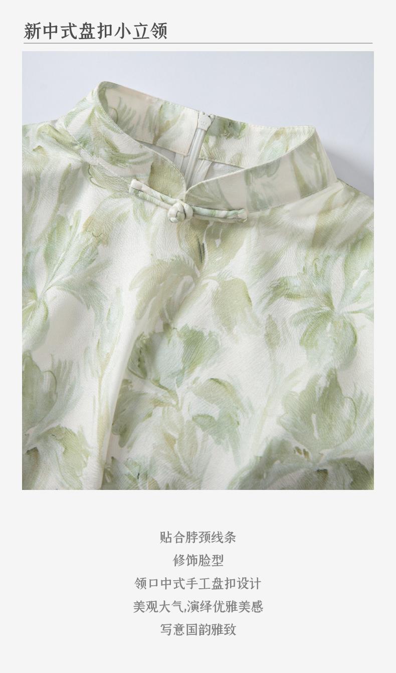 YQ2402012西嘉薄荷曼波提花新中式连衣裙女夏立领醋酸花瓣袖长裙L