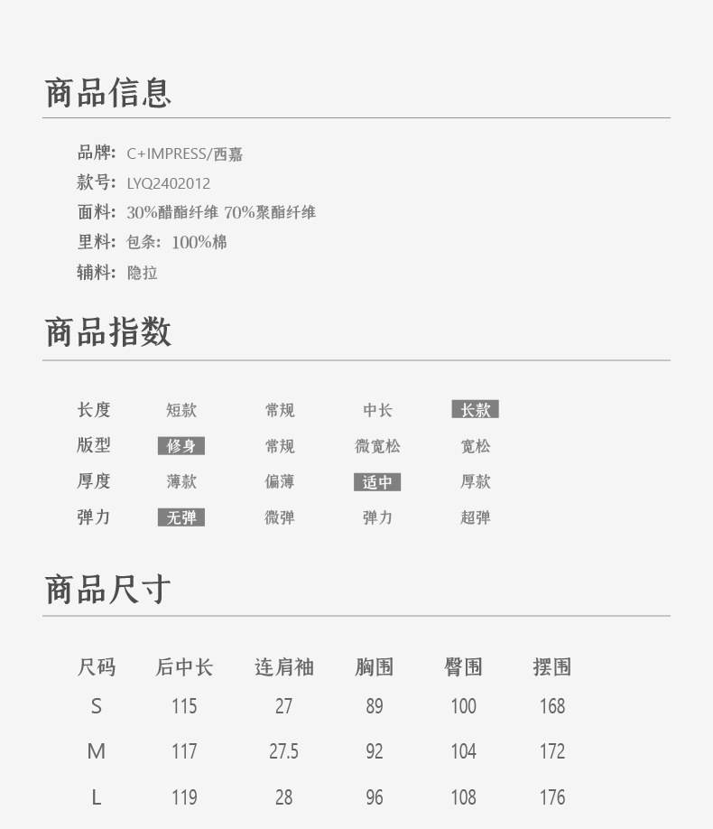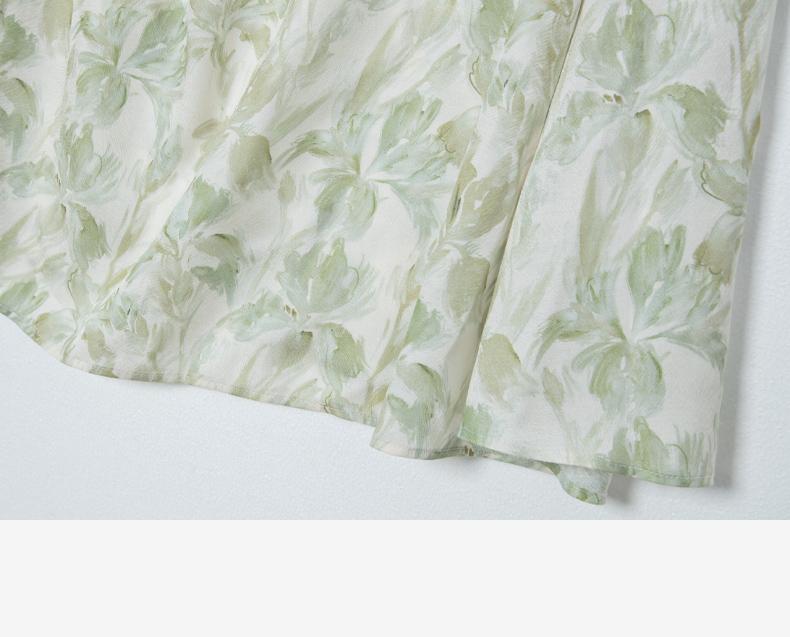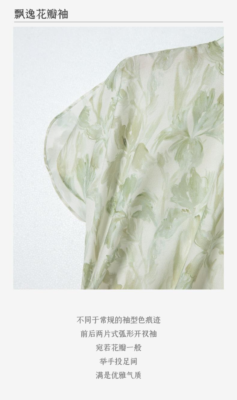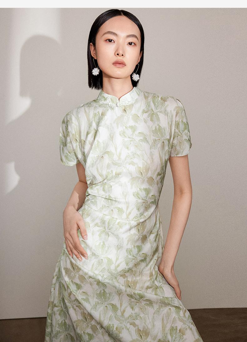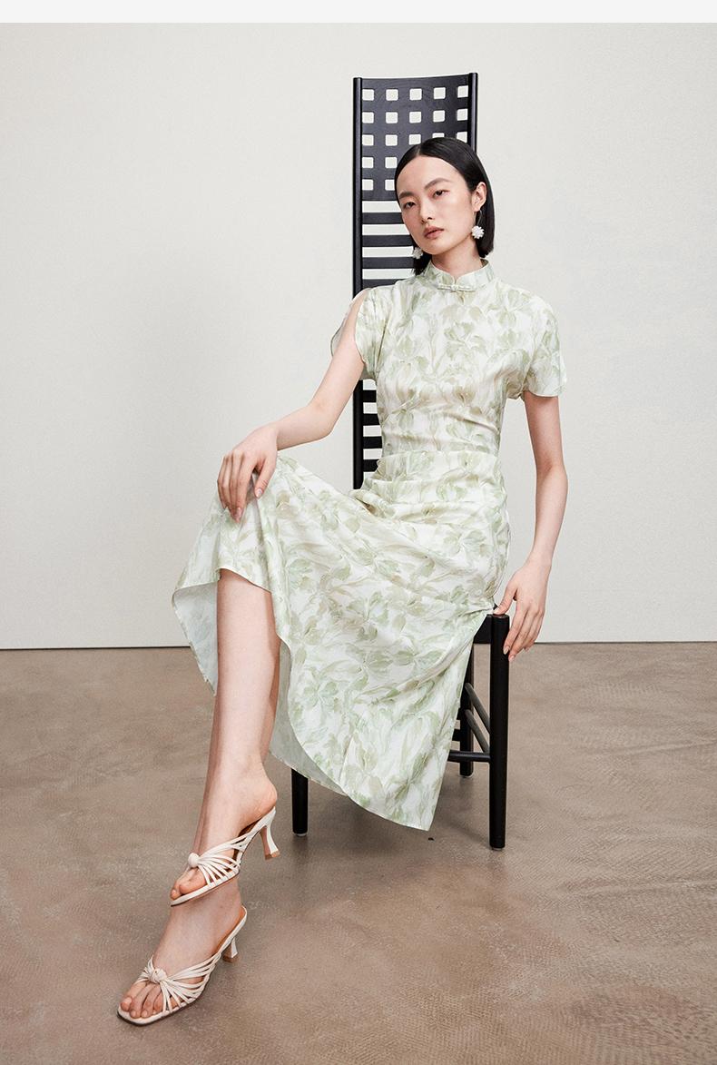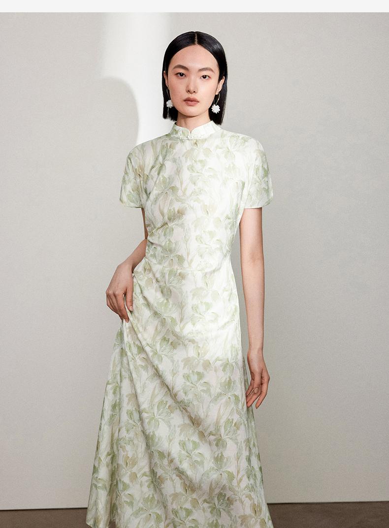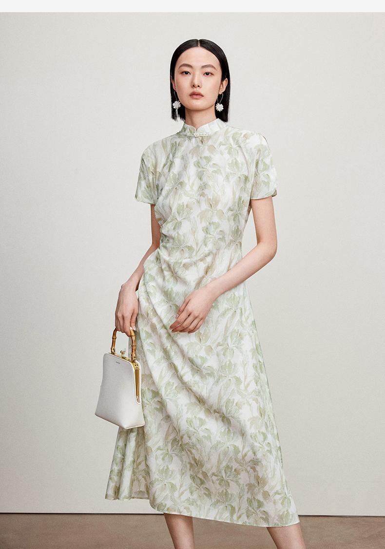 YQ2402012西嘉薄荷曼波提花新中式连衣裙女夏立领醋酸花瓣袖长裙L