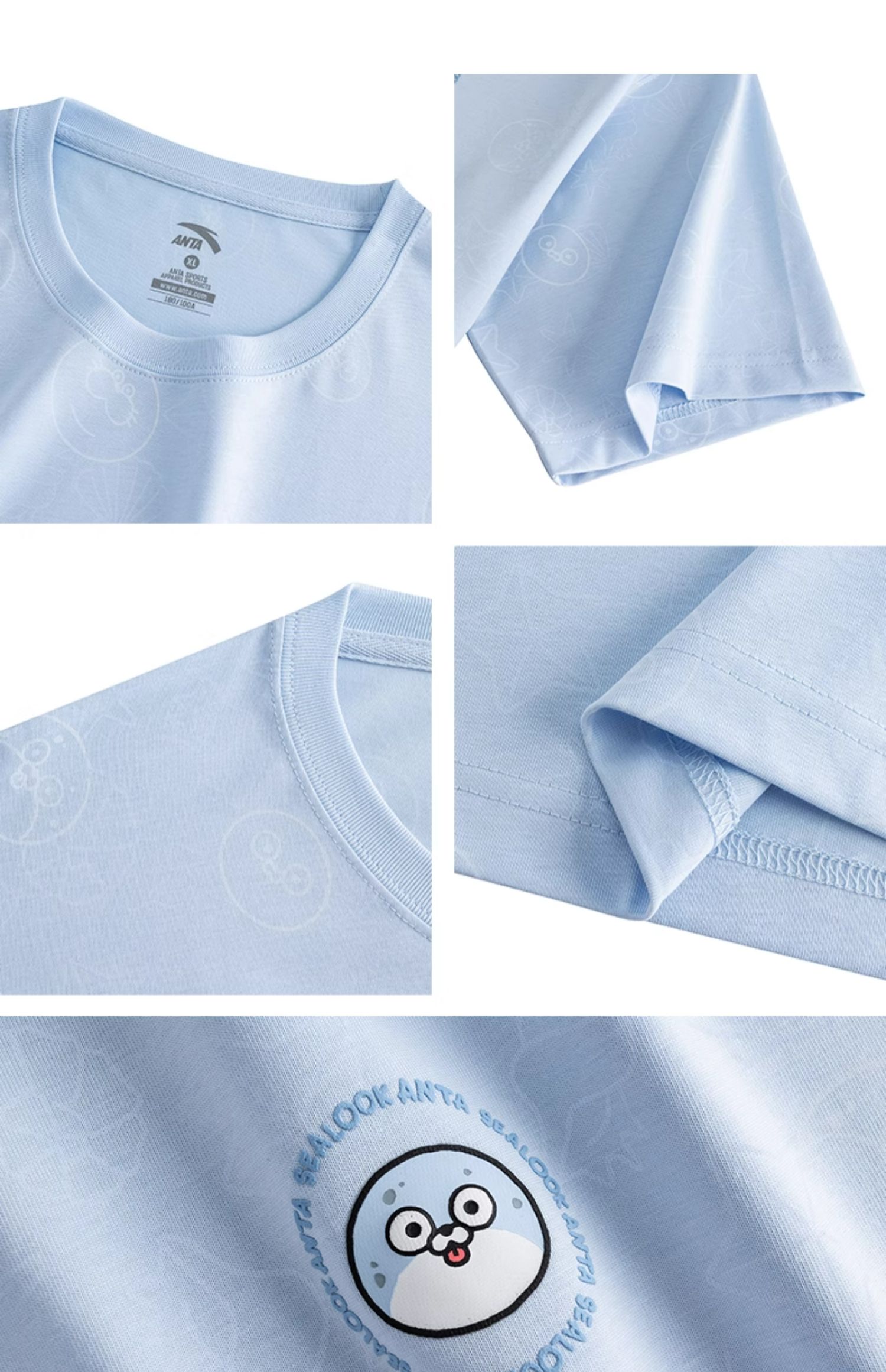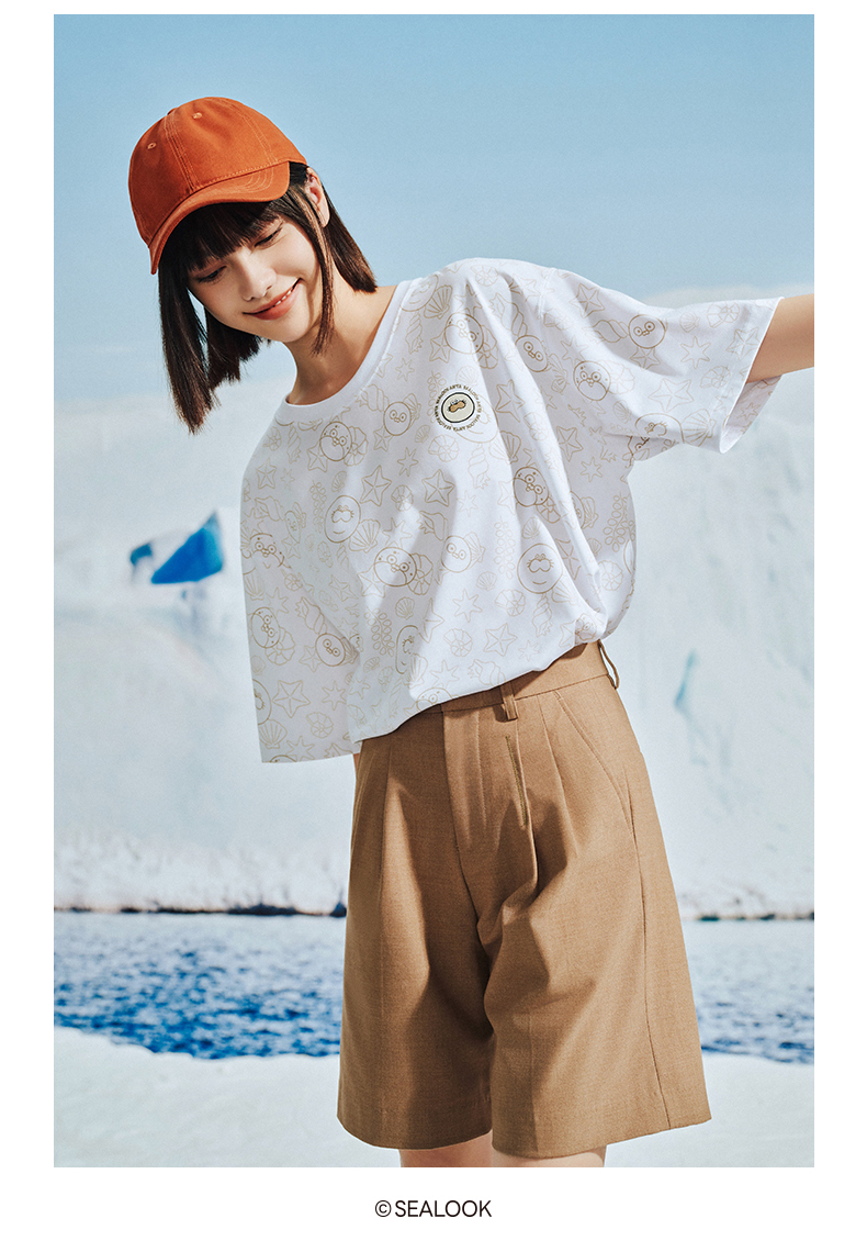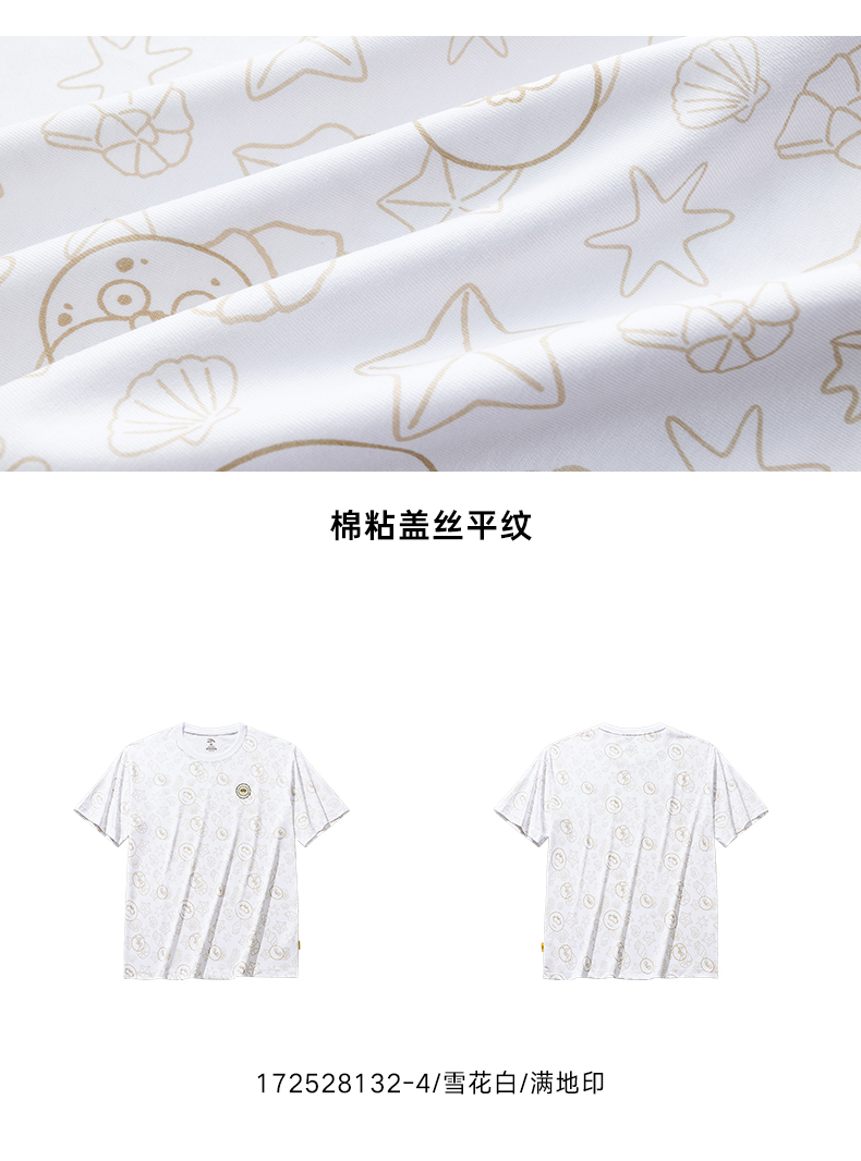 安踏海豹看看联名丨情侣短袖男夏季新款满印休闲t恤女172528132