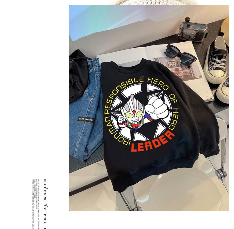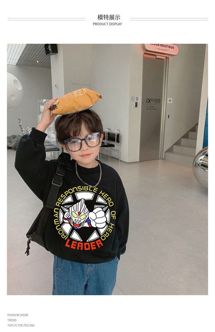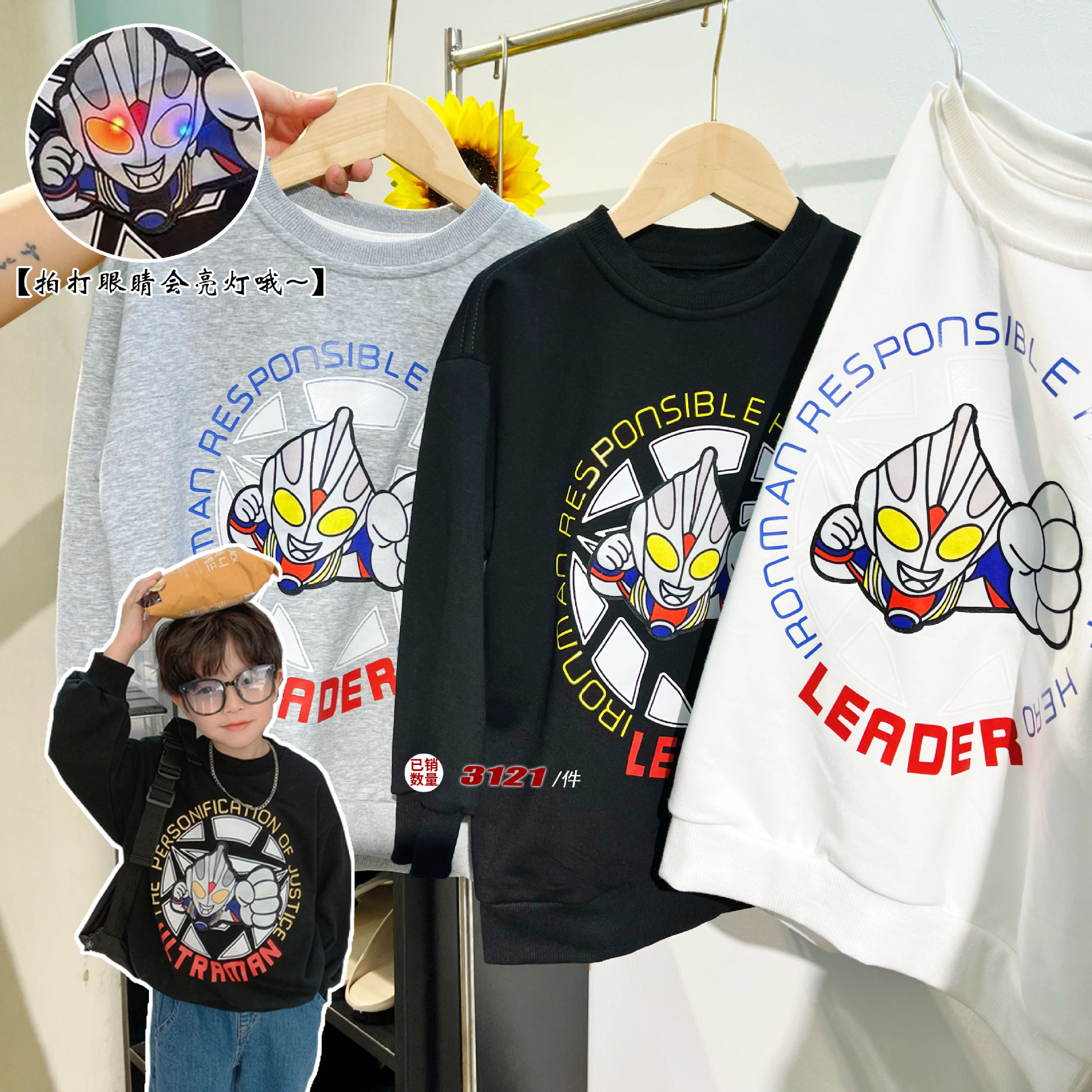 【轻拍会亮灯的卫衣~】秋冬季男童发光卫衣儿童长袖卡通印花趣味童装潮,针织小毛圈面料柔软舒适,罗纹高弹且不易变形。lish