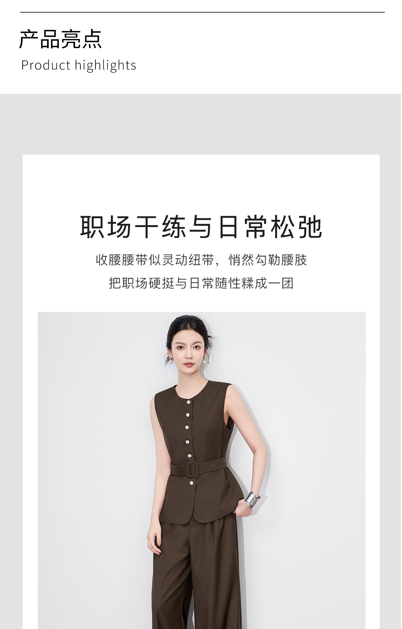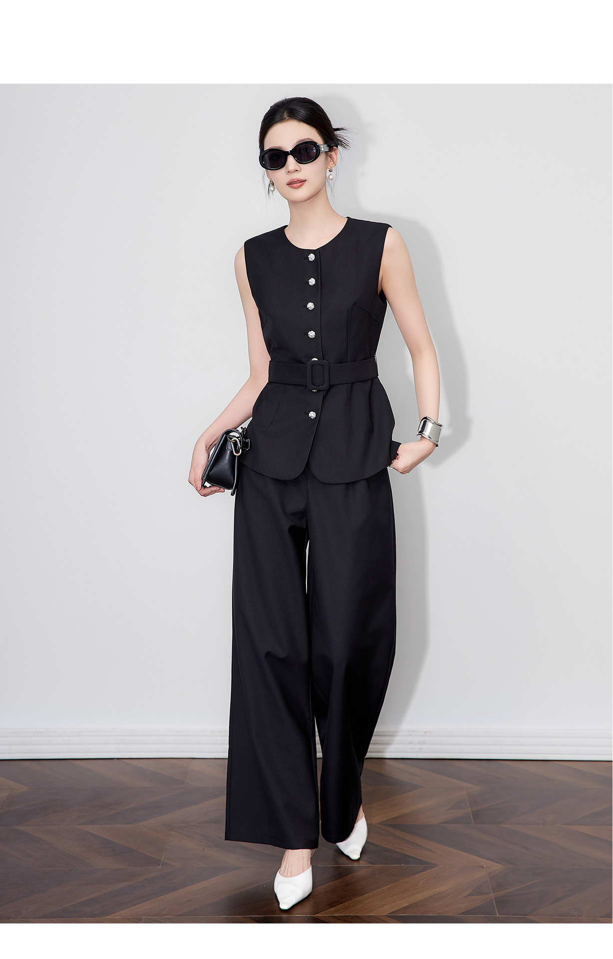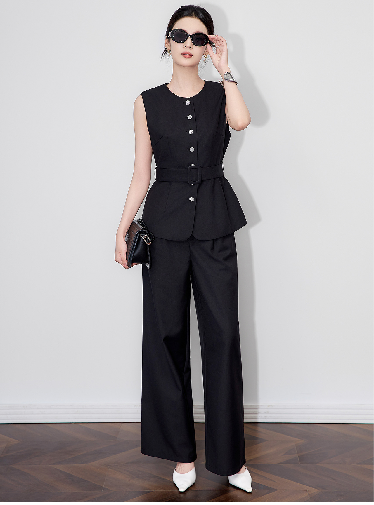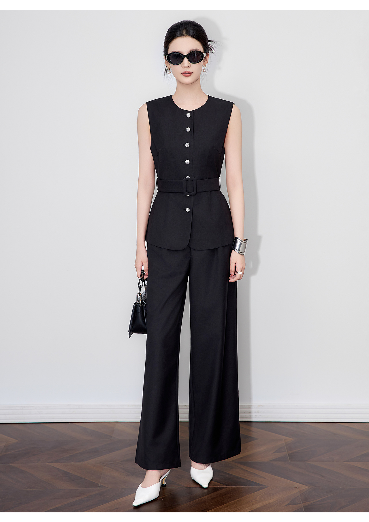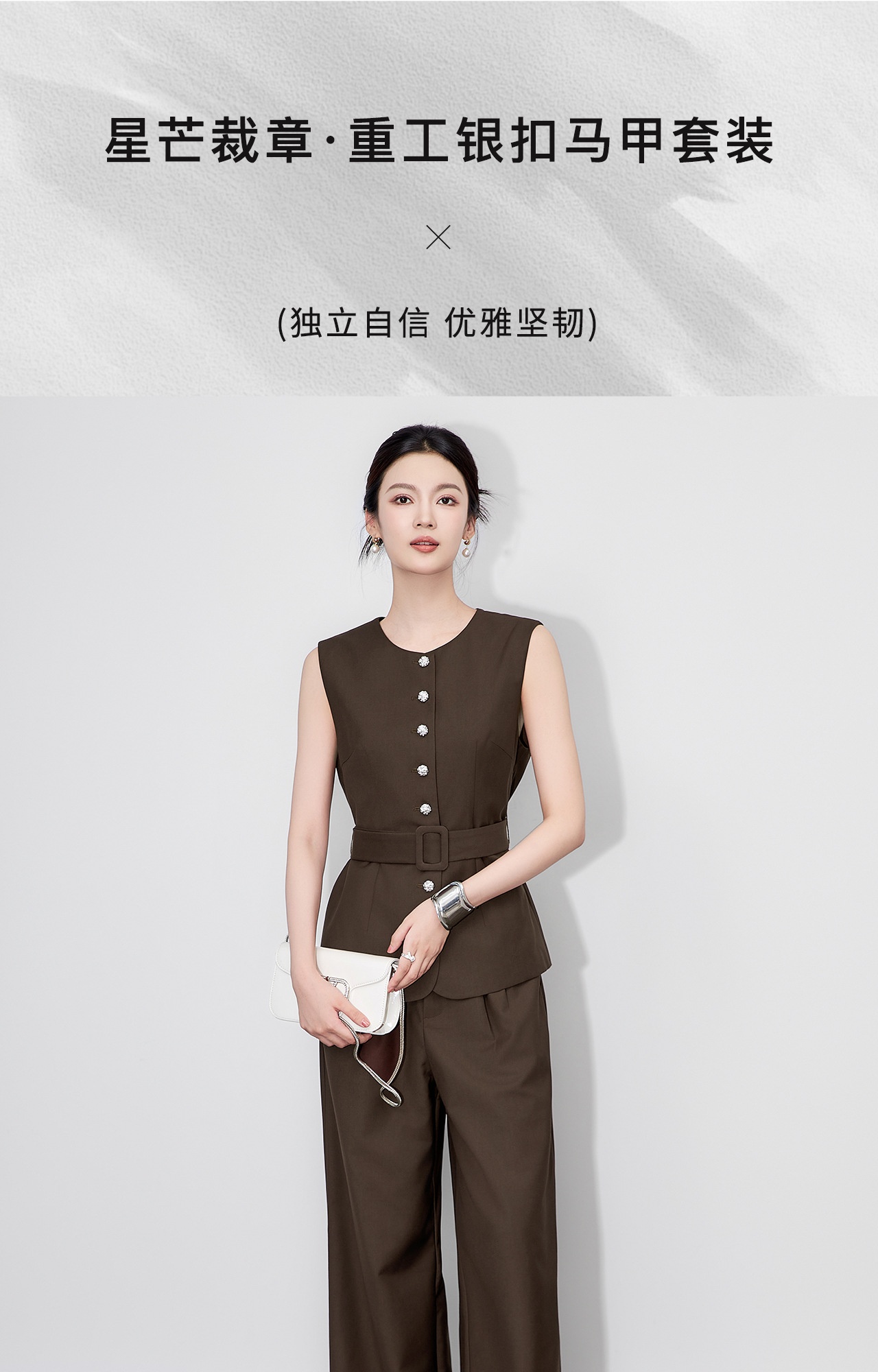 「高货wl」全新升级【铂金会员413/天猫559/差价146】(99249)洛诗琳秋季气质老钱风银扣马甲优雅通勤直筒阔腿裤两件套